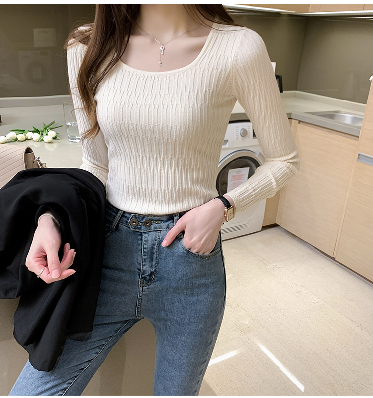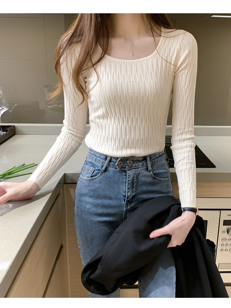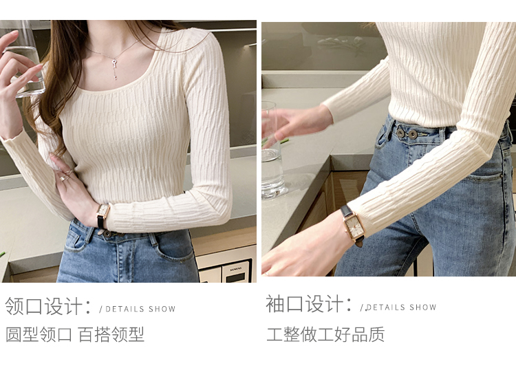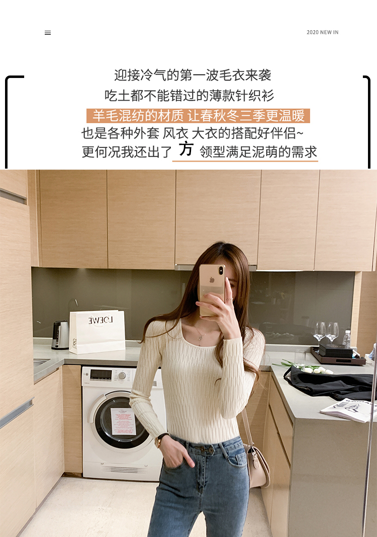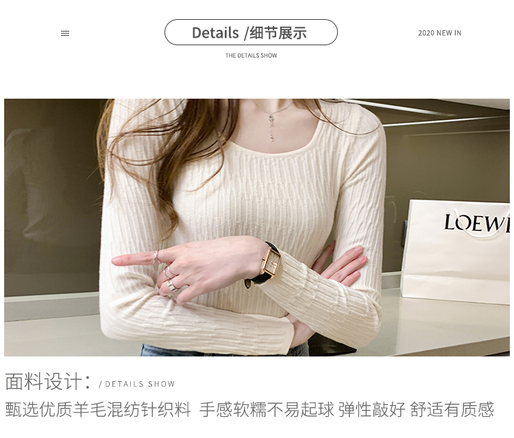 低領打底衫女秋冬修身洋氣長袖t恤搭配西裝風衣的內搭小香風上衣