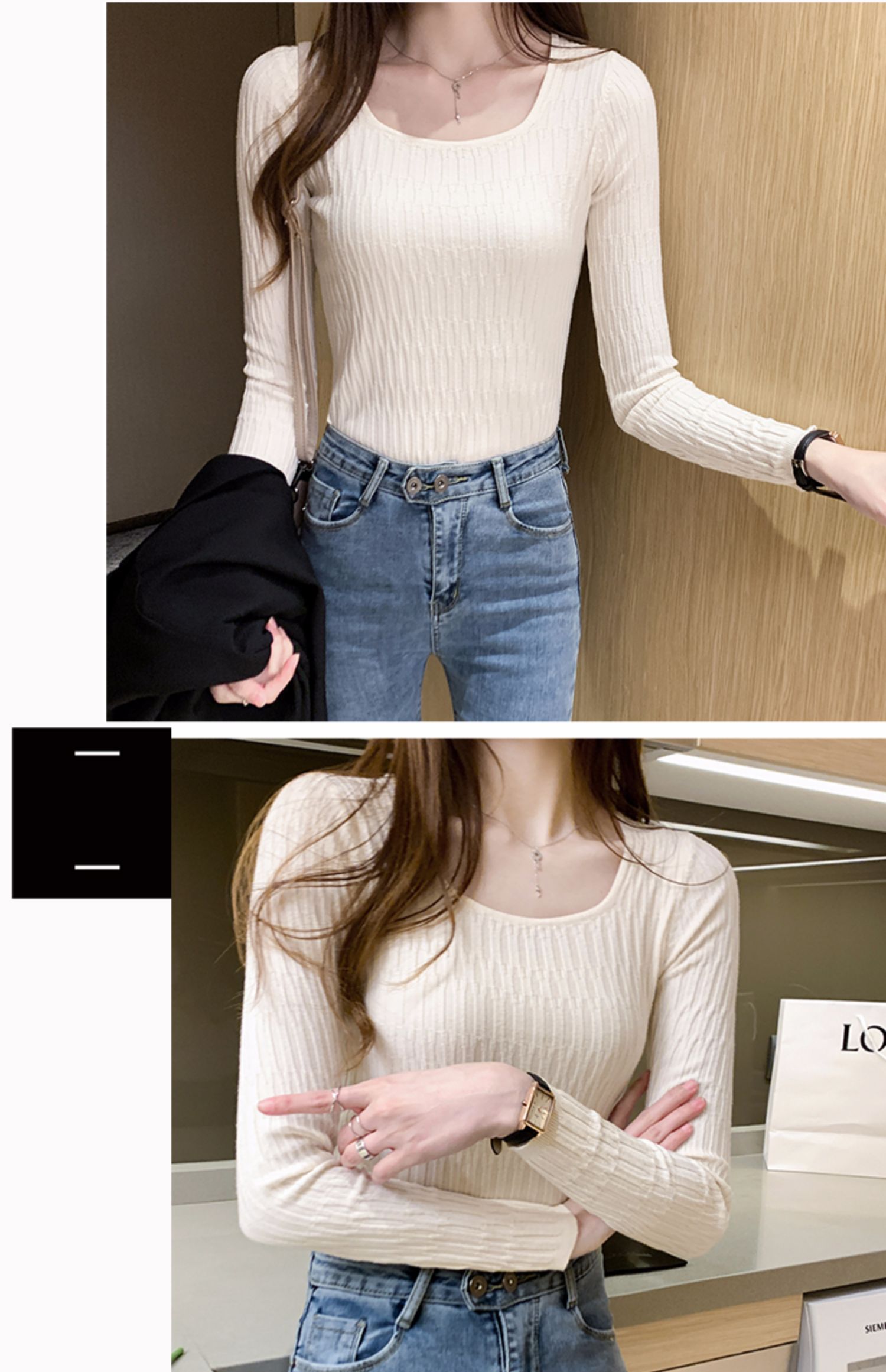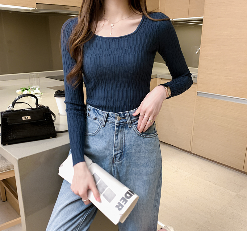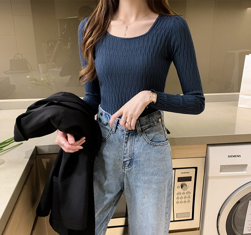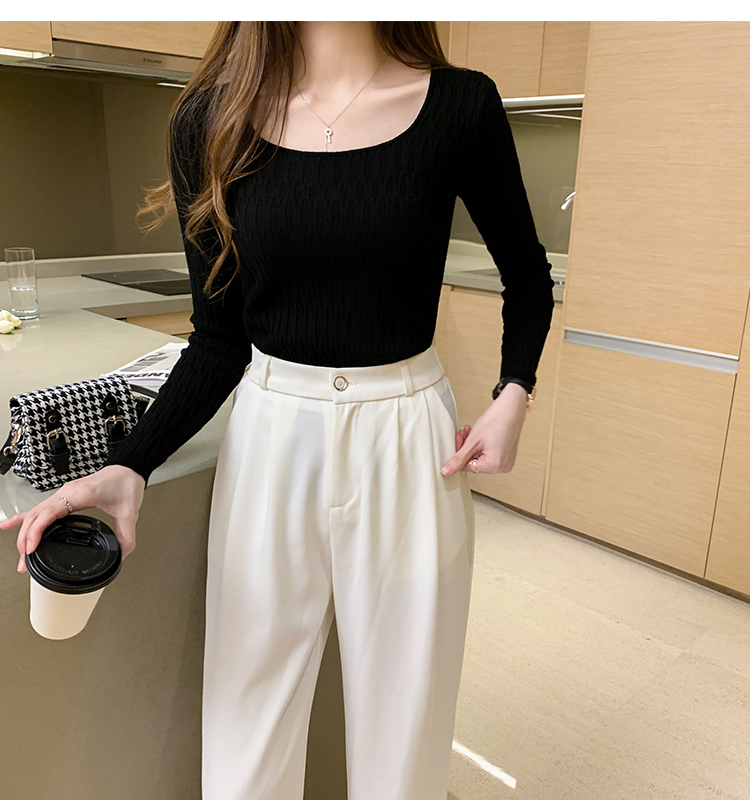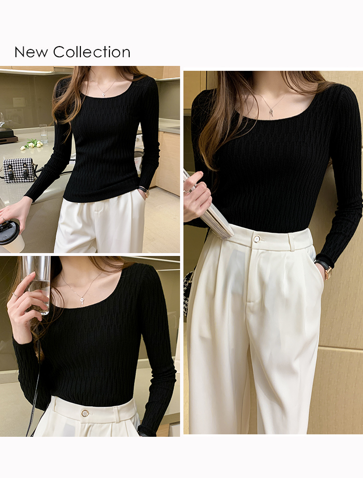 低領打底衫女秋冬修身洋氣長袖t恤搭配西裝風衣的內搭小香風上衣