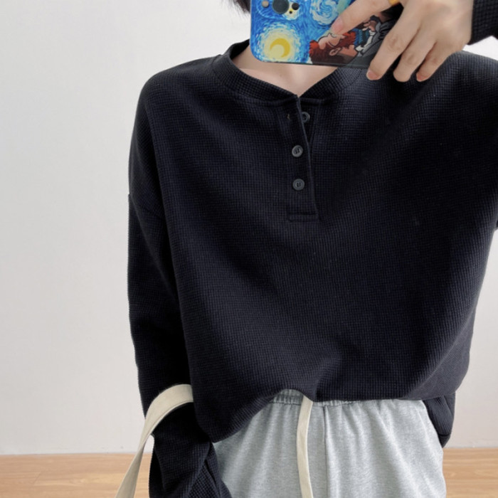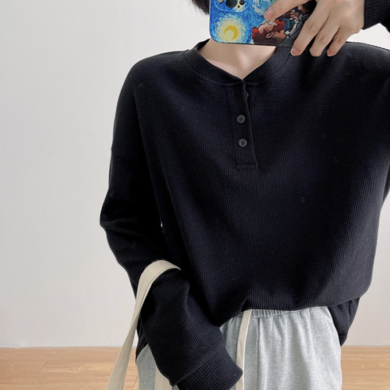 華夫格長袖T恤女春秋季薄款閨蜜裝潮ins寬松韓系學生內搭打底上衣
