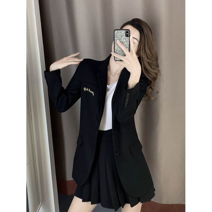 英倫學院風jk西裝外套女秋冬2024新款小個子黑色高級感炸街小西服