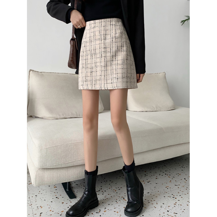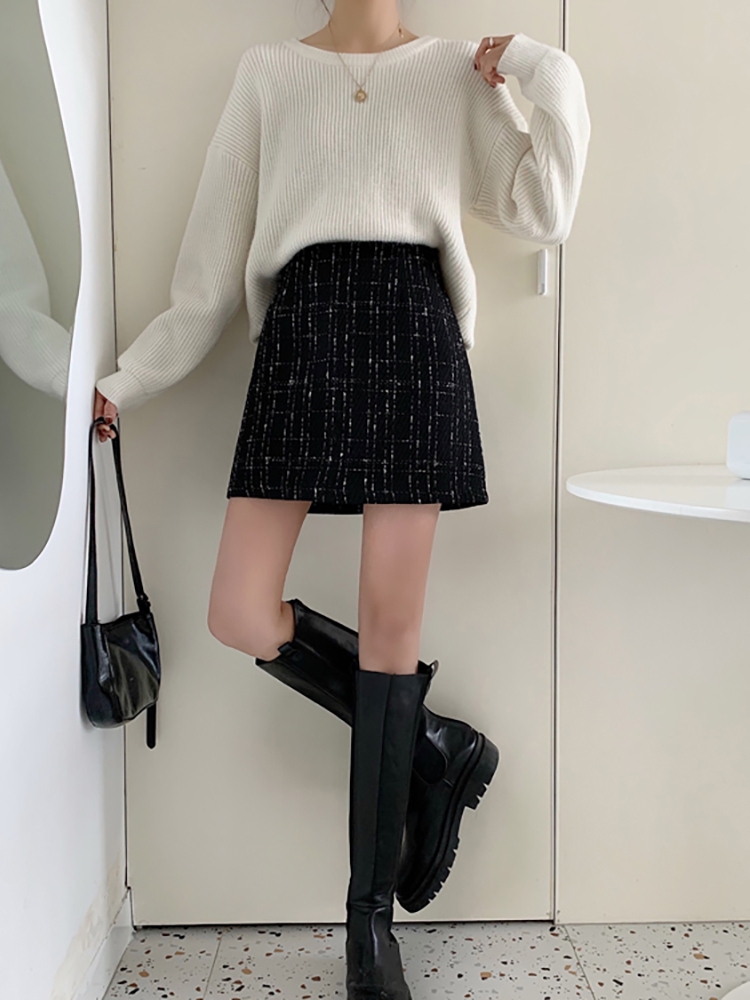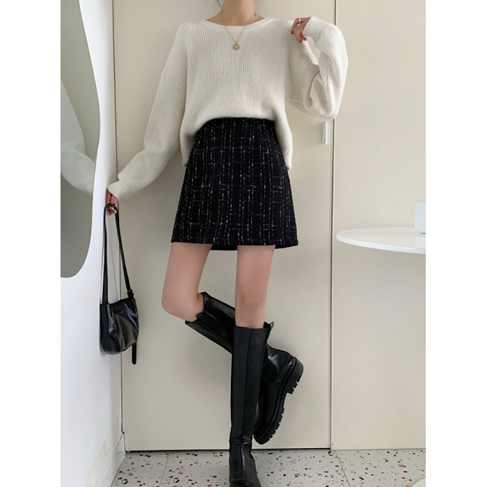 小香風毛呢半身裙秋冬2025新款大碼胖mm顯瘦高腰包臀a字短裙ins潮