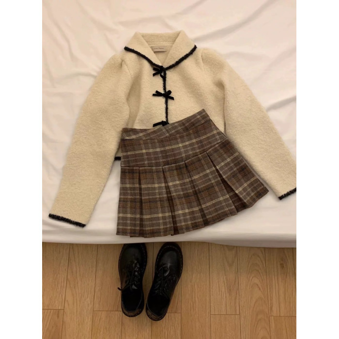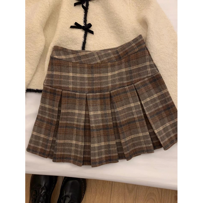 毛呢短裙百褶格子半身裙女秋冬2025新款大碼胖mm防走光內襯打底裙