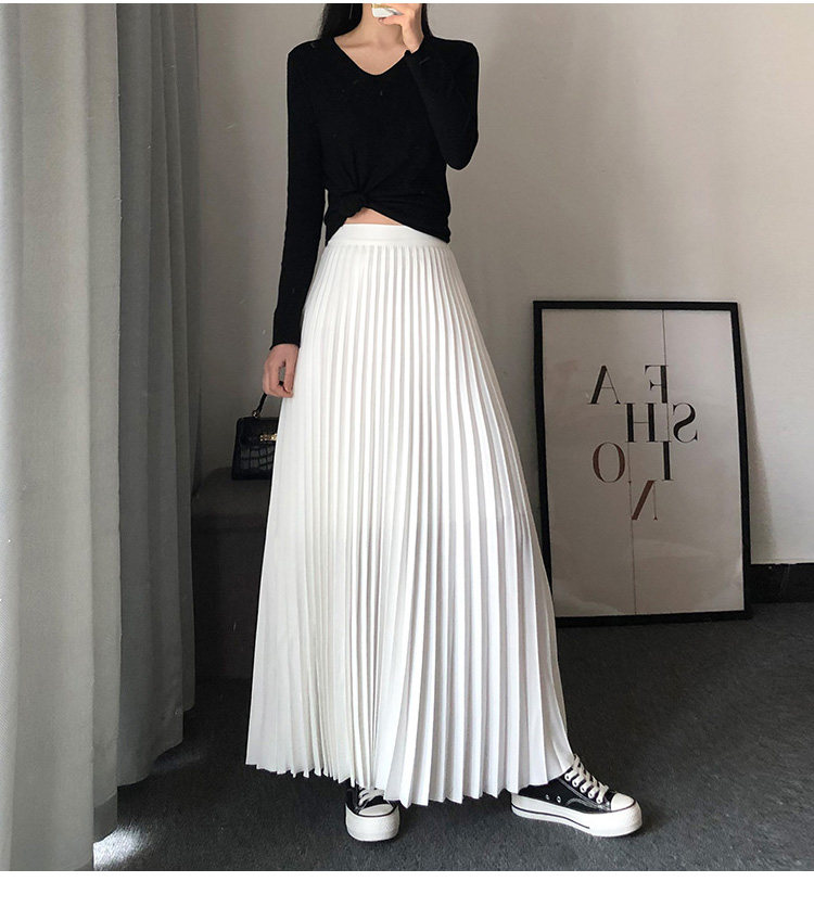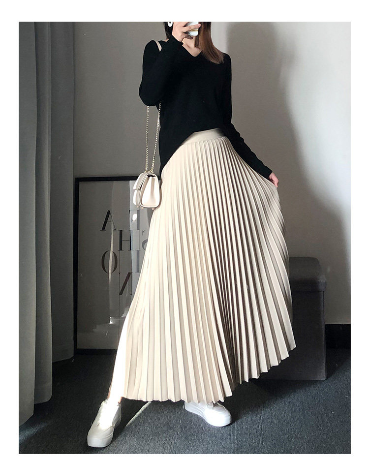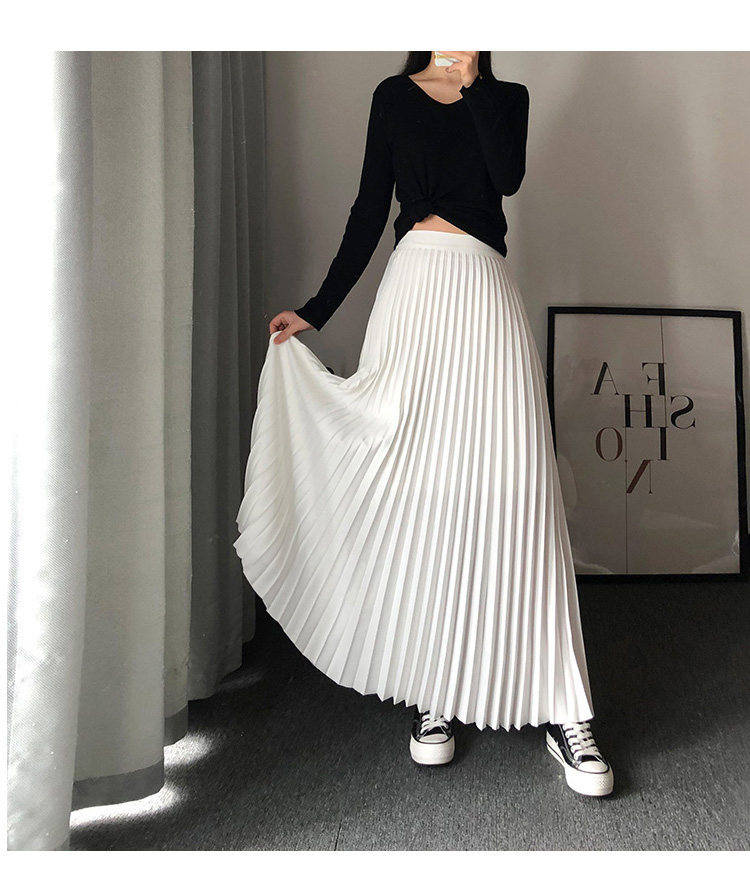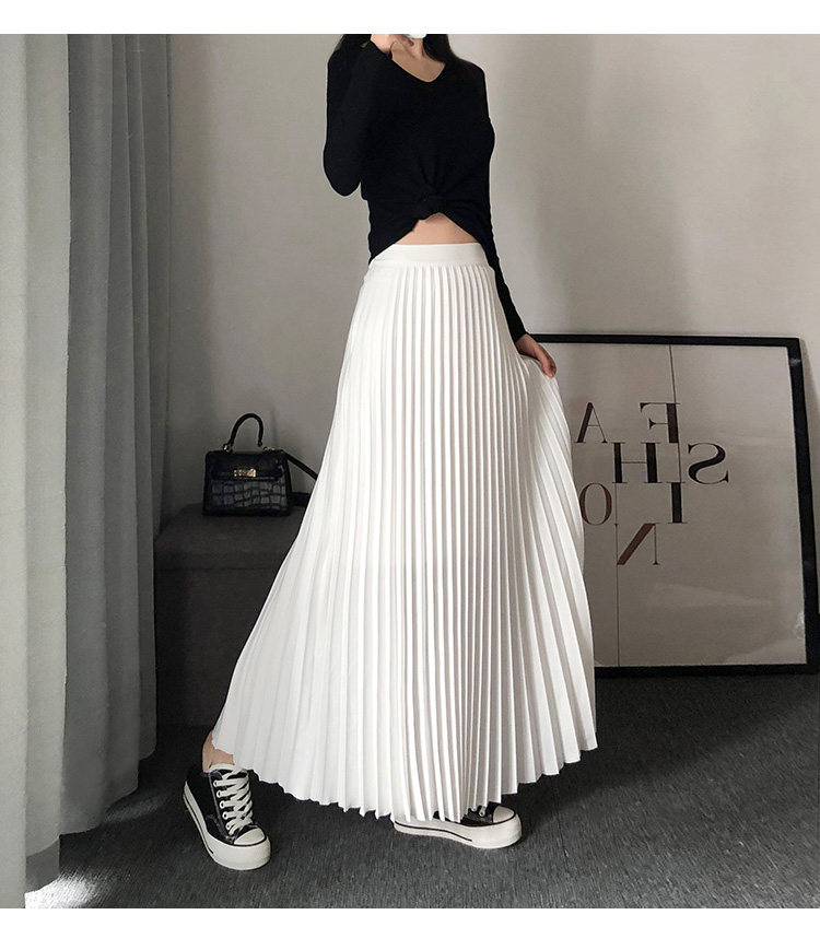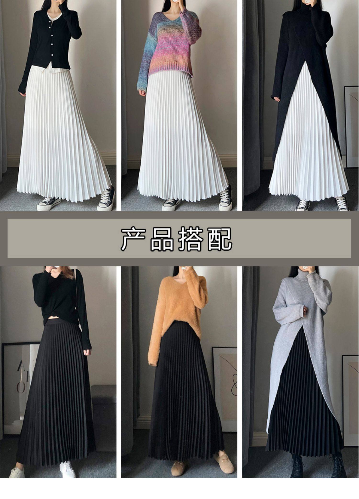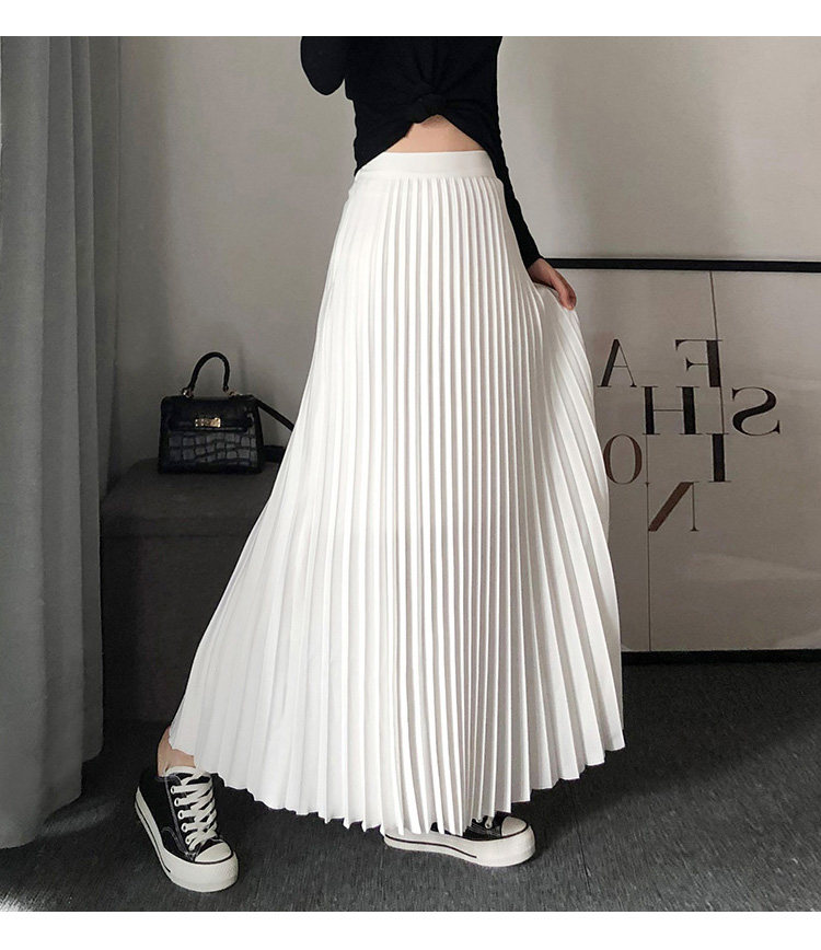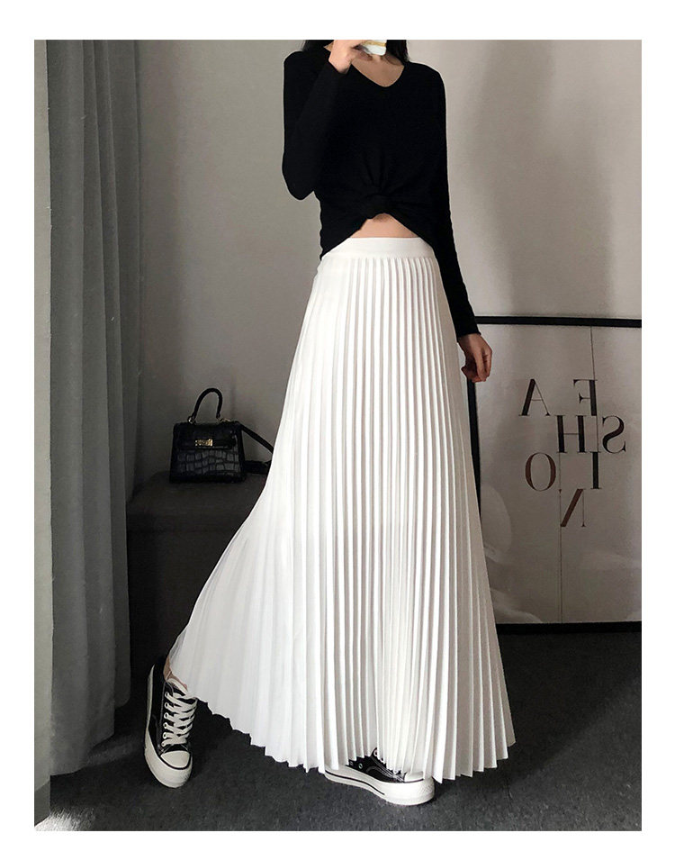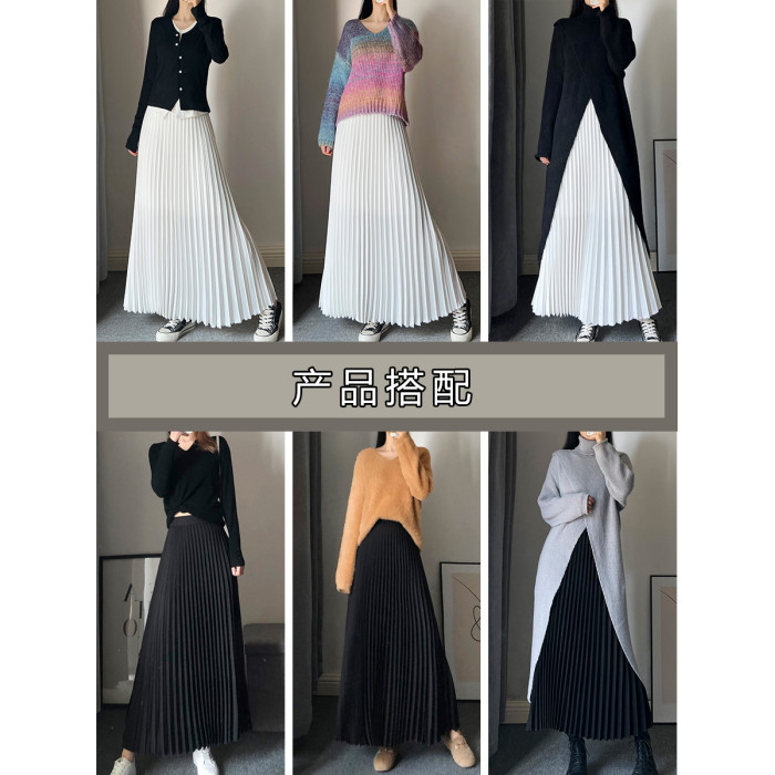 百褶半身裙女長款秋冬a字顯瘦大擺到腳踝長裙白色百褶裙半裙子