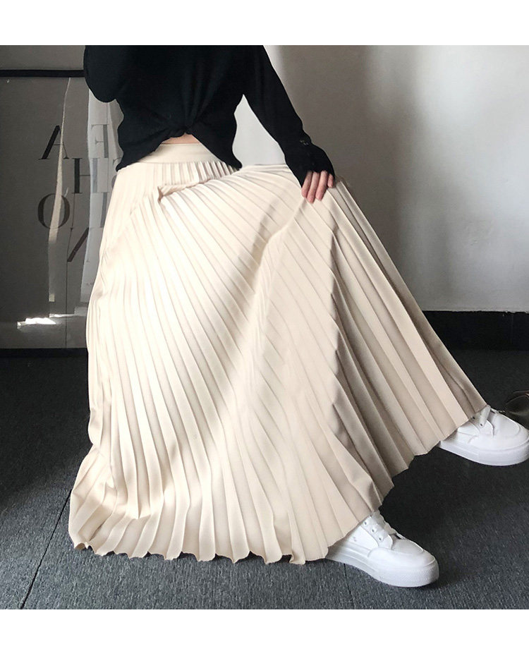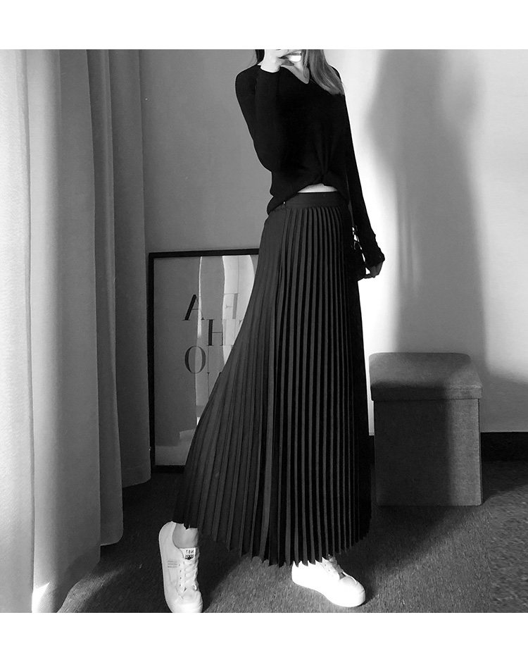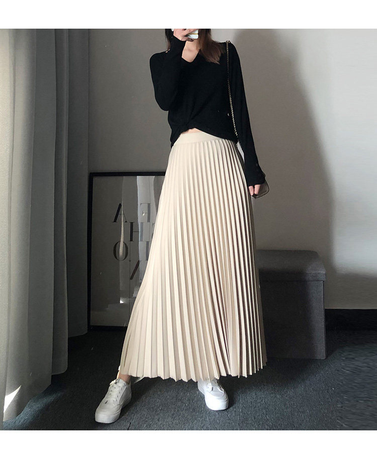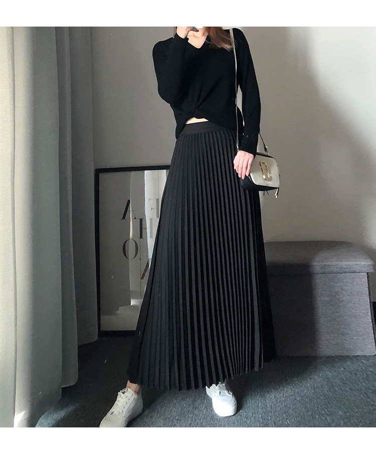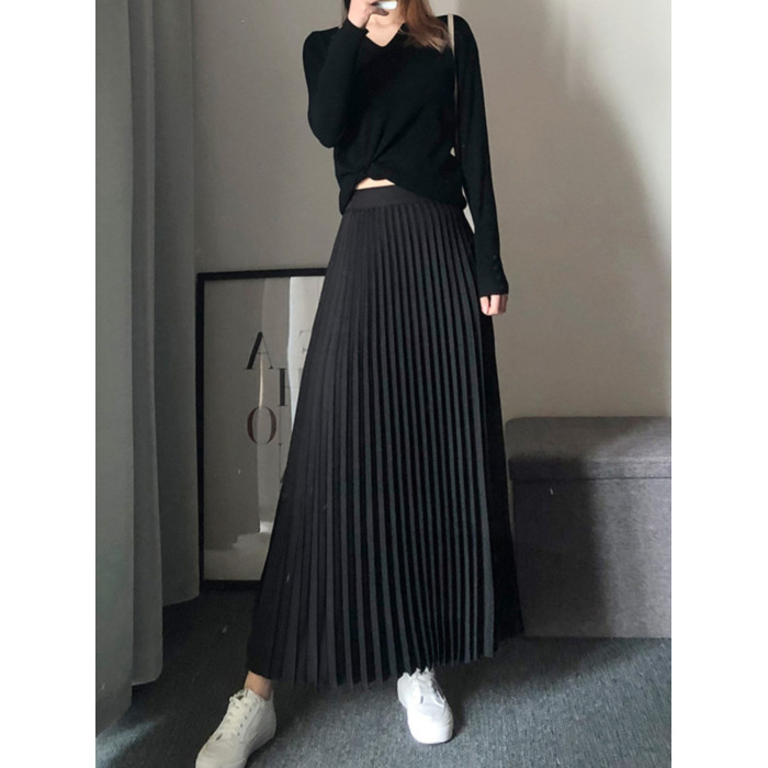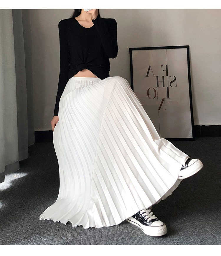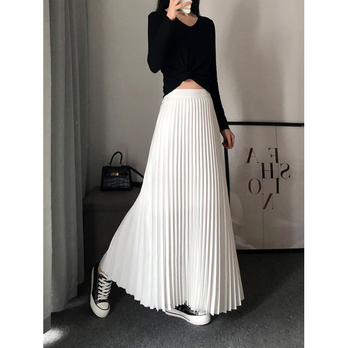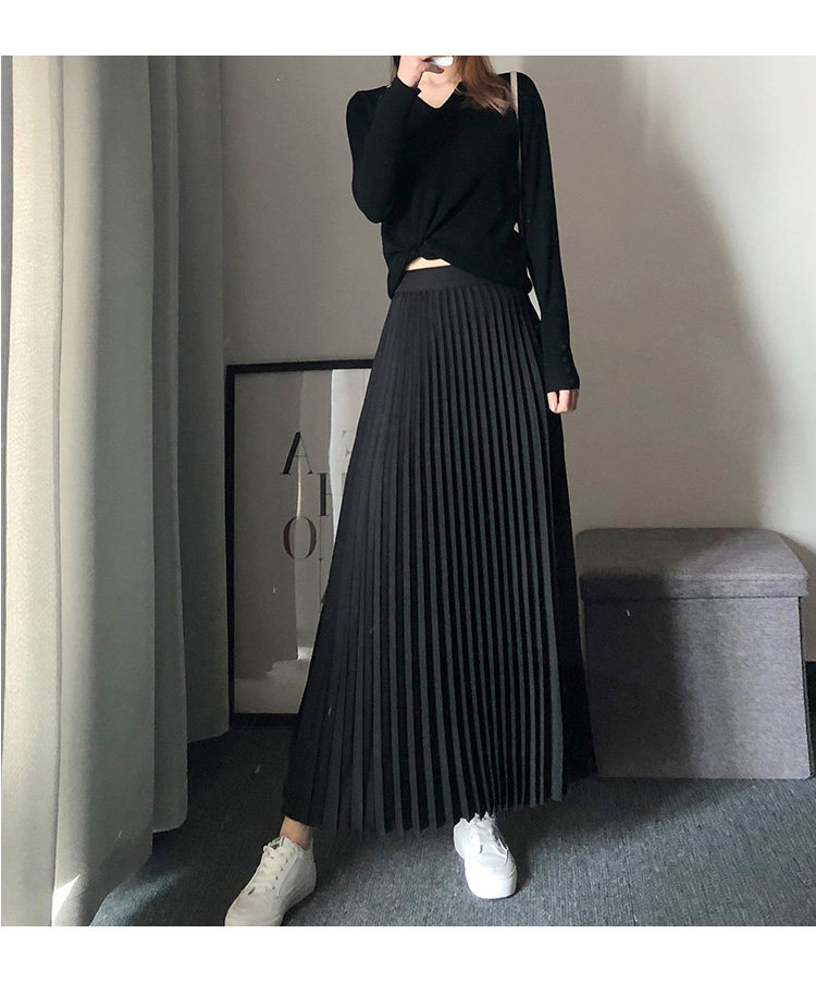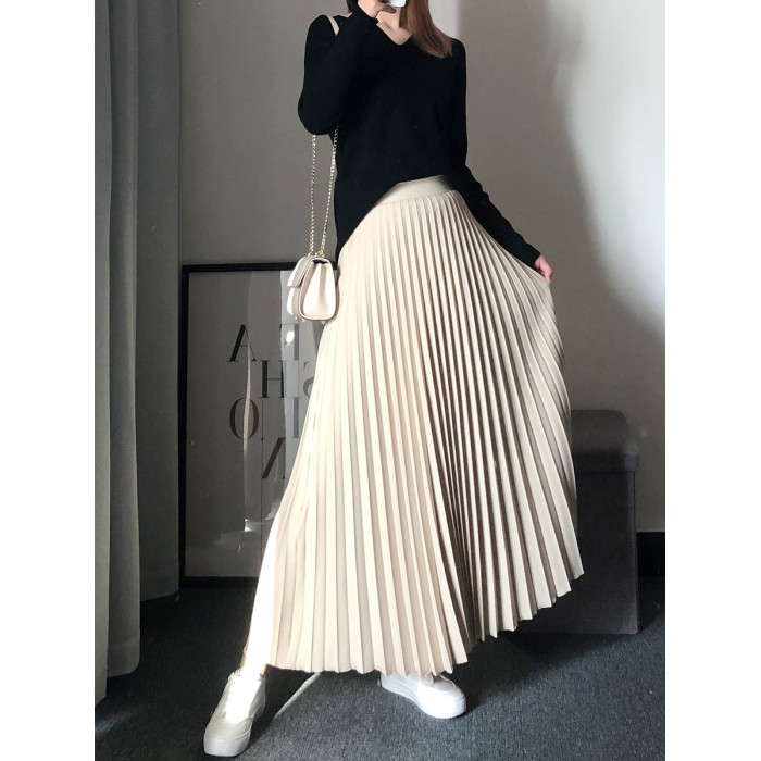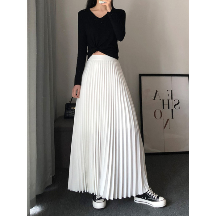 百褶半身裙女長款秋冬a字顯瘦大擺到腳踝長裙白色百褶裙半裙子