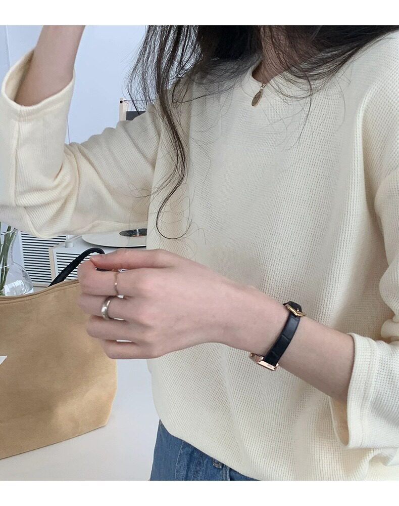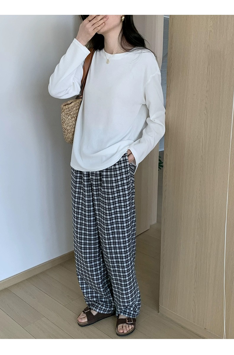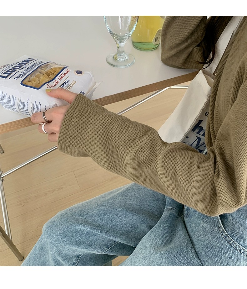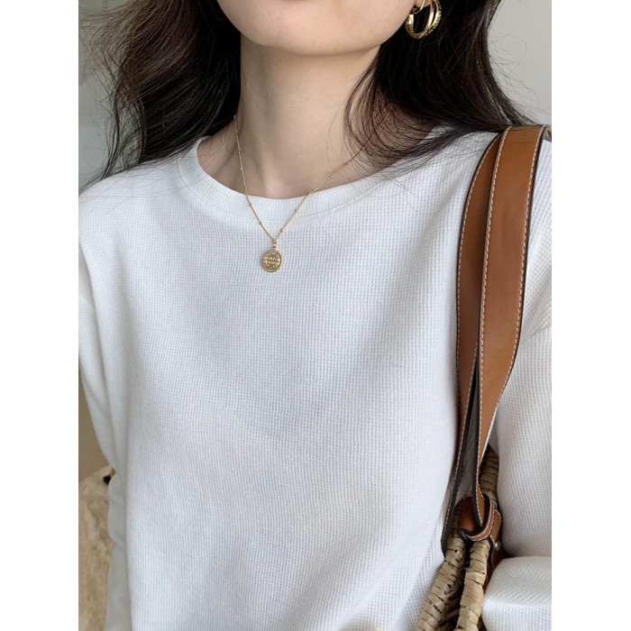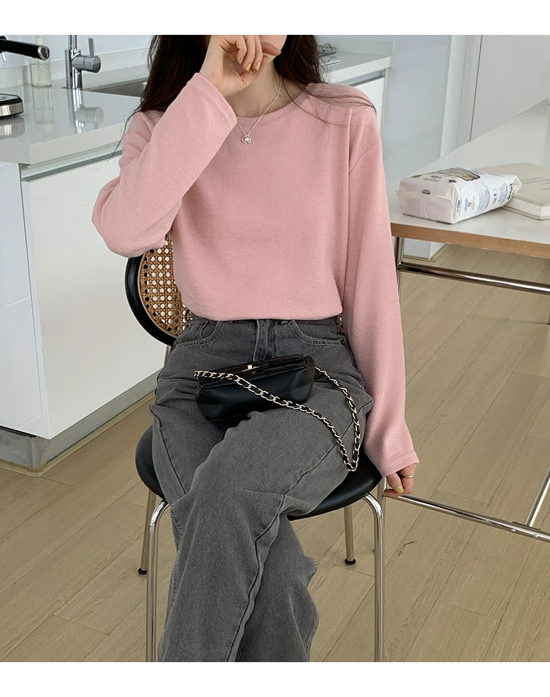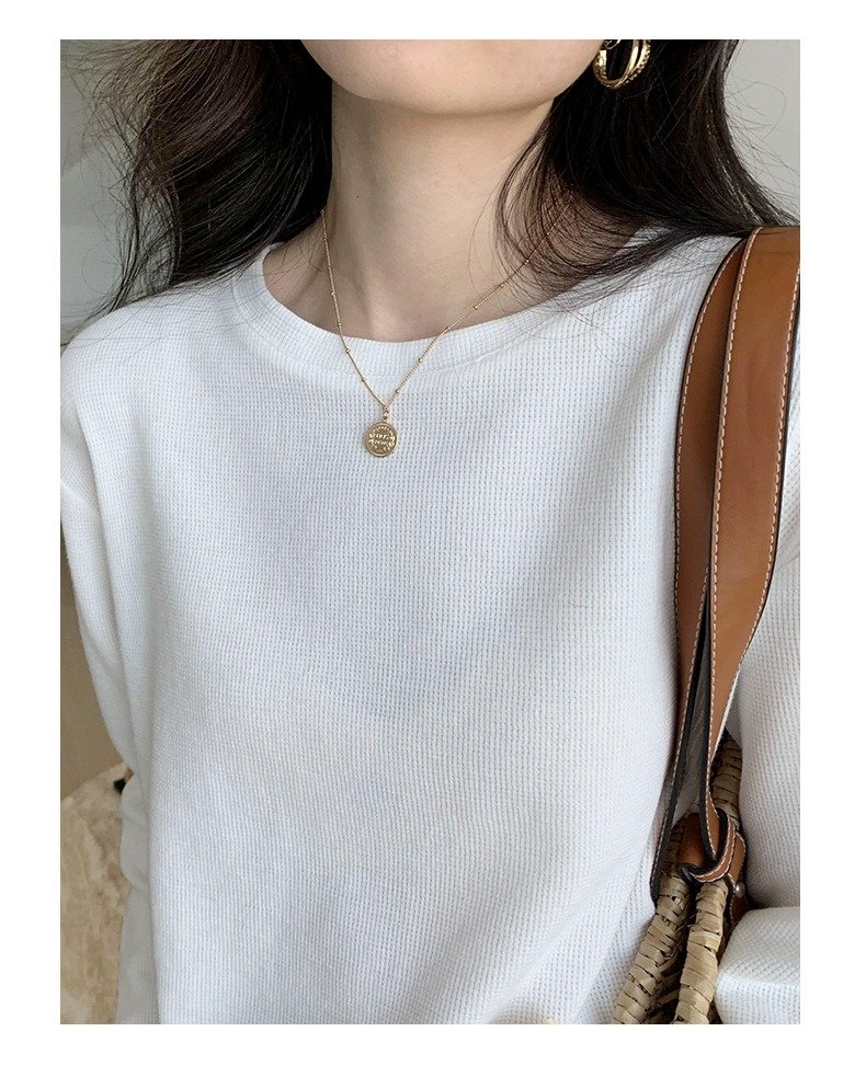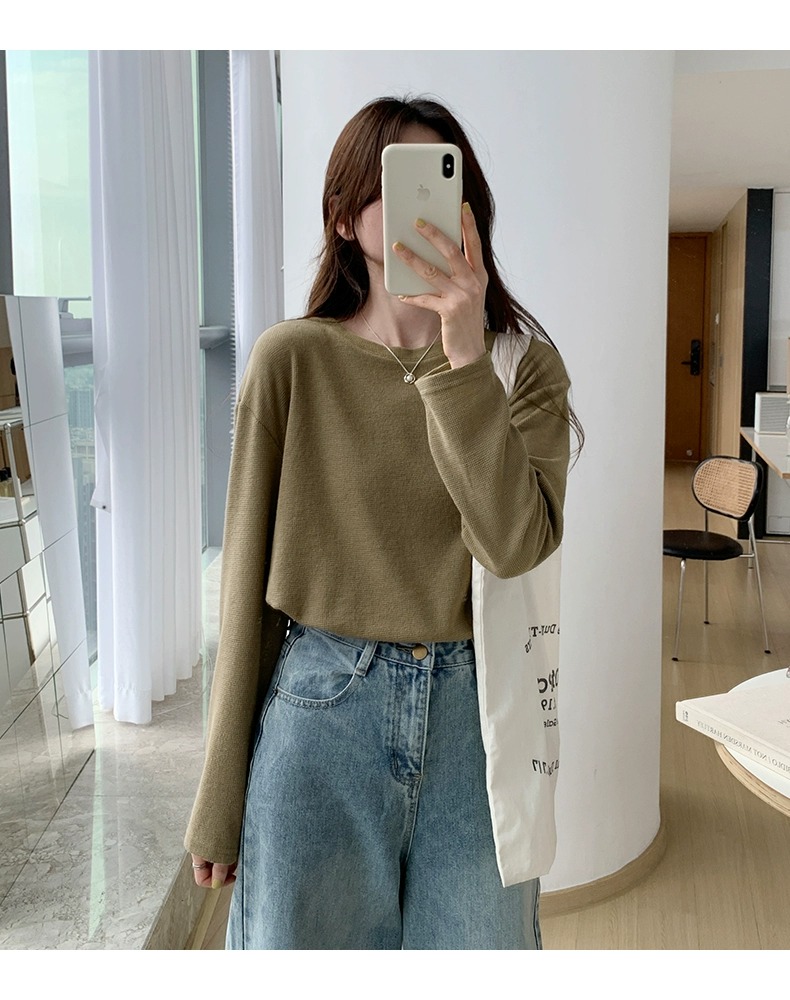 灰色華夫格寬松慵懶風寬松打底衫春季秋冬圓領長袖t恤女百搭純色