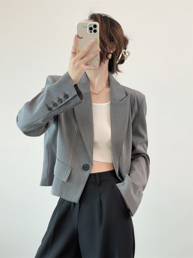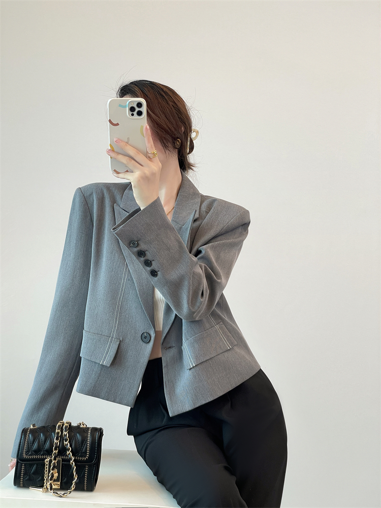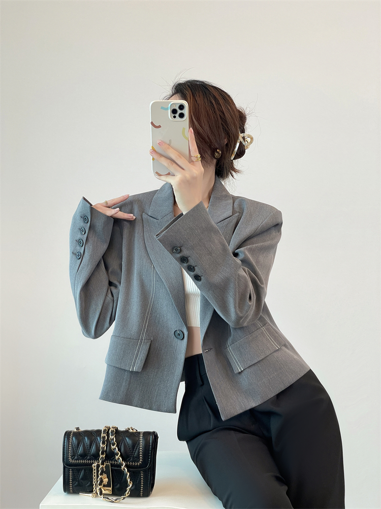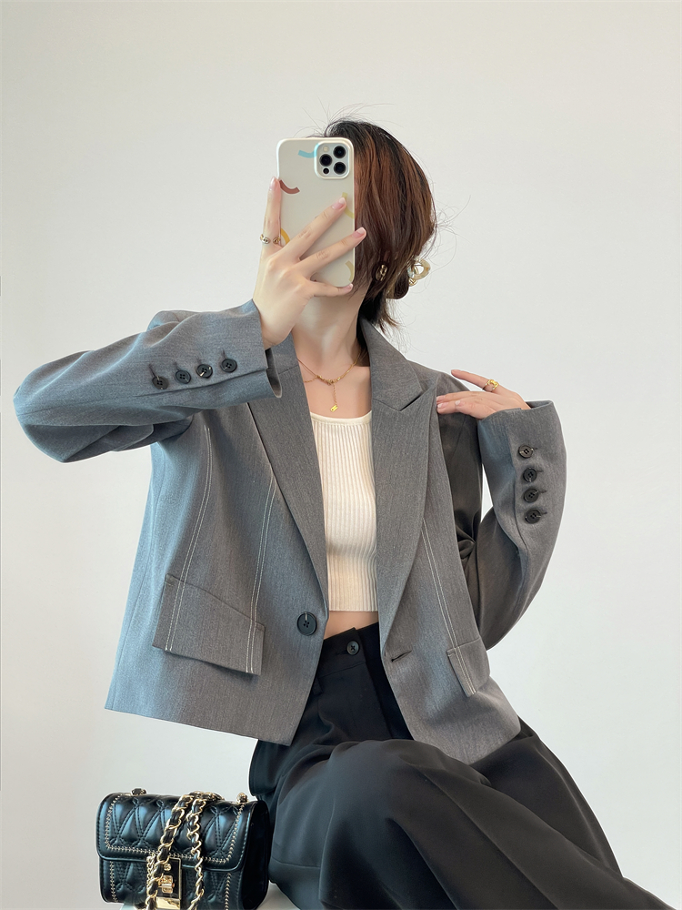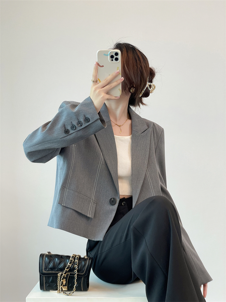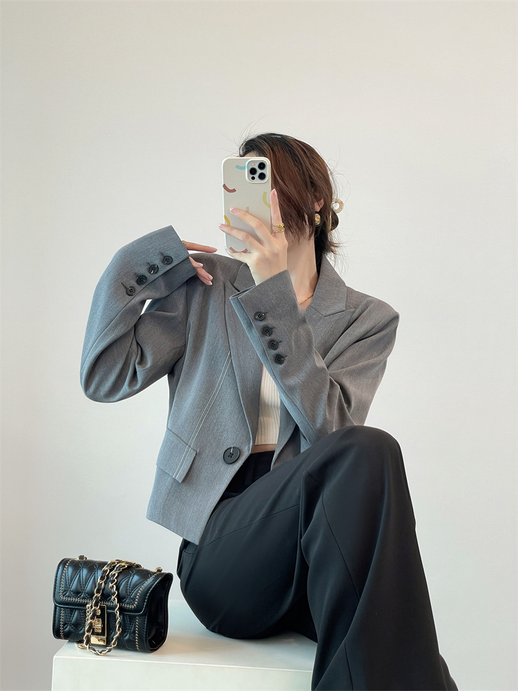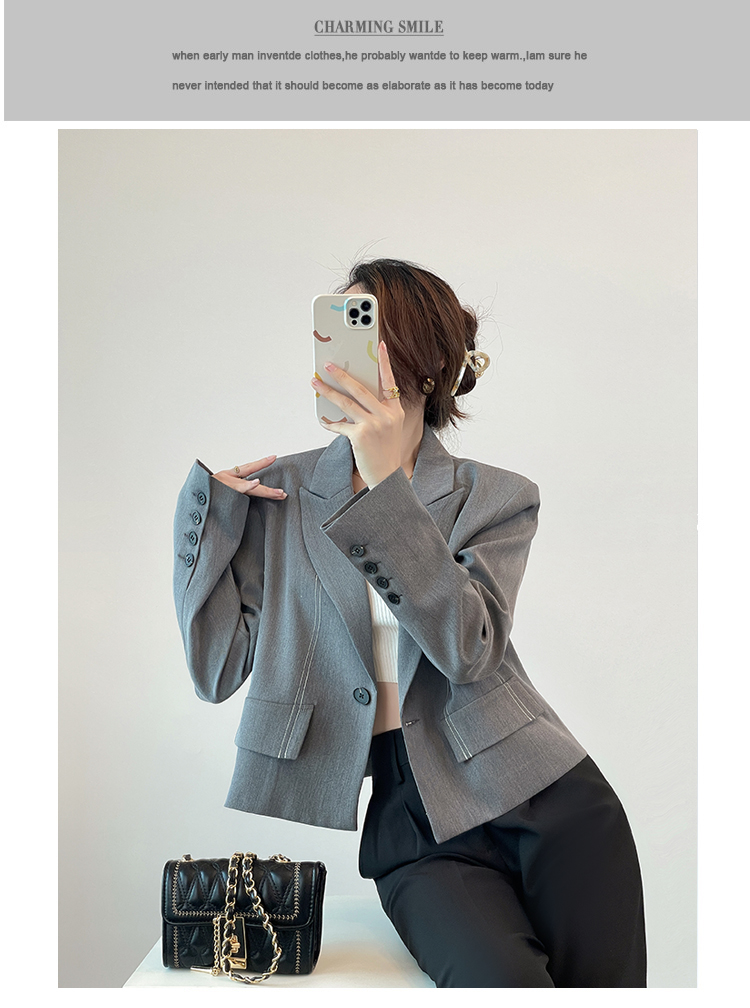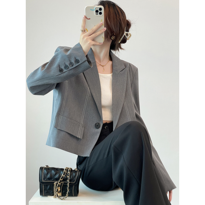 LINGLAI 小西裝女短款外套春秋小個子休閒氣質上衣設計感職業西服
