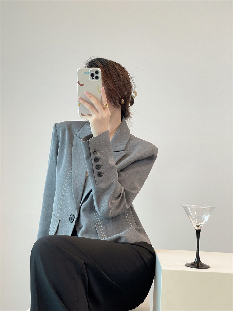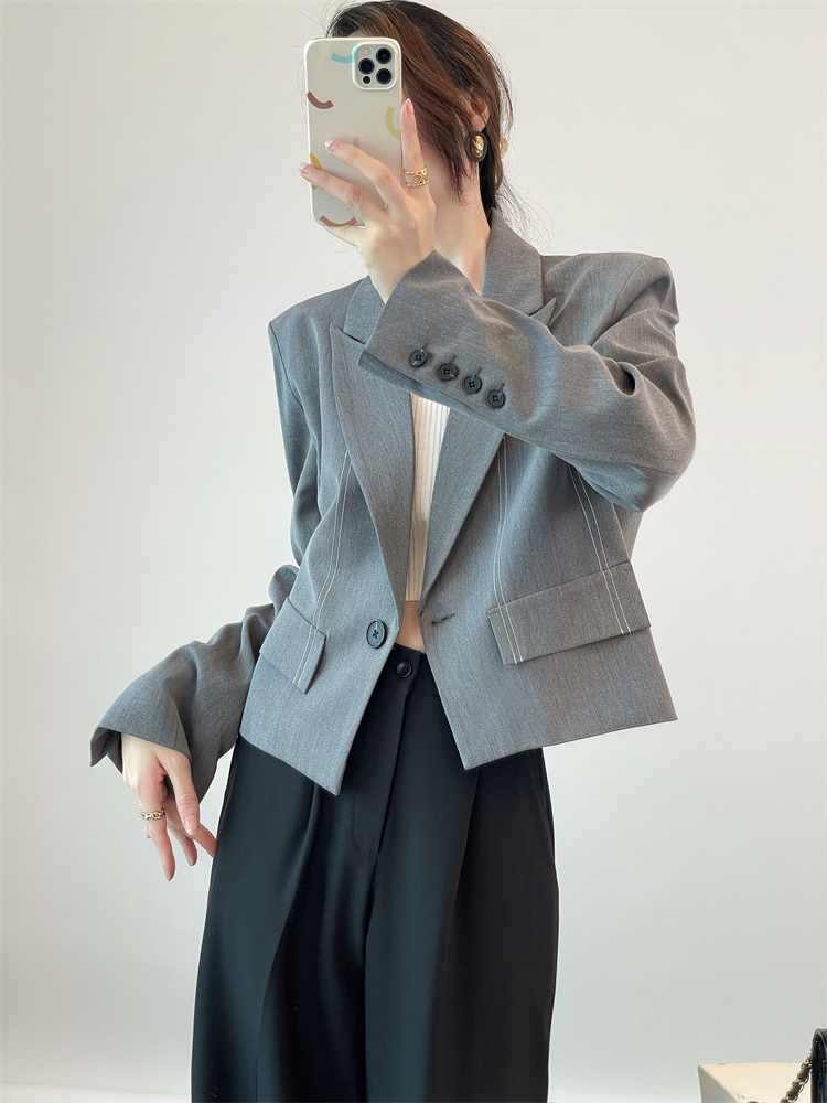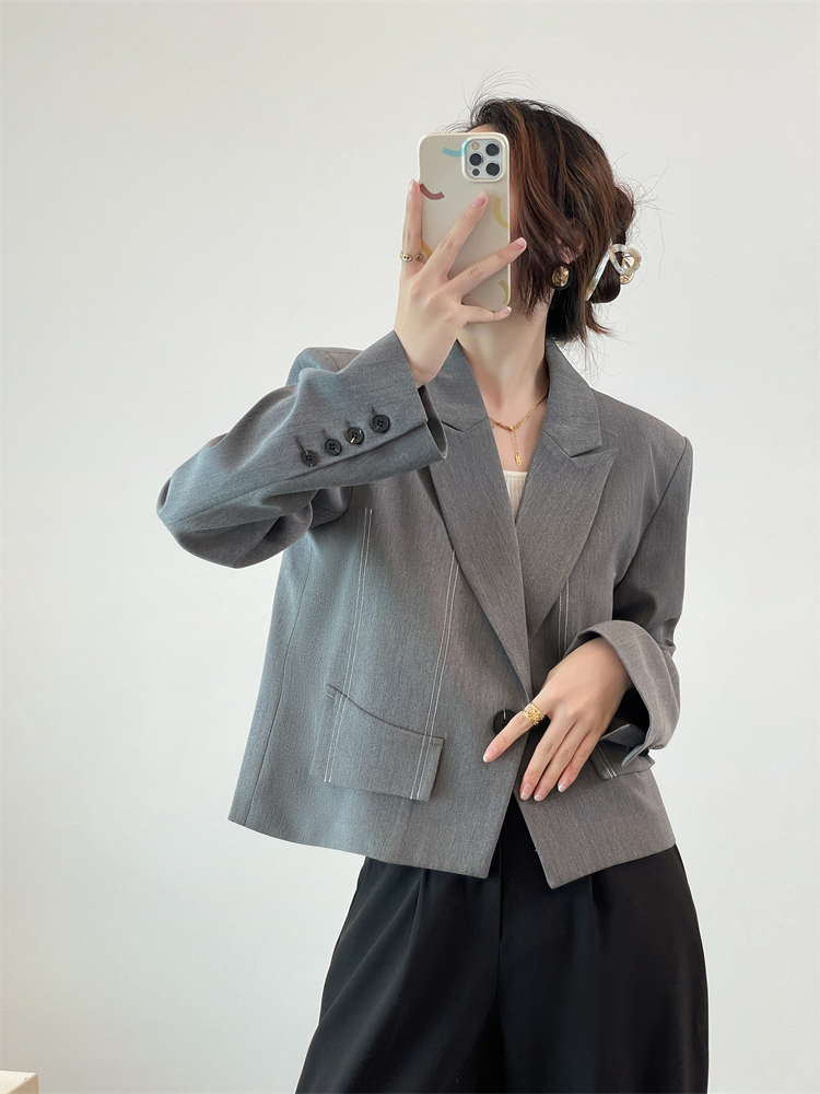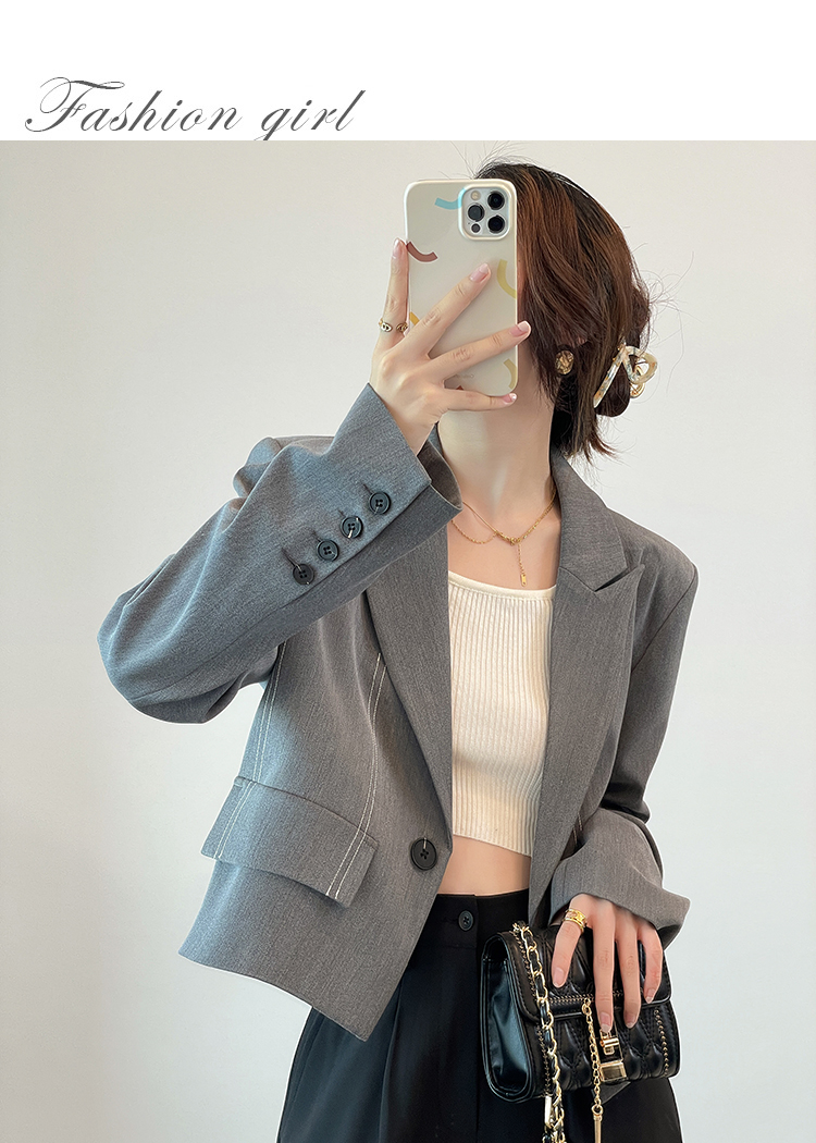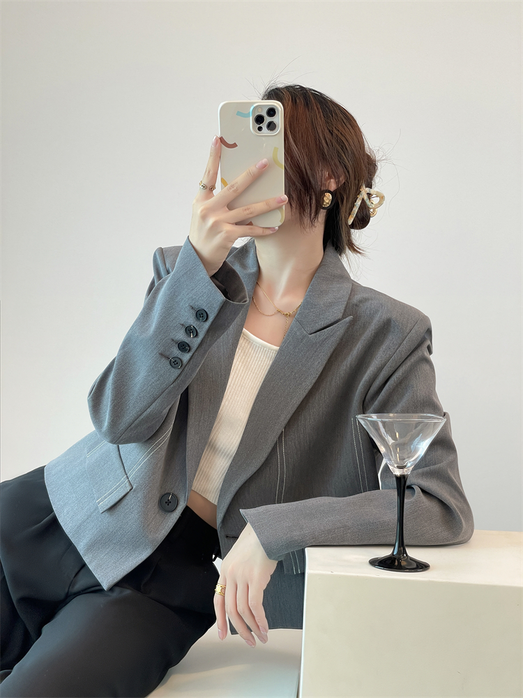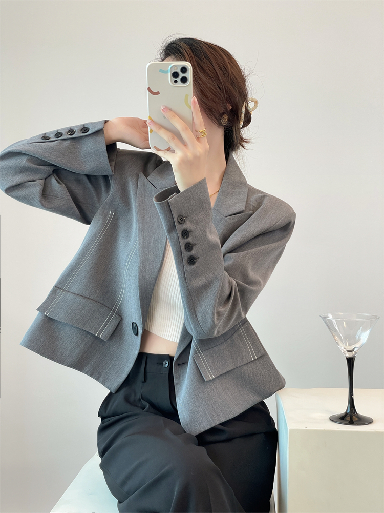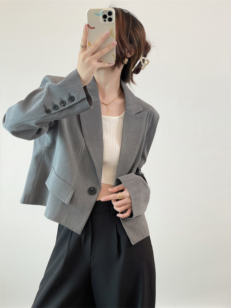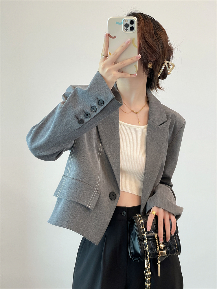 LINGLAI 小西裝女短款外套春秋小個子休閒氣質上衣設計感職業西服