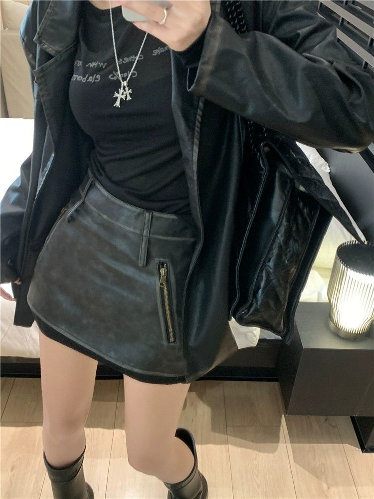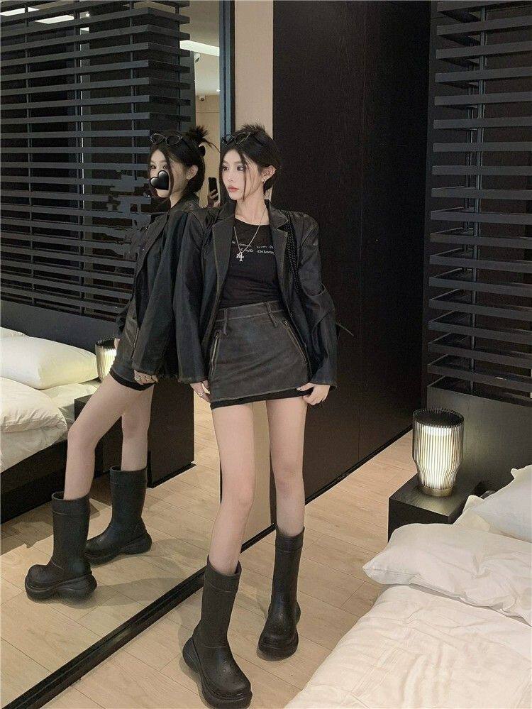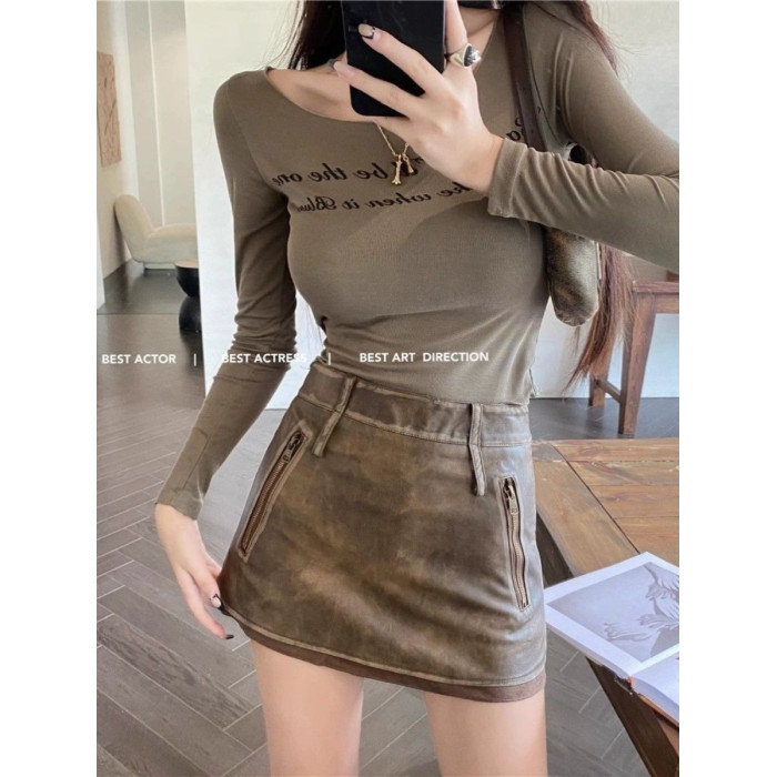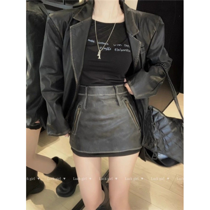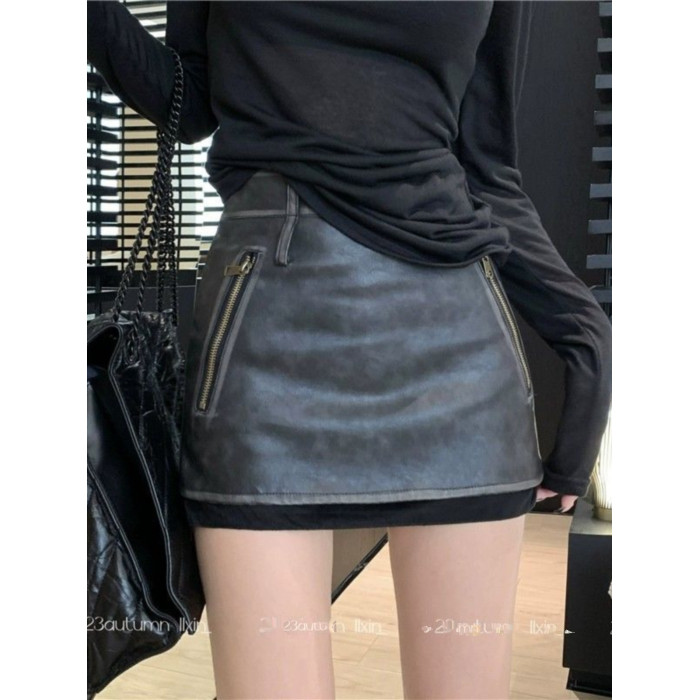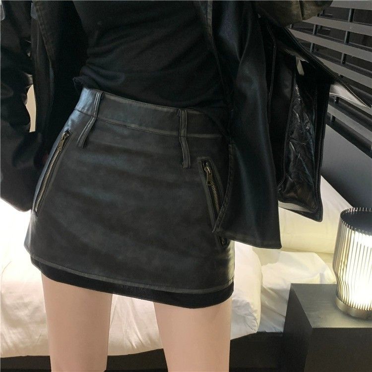 美拉德pu皮裙女秋冬2023新款高腰顯瘦性感半身裙復古休閒a字短裙