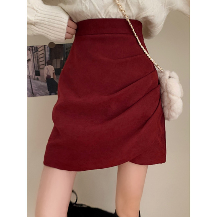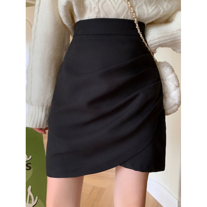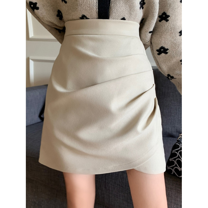 大碼胖mm不規則褶皺半身裙女2025年新款高腰裙子a字裙包臀裙短裙