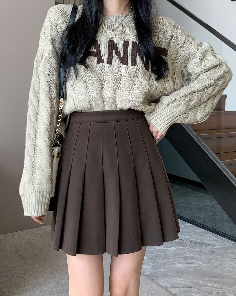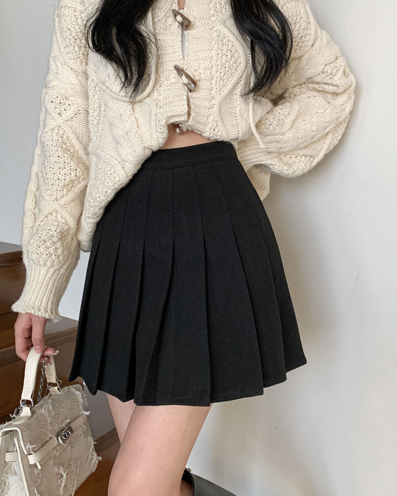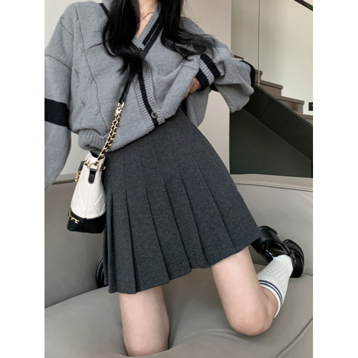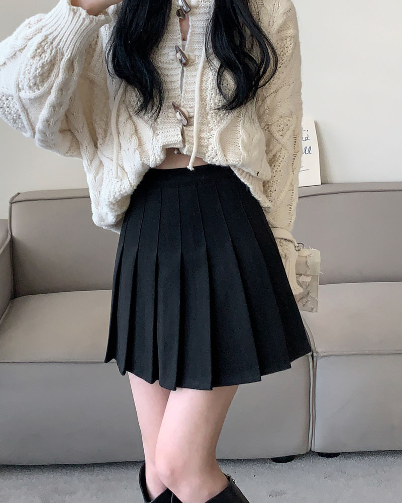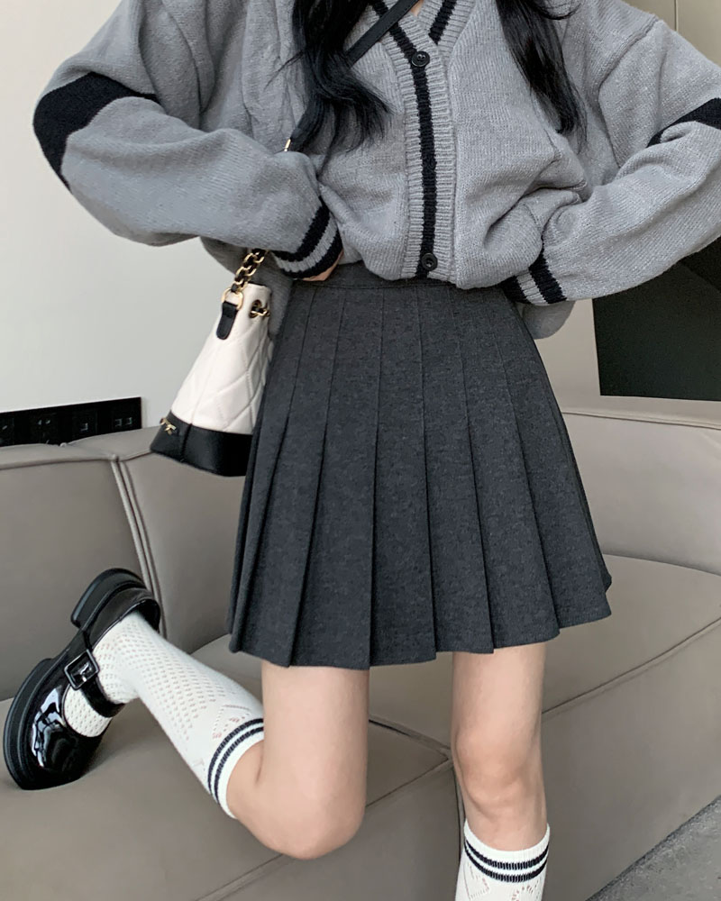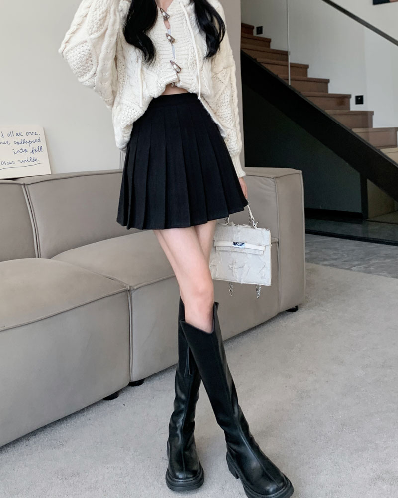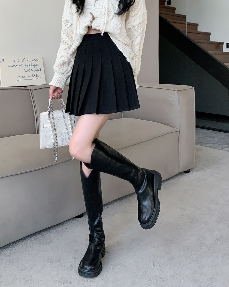 大碼黑色毛呢百褶裙女春秋新款小個子高腰顯瘦A字半身裙胖mm短裙