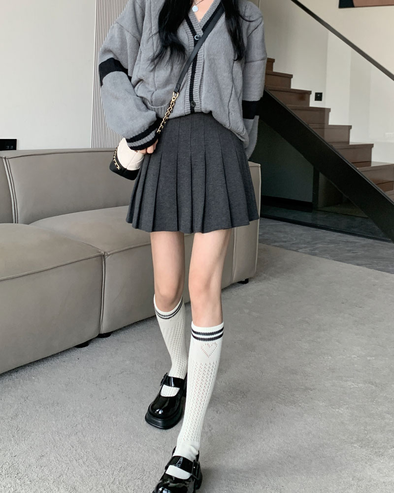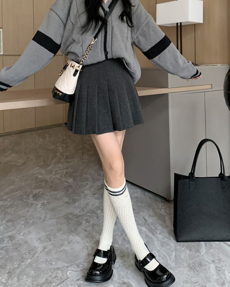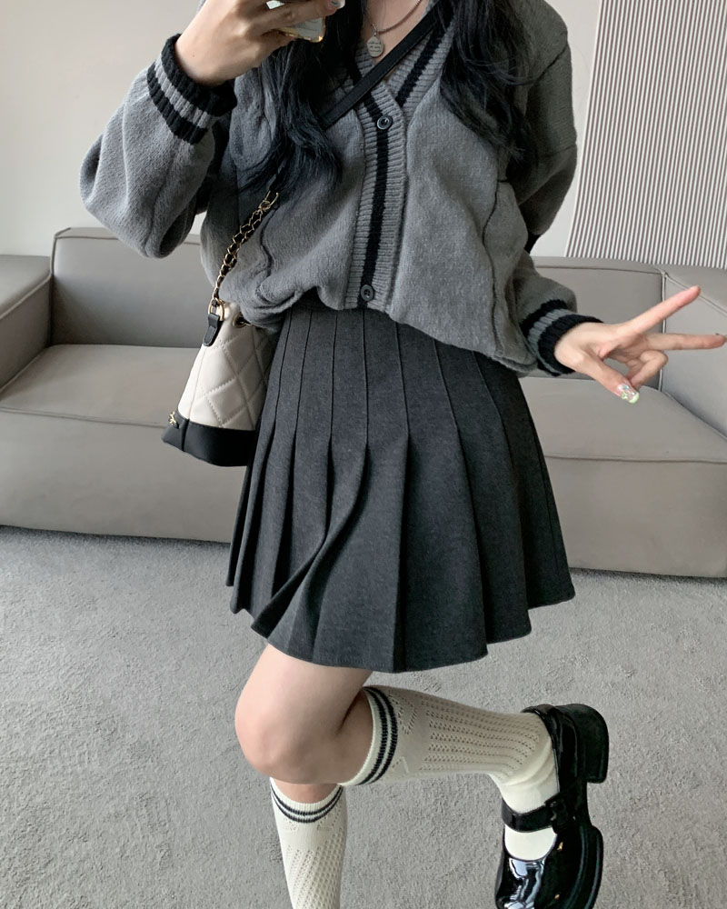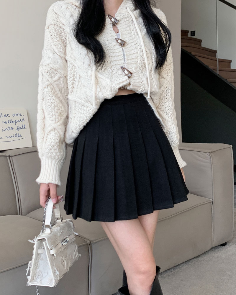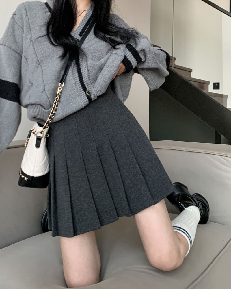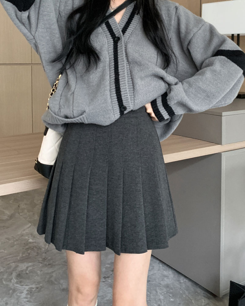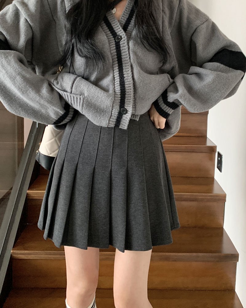 大碼黑色毛呢百褶裙女春秋新款小個子高腰顯瘦A字半身裙胖mm短裙