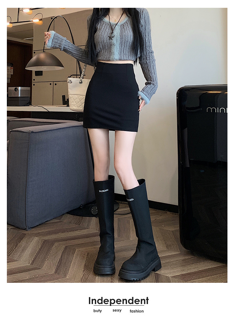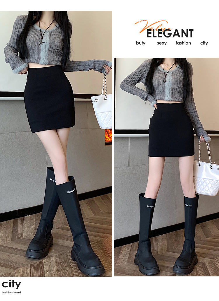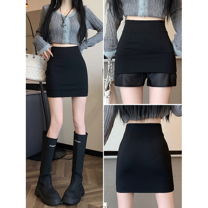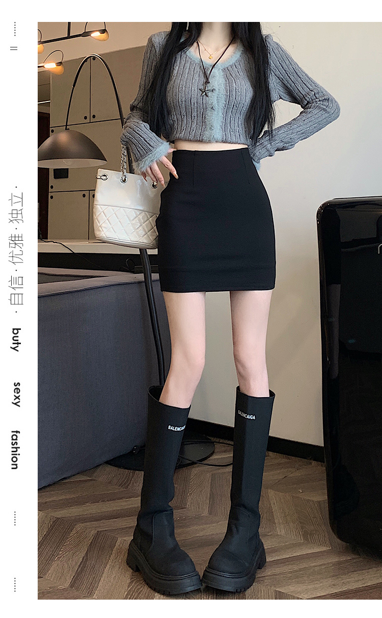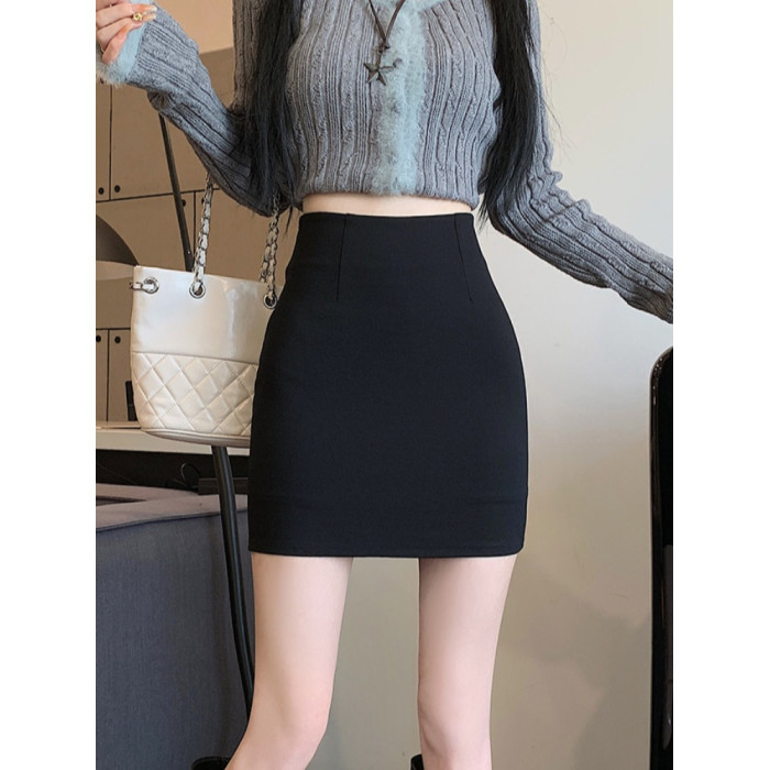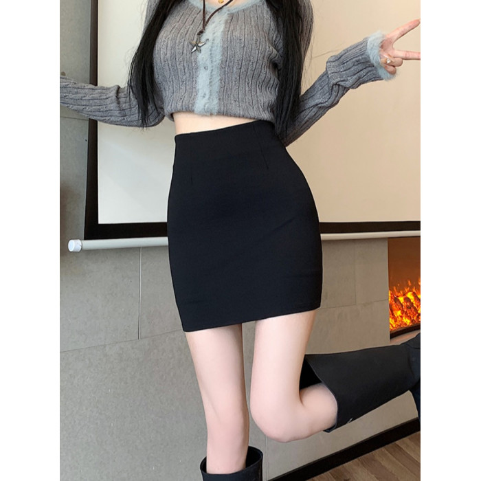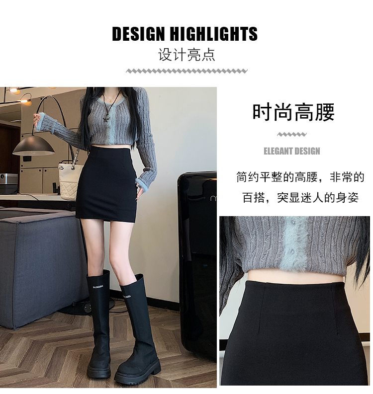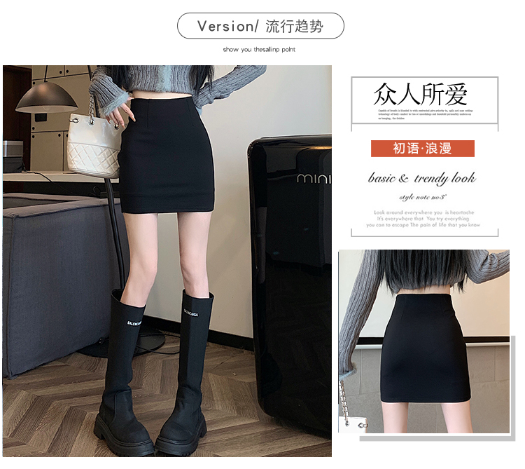 黑色修身包臀半身裙女春秋防走光顯腿長a字短裙緊身彈力一步裙ins