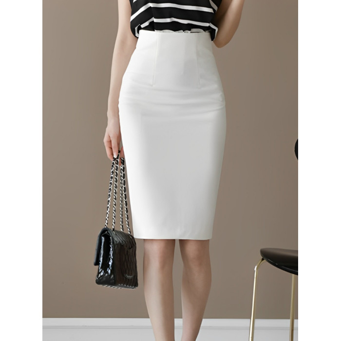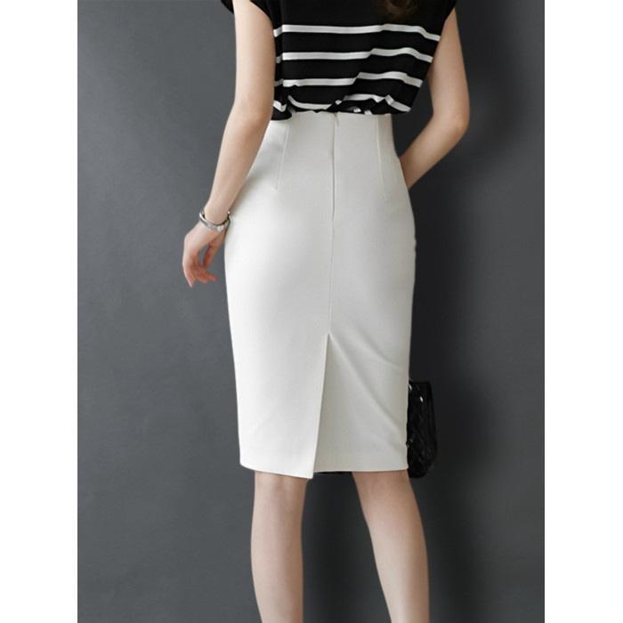 通勤西裝半身裙女白色新款高腰氣質開叉職業直筒裙休閒百搭包臀裙