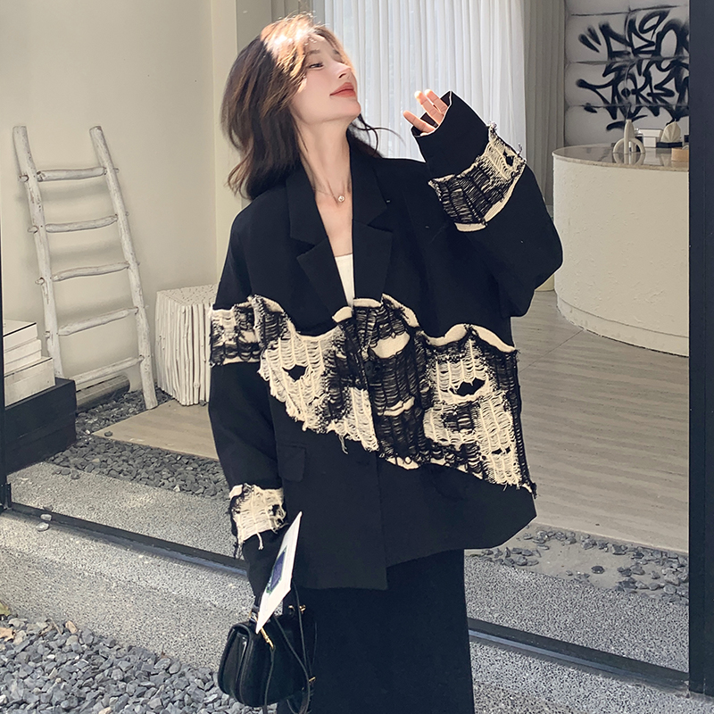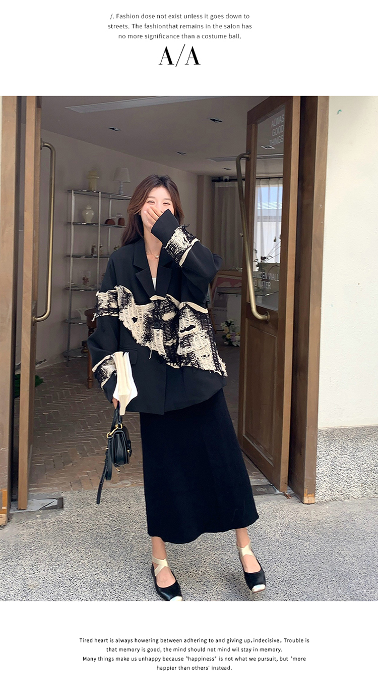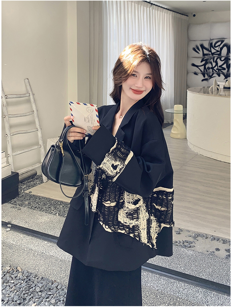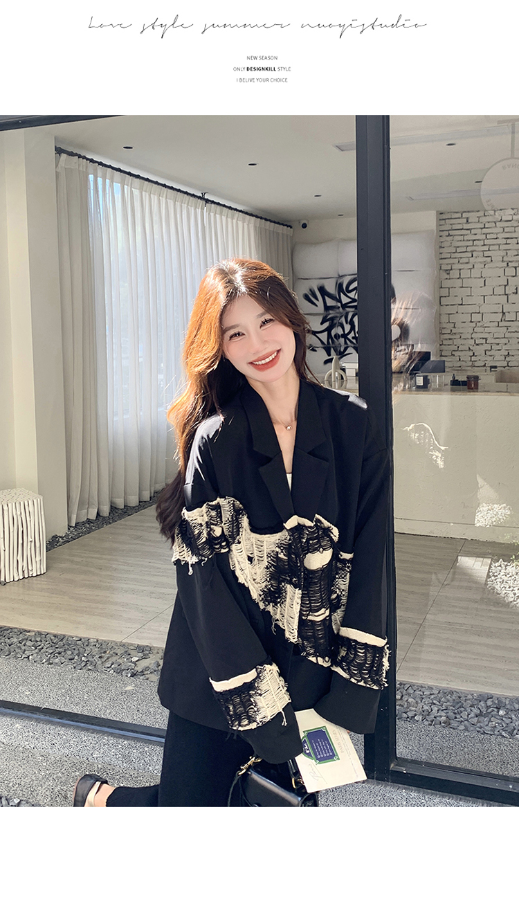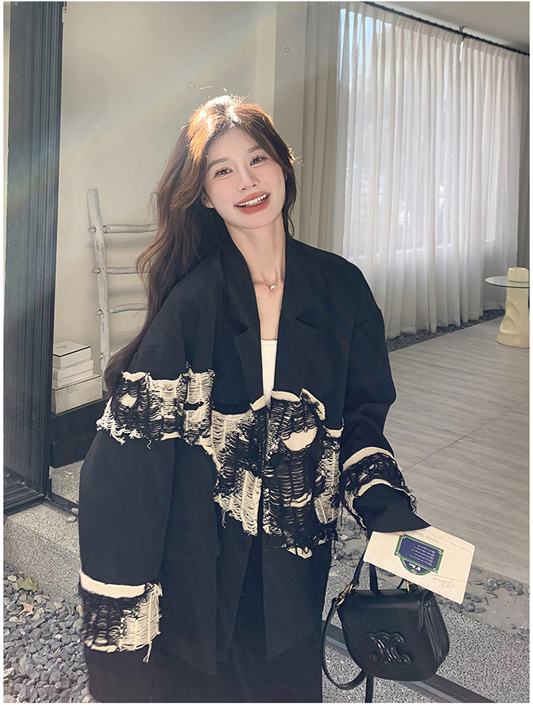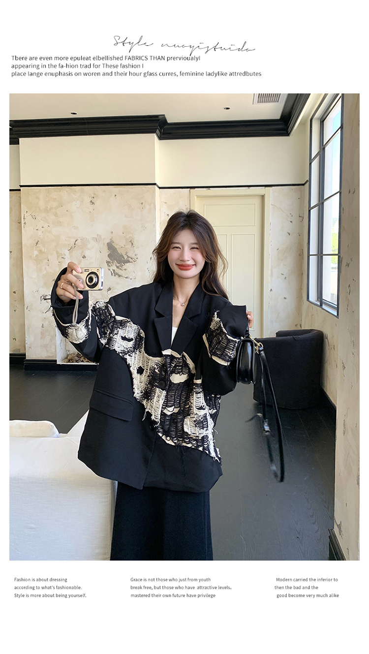 黑色拼接西裝外套女春2025超火今年流行寬松休閒獨特漂亮爆款西服