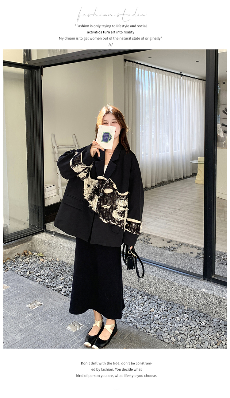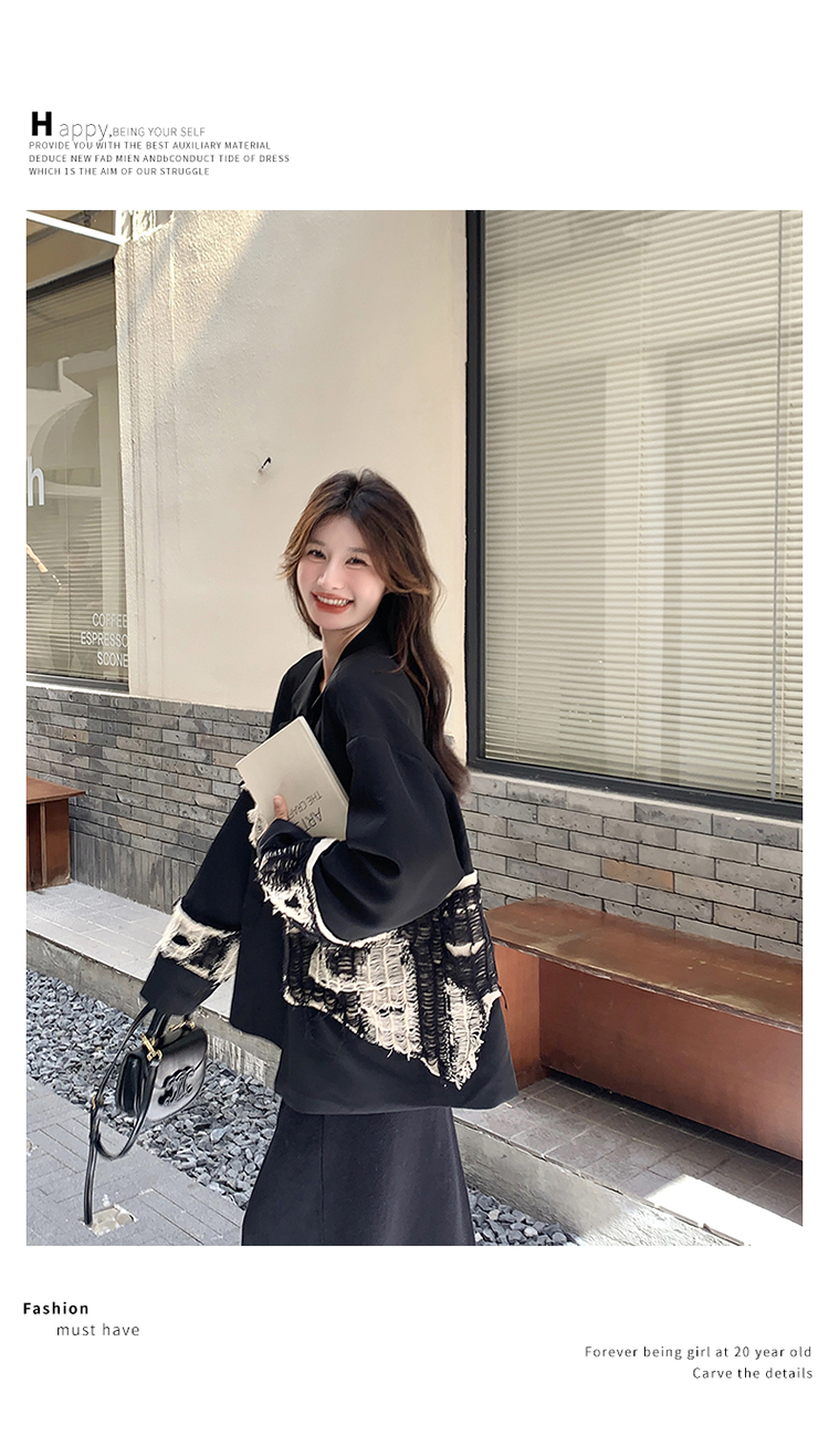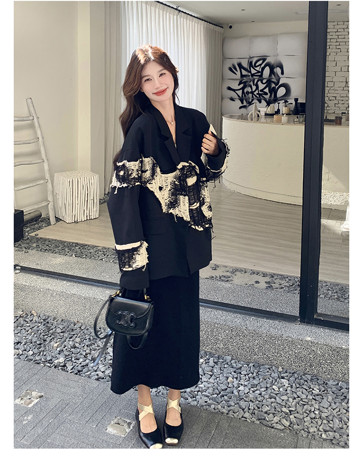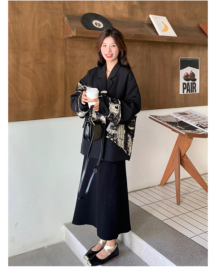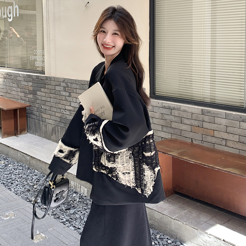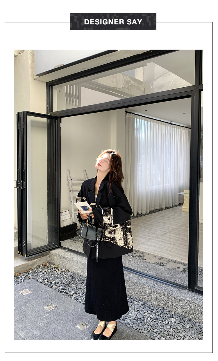 黑色拼接西裝外套女春2025超火今年流行寬松休閒獨特漂亮爆款西服