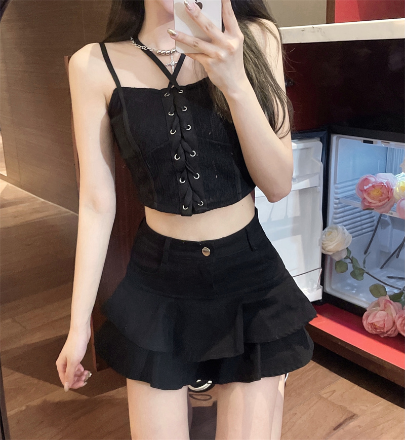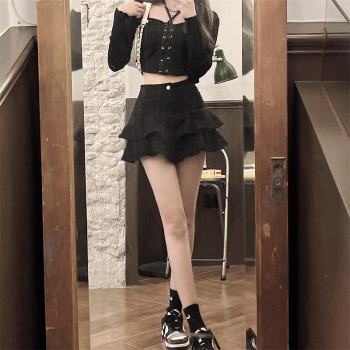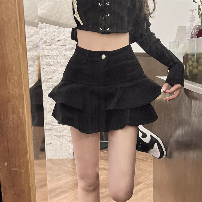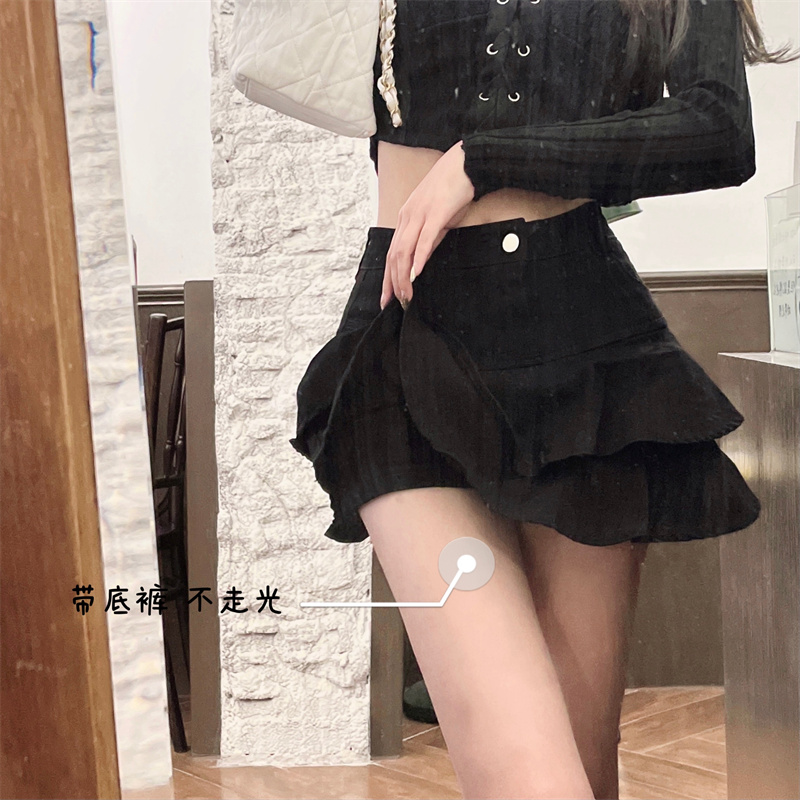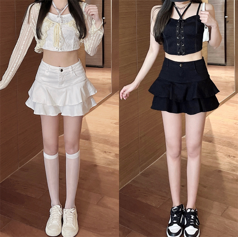 白色牛仔半身裙女夏季大碼高腰顯瘦荷葉邊蛋糕裙防走光a字短裙褲