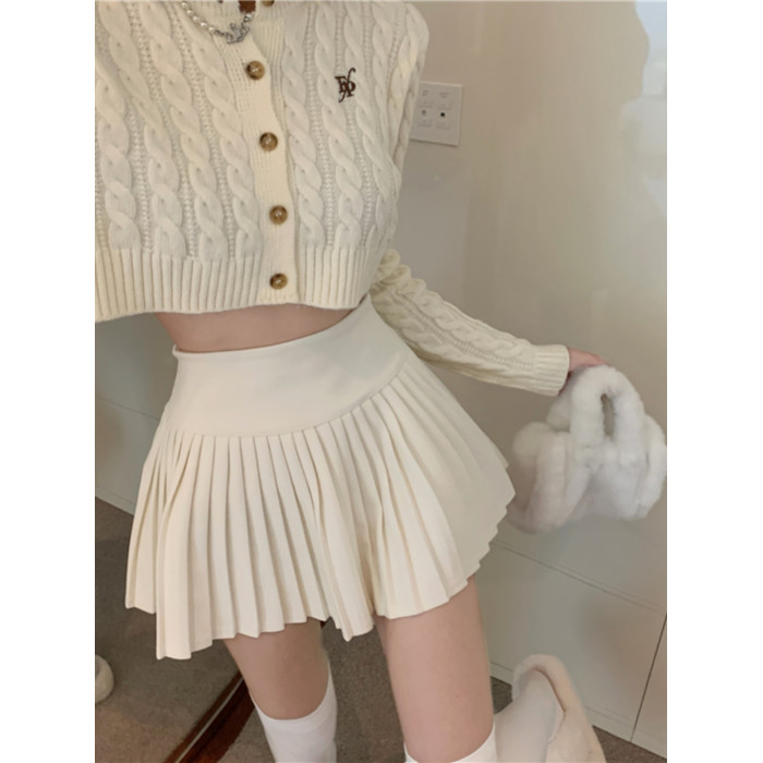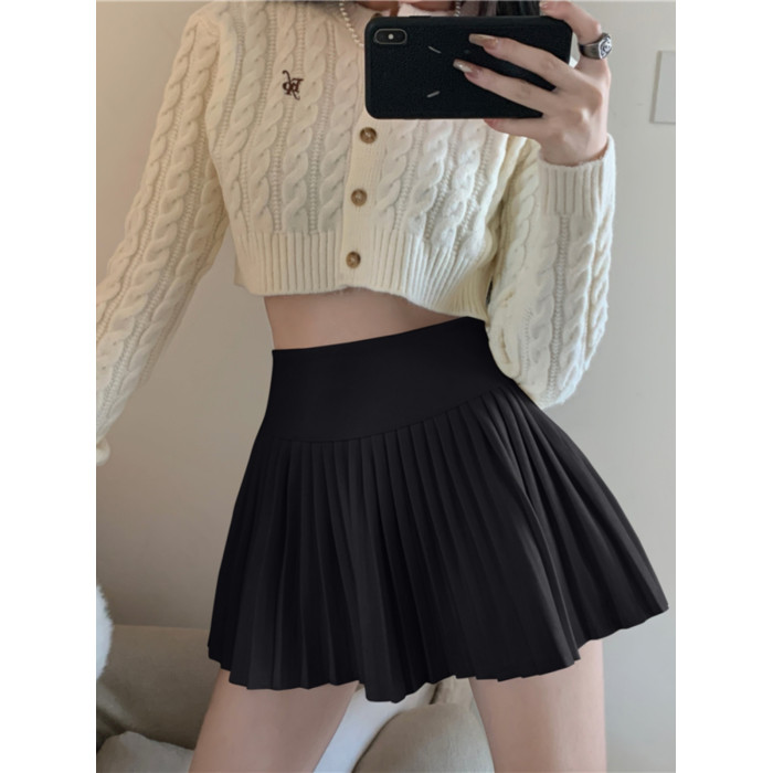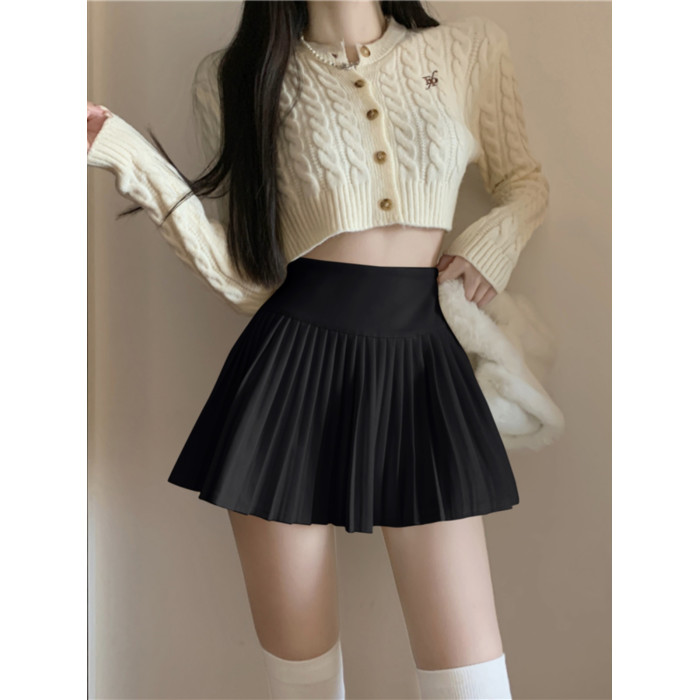 150小矮個子百褶半身裙女秋高腰a字防走光毛呢辣妹短裙xs顯高穿搭