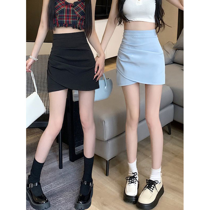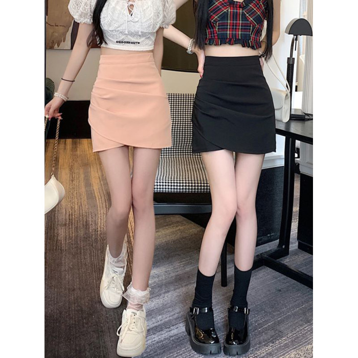 黑色半身裙女夏季2025新款時尚不規則褶皺短裙高腰顯瘦a字包臀裙
