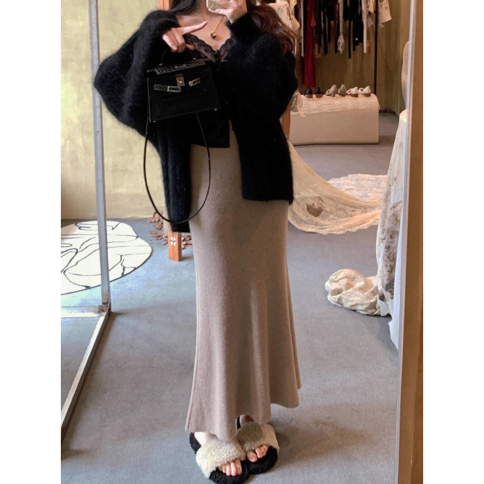 軟糯糯針織魚尾半身裙女秋冬2025新款高腰顯瘦包臀裙中長款一步裙