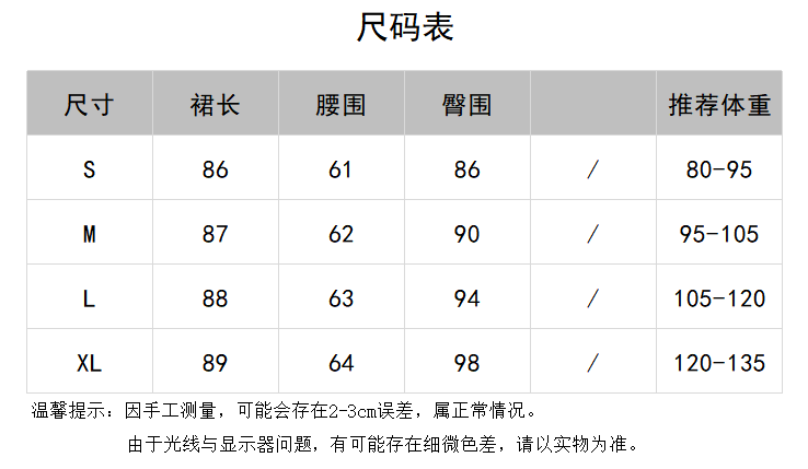 | 裙長 | 中長裙 |