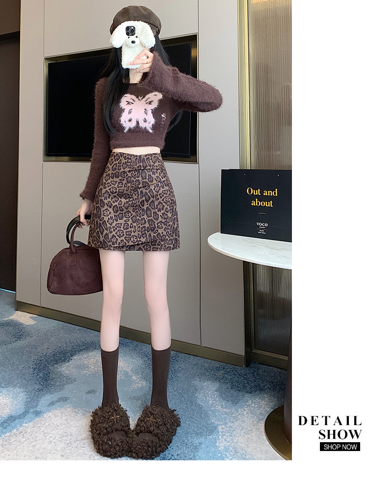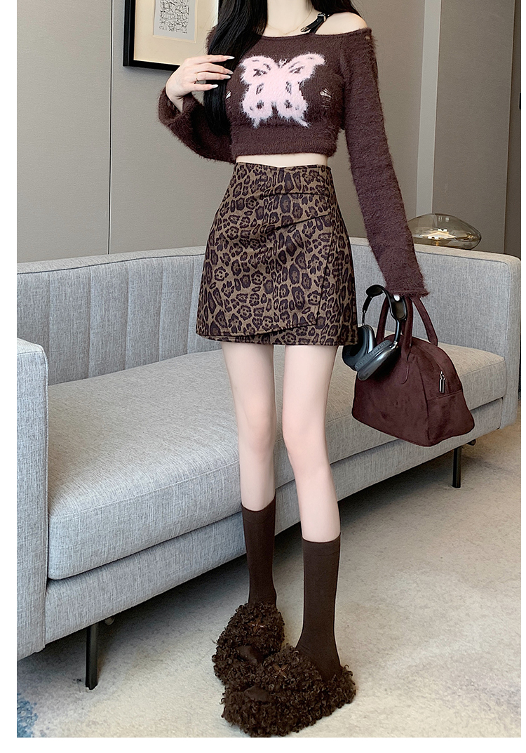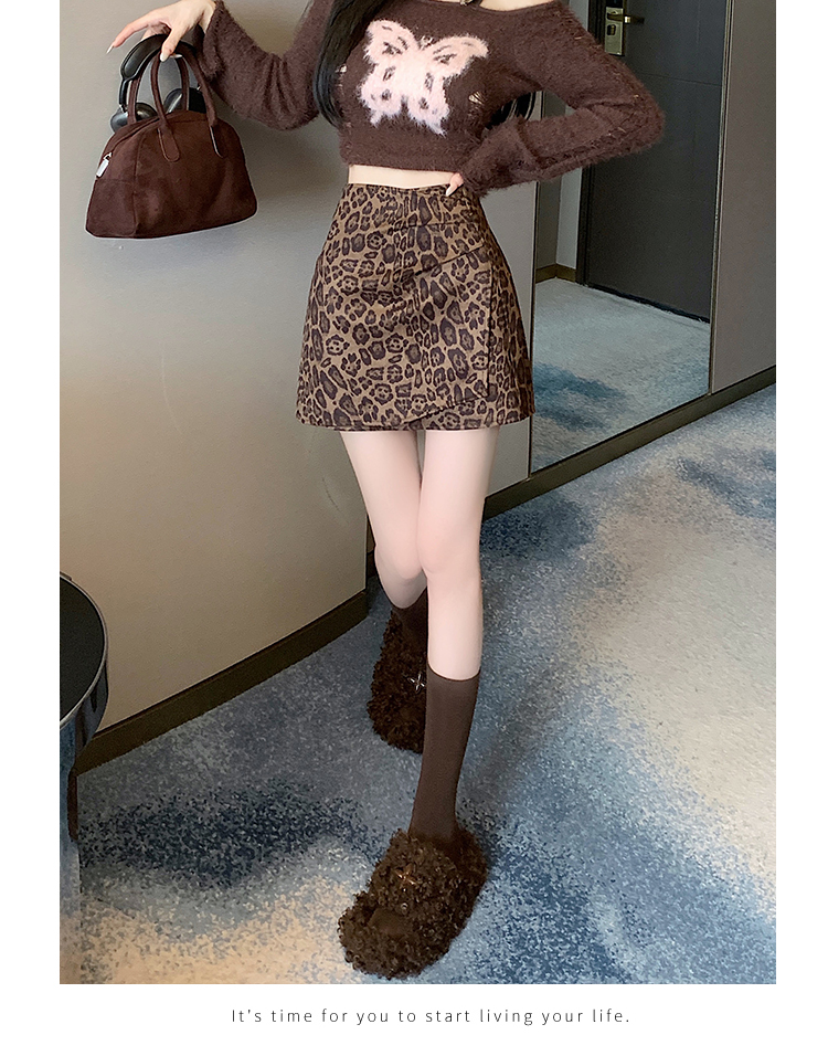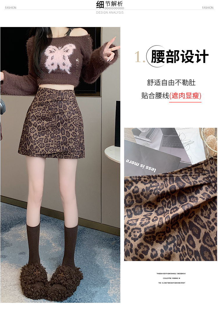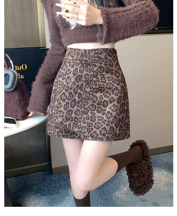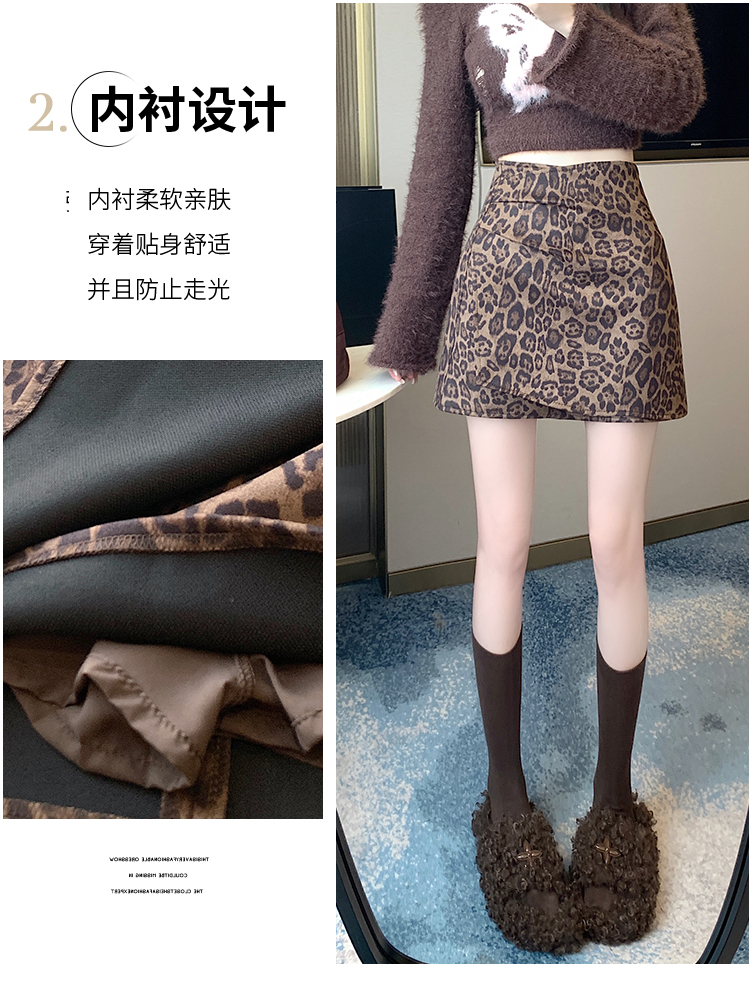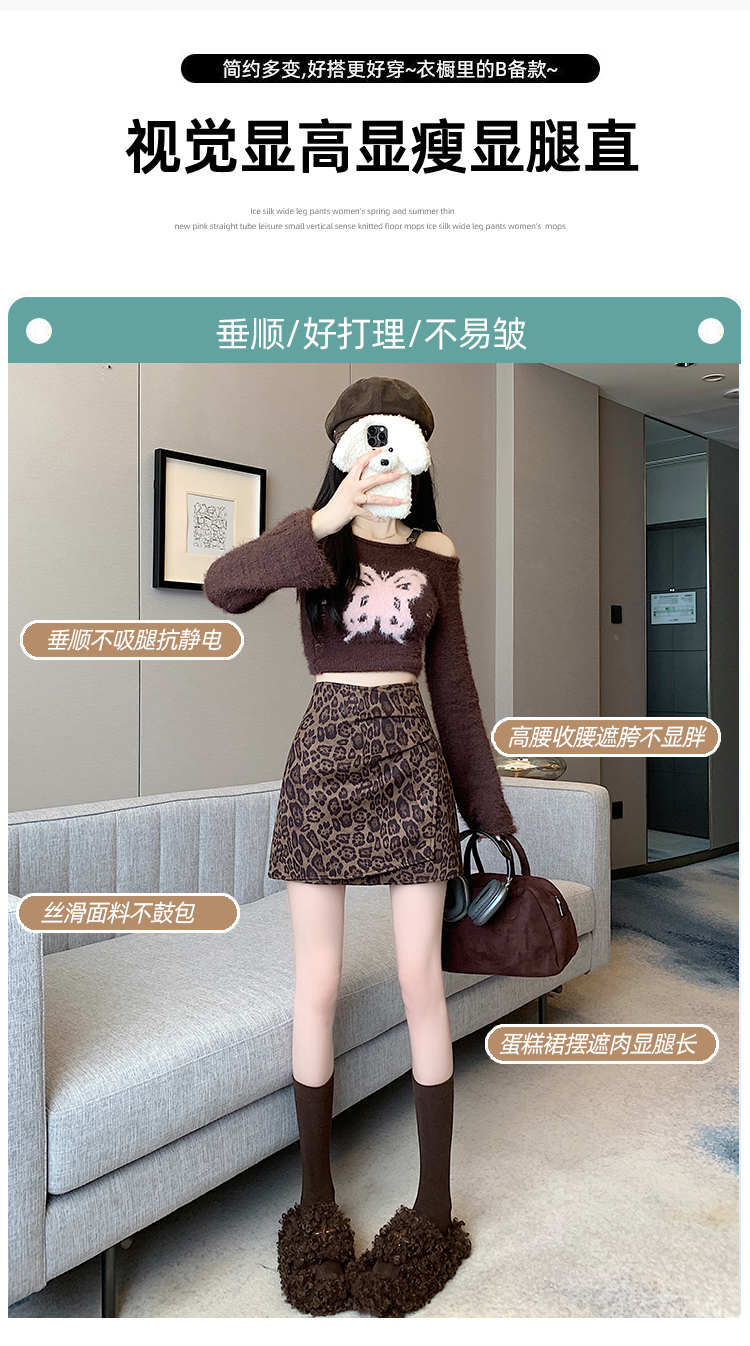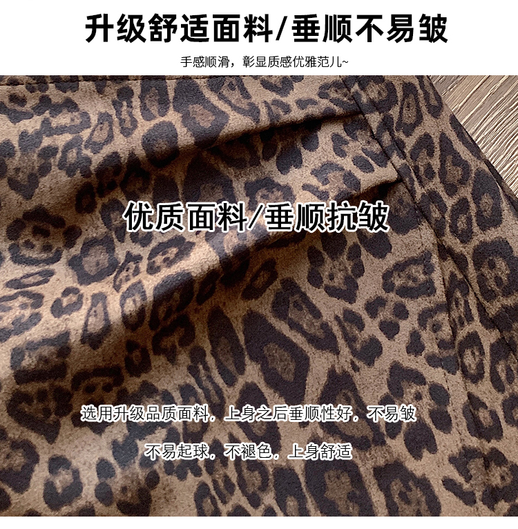 美式辣妹豹紋印花褶皺半身裙女秋冬新款交叉高腰顯瘦a字包臀短裙