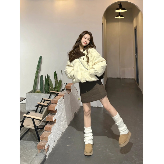 棕色短款半身裙女春秋冬季新款高腰顯瘦毛呢包臀裙小個子短裙子