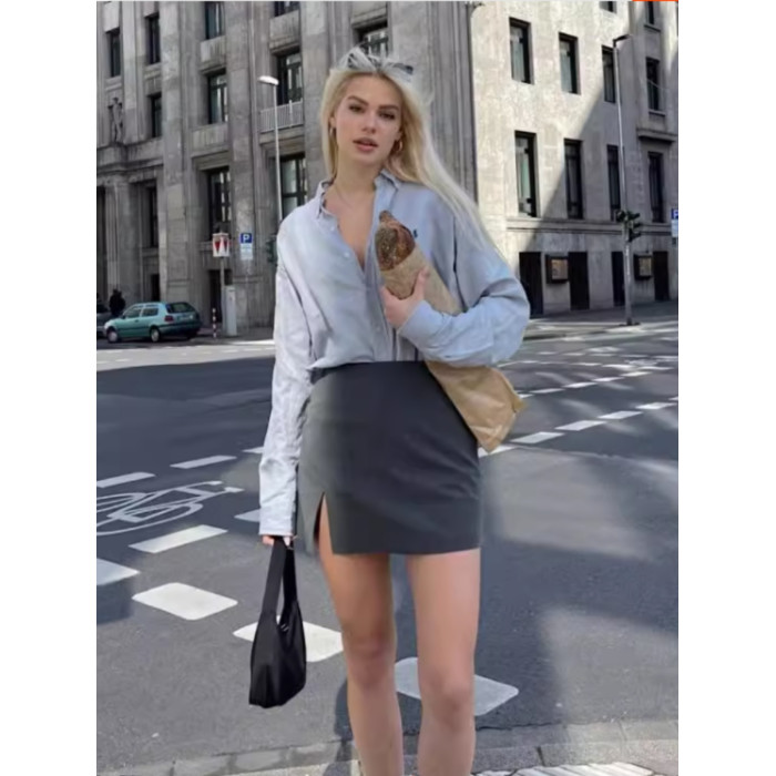 高腰包臀裙女開叉一步裙2025春夏款A字半身裙性感不規則短裙女