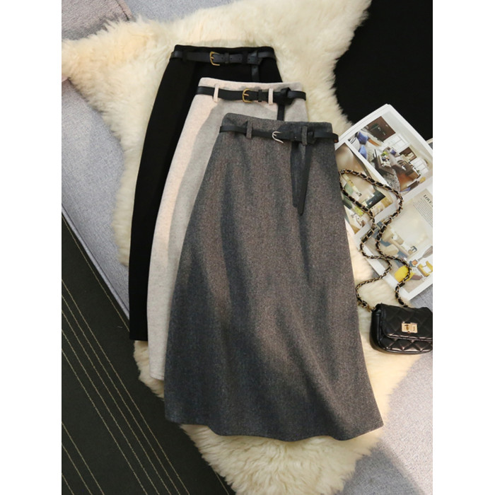 150小矮個子毛呢半身裙女秋冬加厚顯瘦高腰繖裙中長款a字裙xs顯高