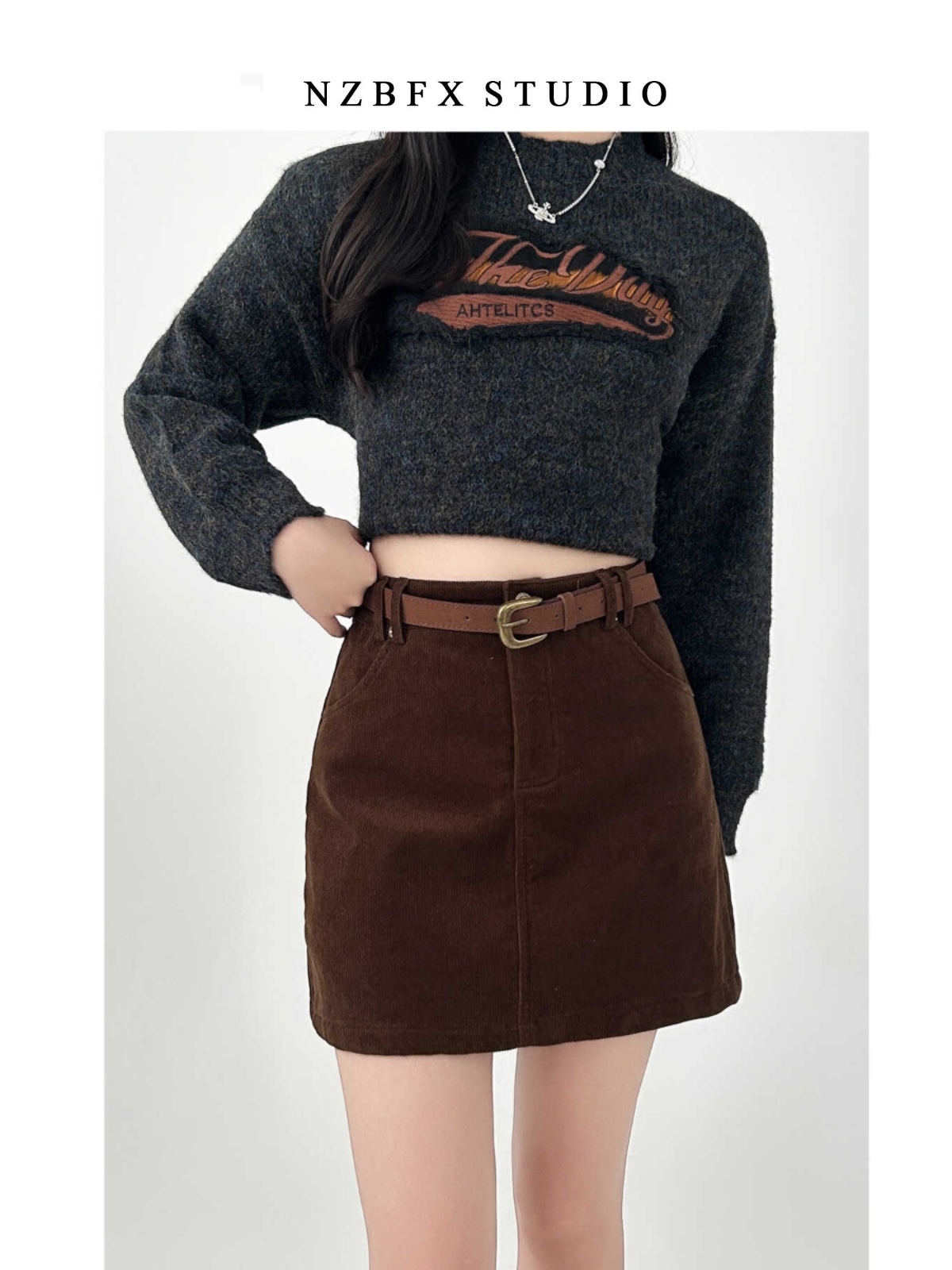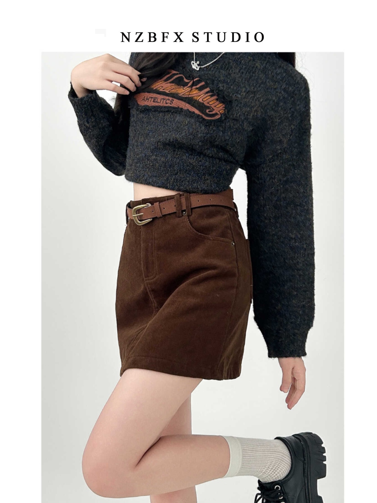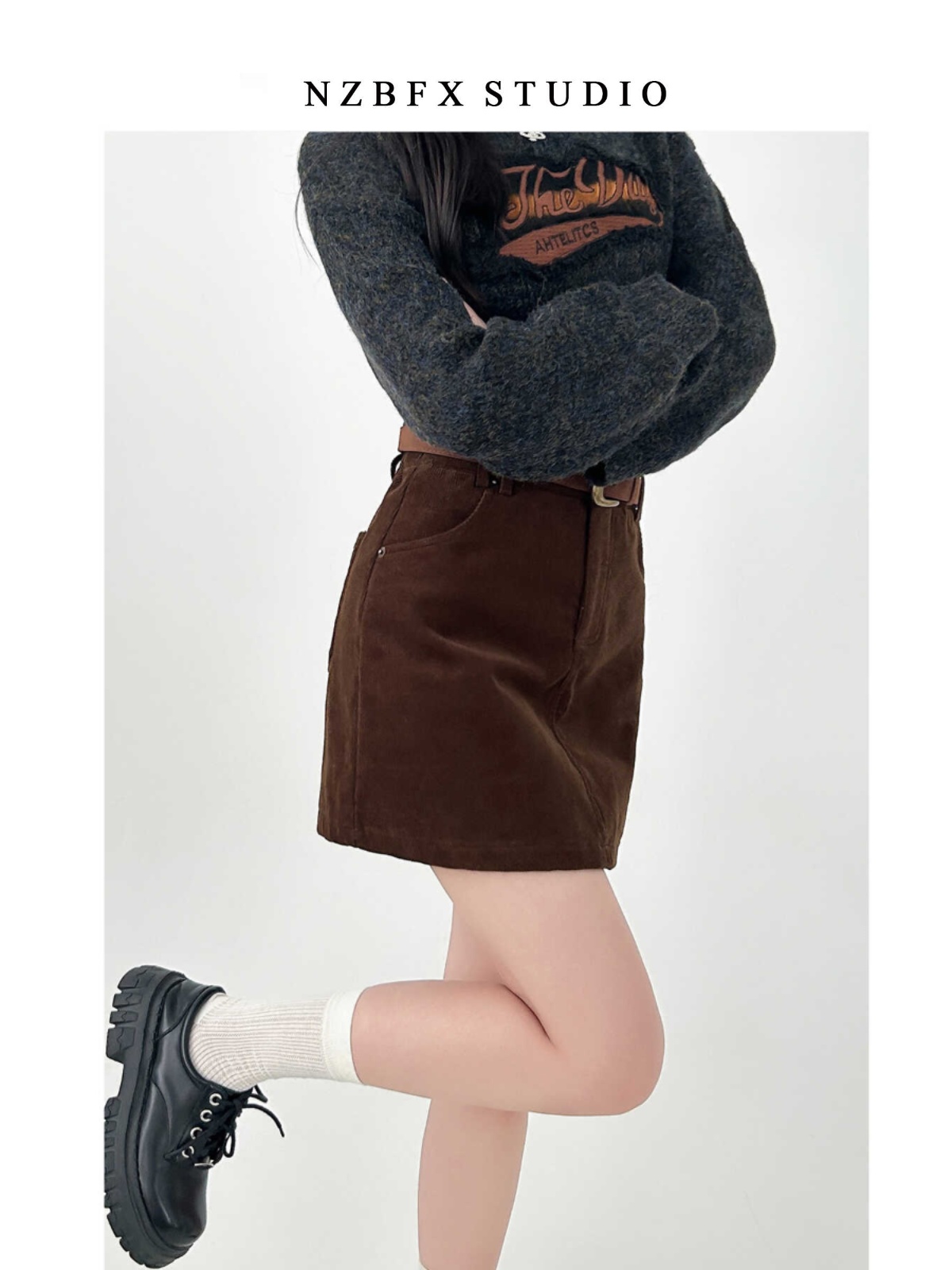 大碼胖mm半身裙女秋冬季咖色短款a字燈芯絨包臀復古裙子棕色短裙