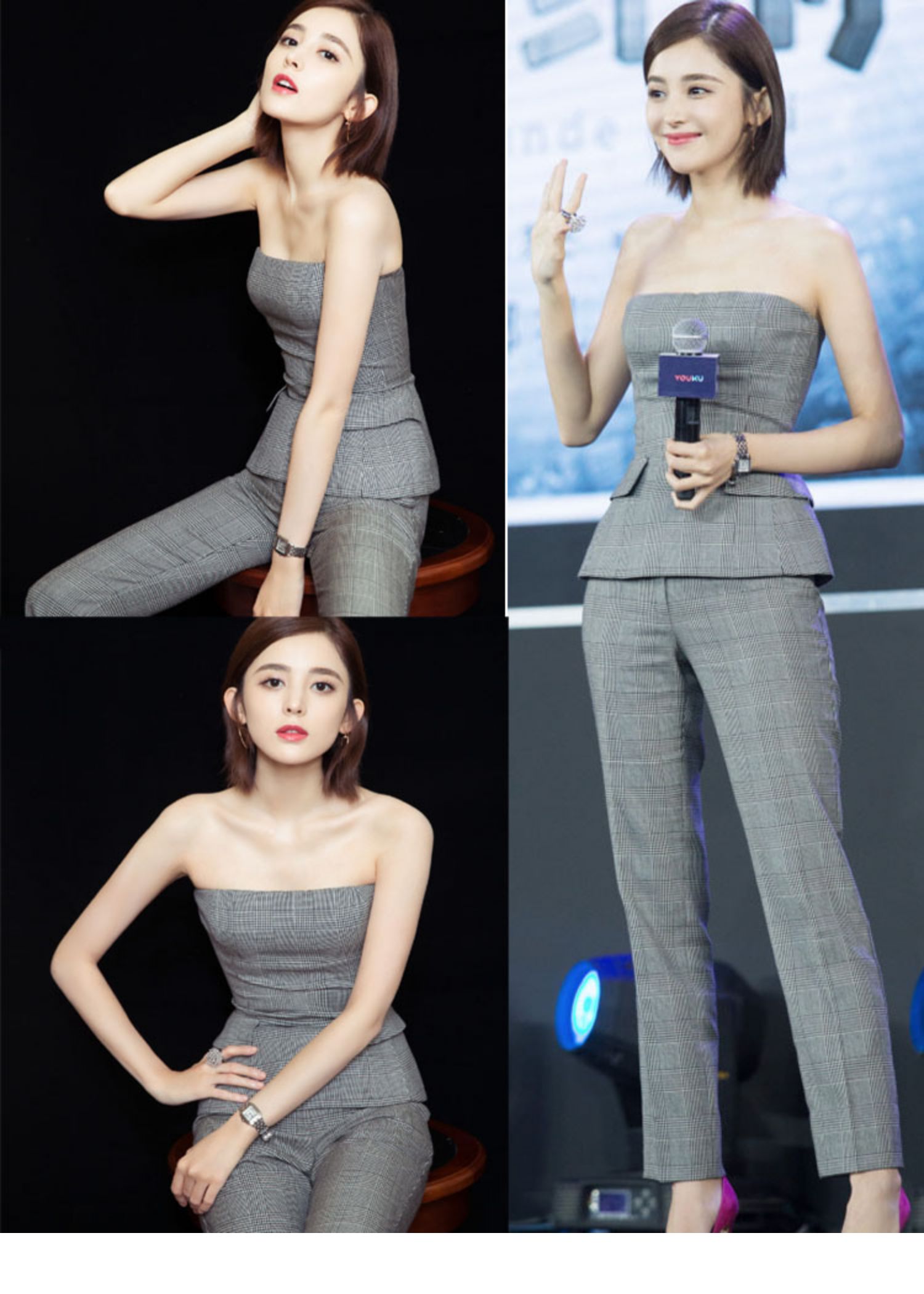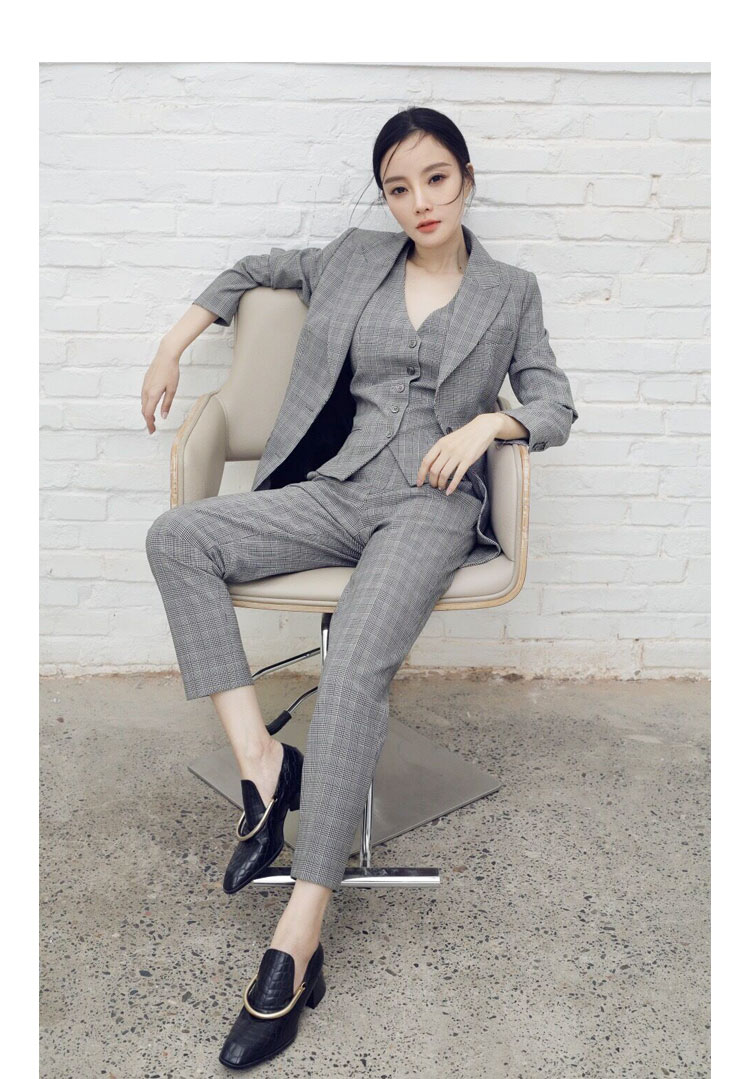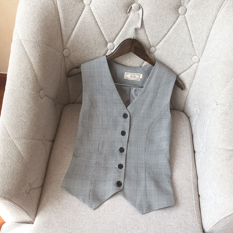 2025春季慼薇明星同款格子薄款小西裝套裝女英倫風復古抹胸三件套