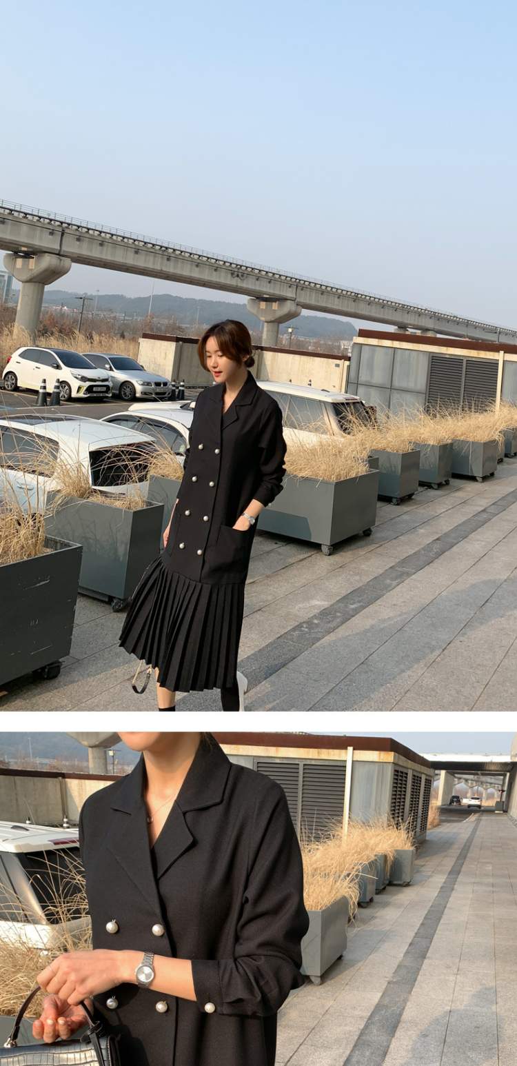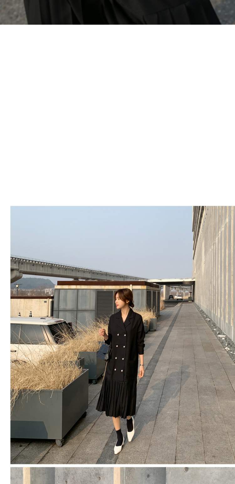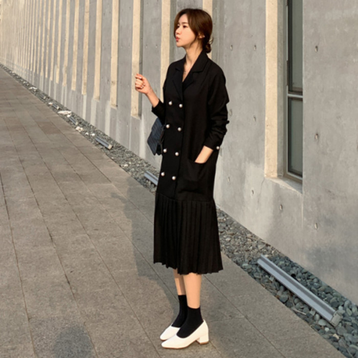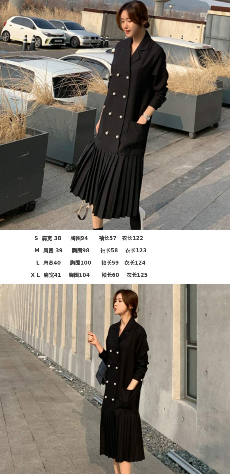 春秋裝西裝外套女中長款韓版寬松大碼雙排釦時尚壓皺拼接連衣裙潮