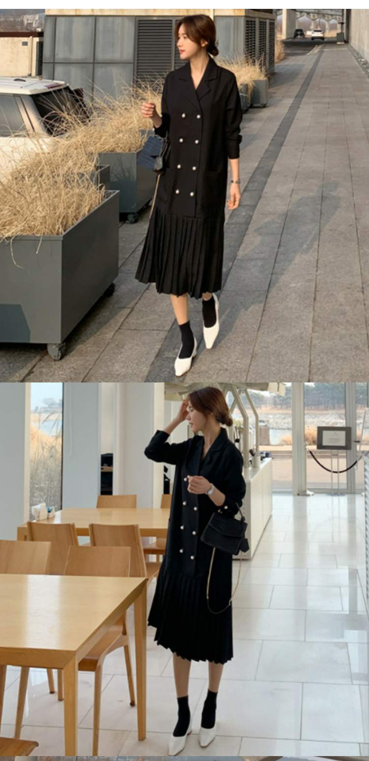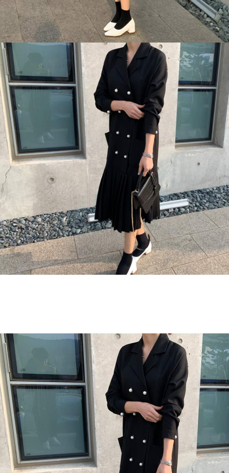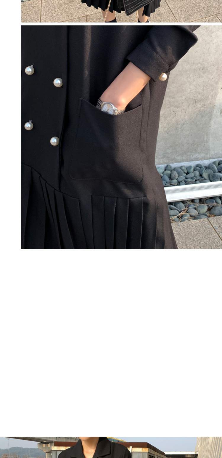 春秋裝西裝外套女中長款韓版寬松大碼雙排釦時尚壓皺拼接連衣裙潮