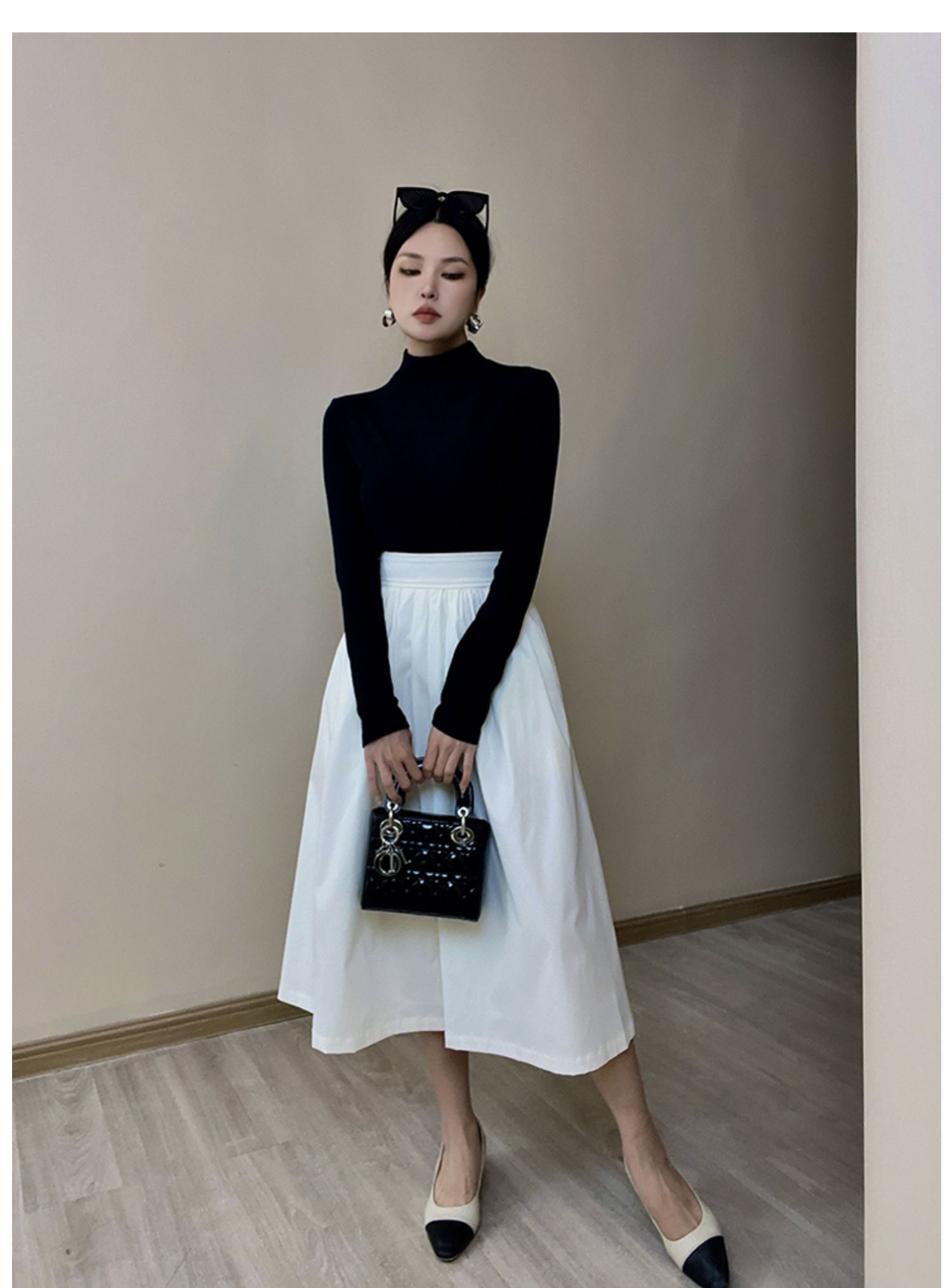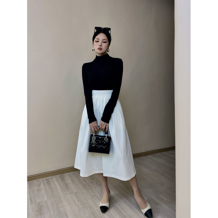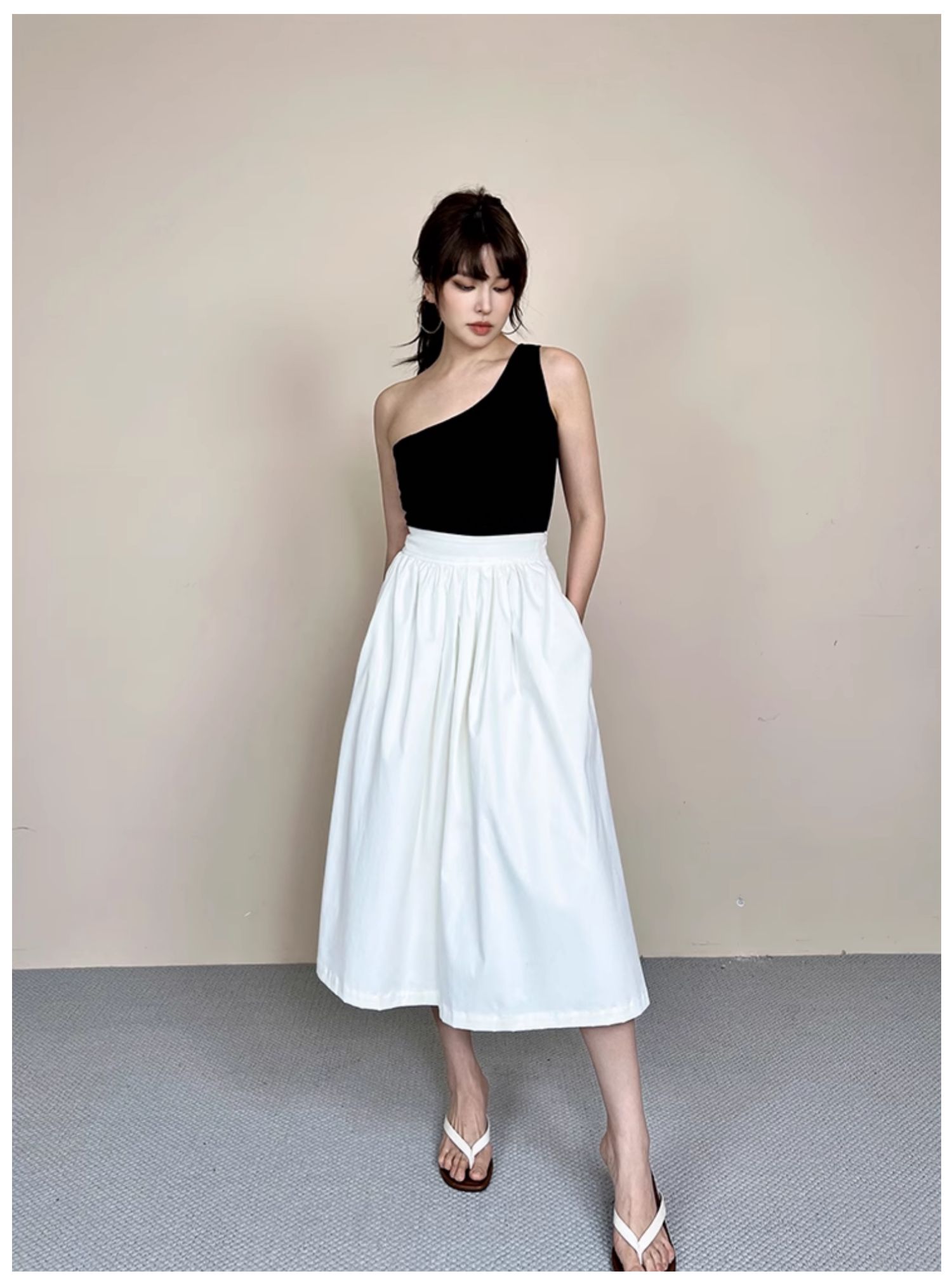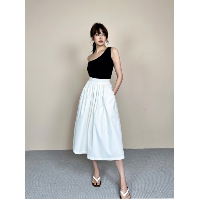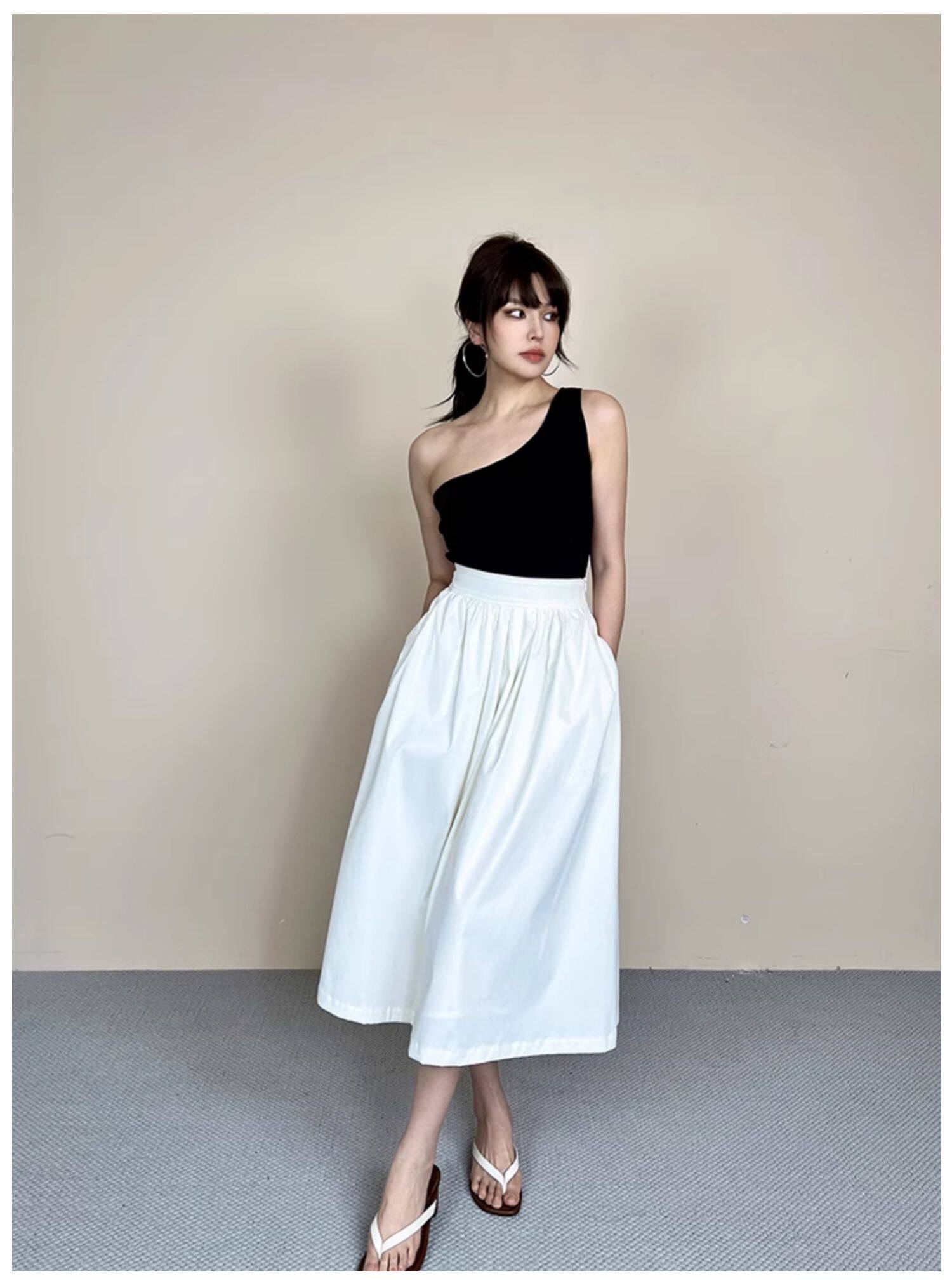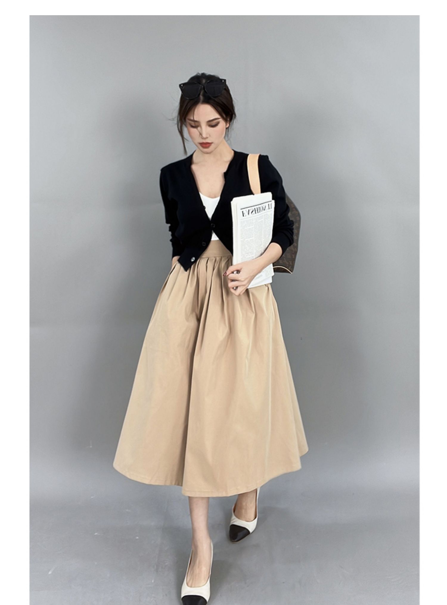 米米小姐2025夏季新品薄款中長款高腰黑色復古百褶a字半身裙顯瘦