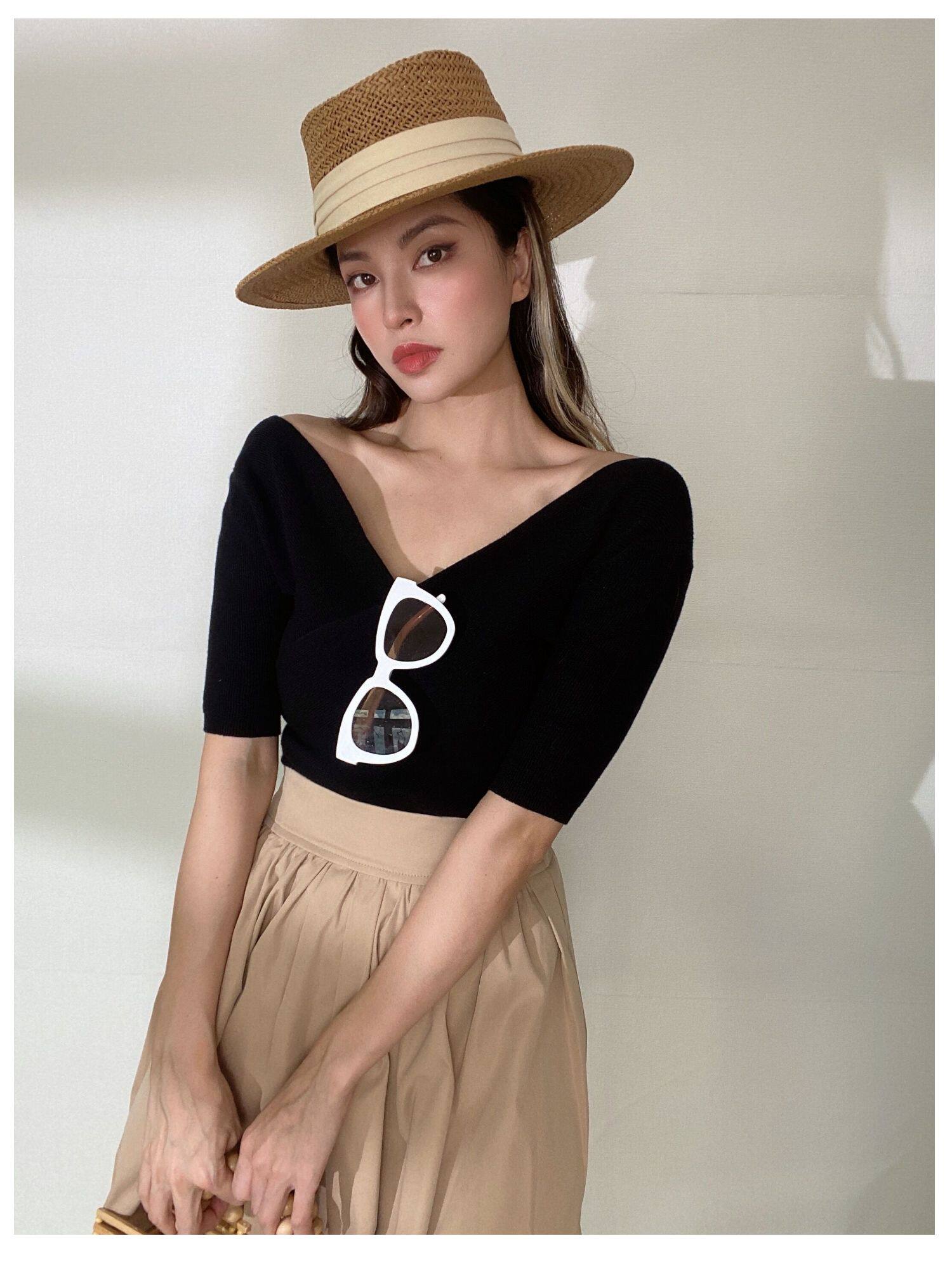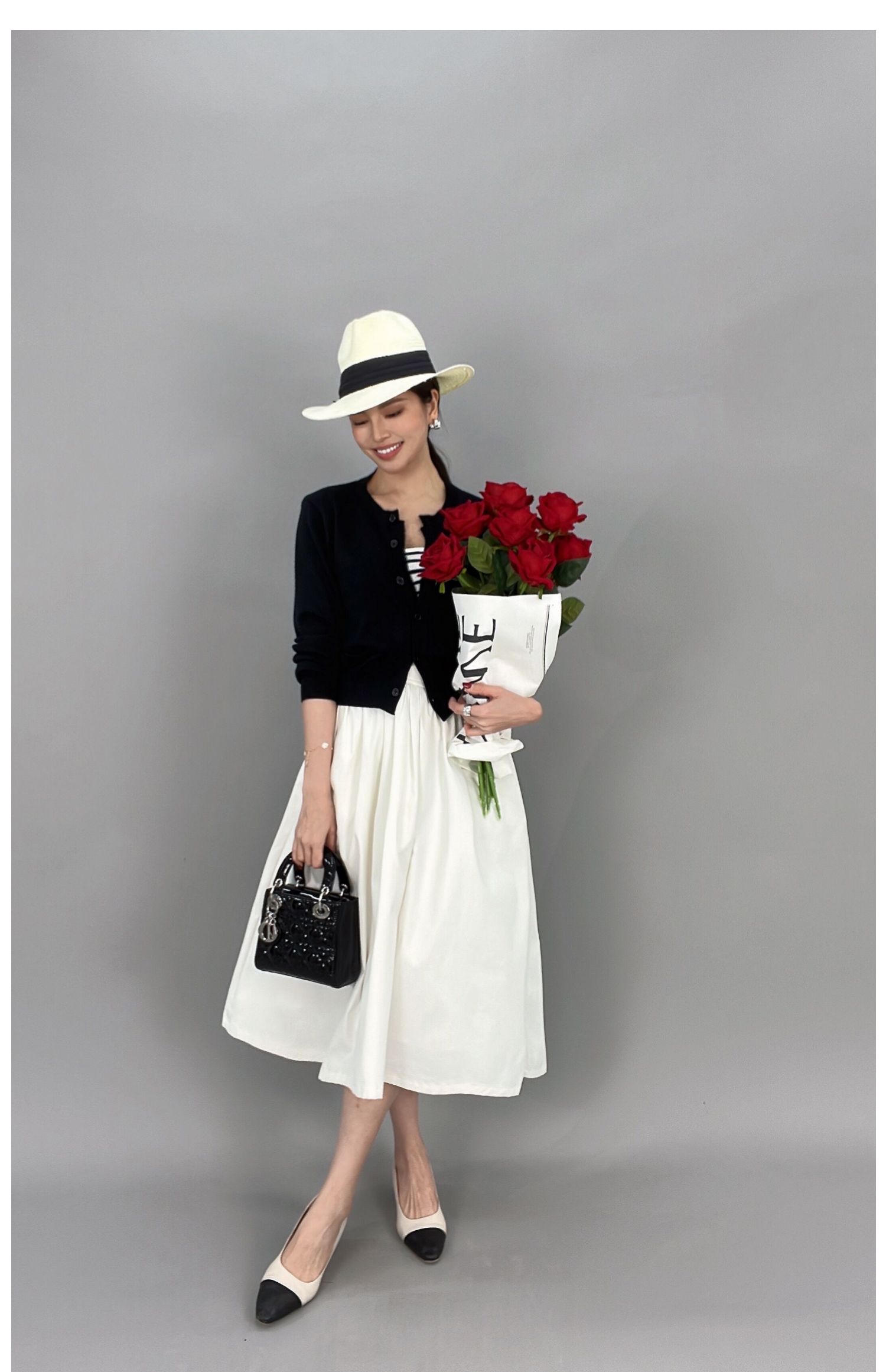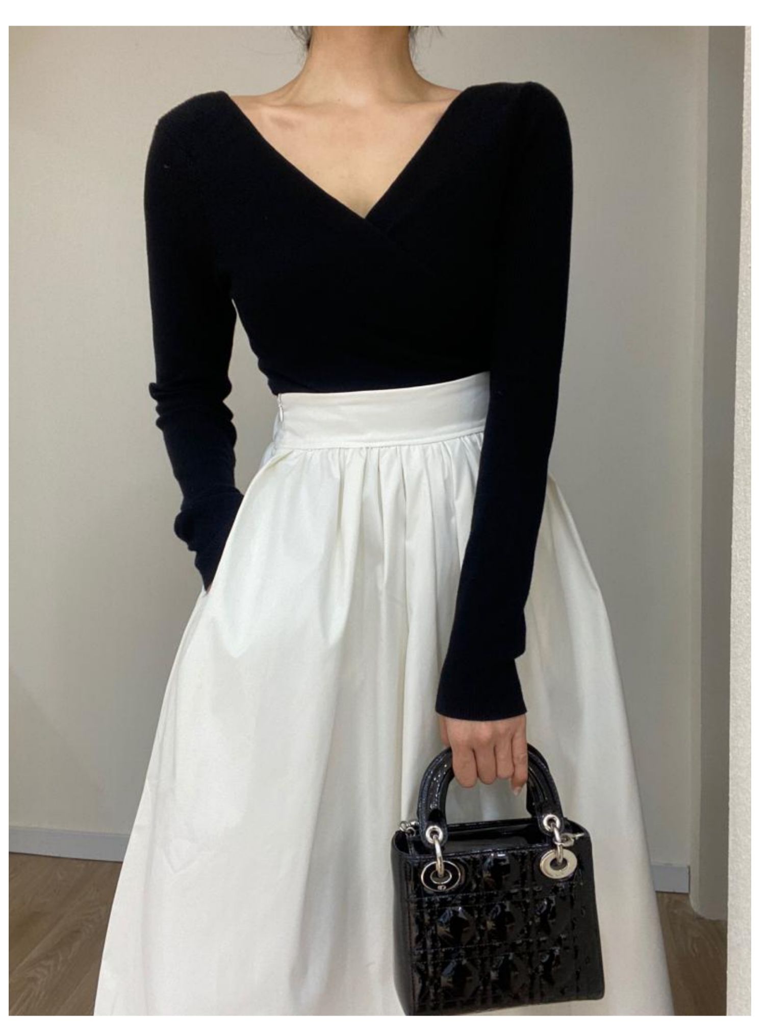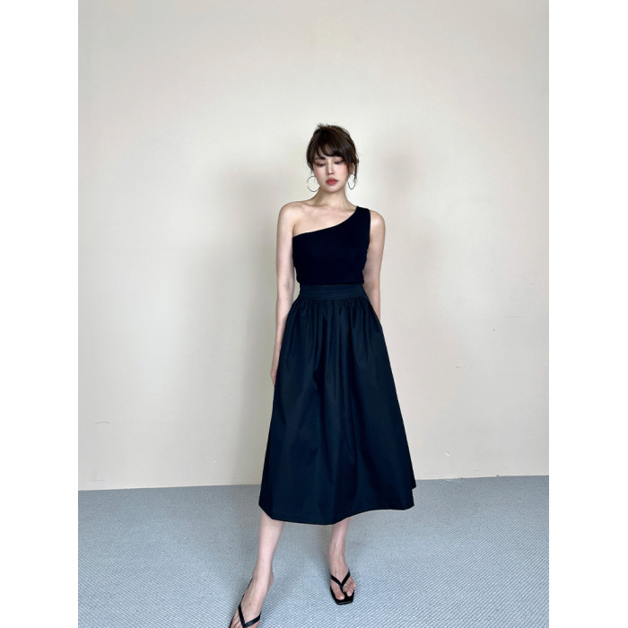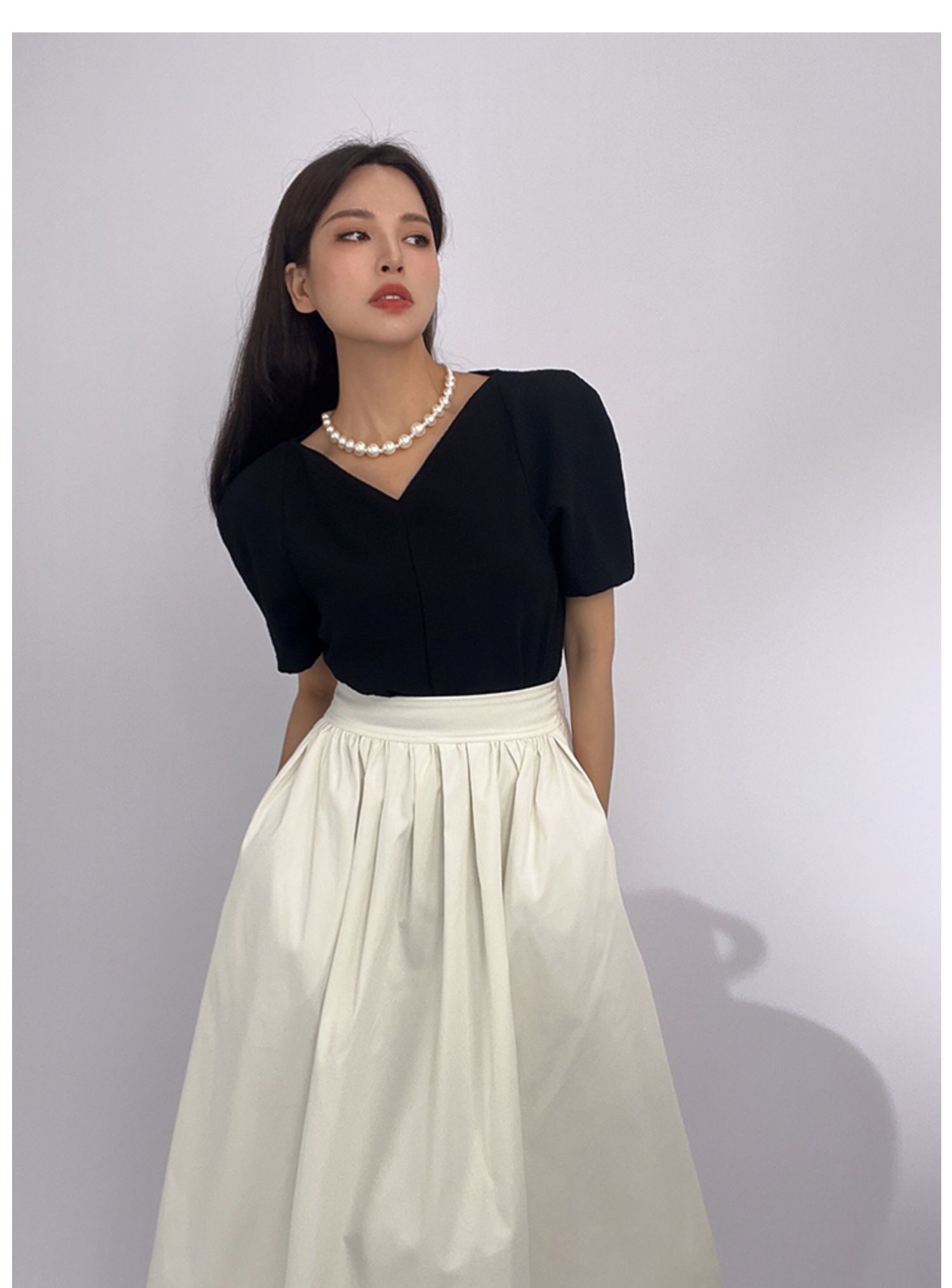 米米小姐2025夏季新品薄款中長款高腰黑色復古百褶a字半身裙顯瘦