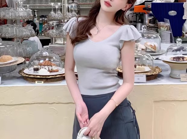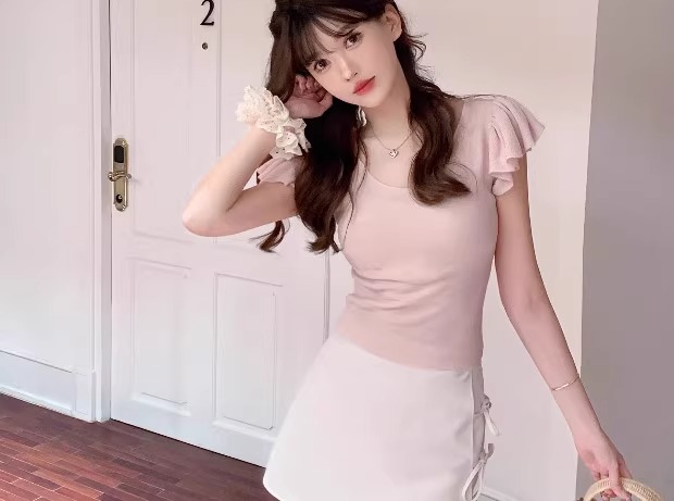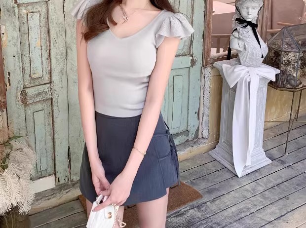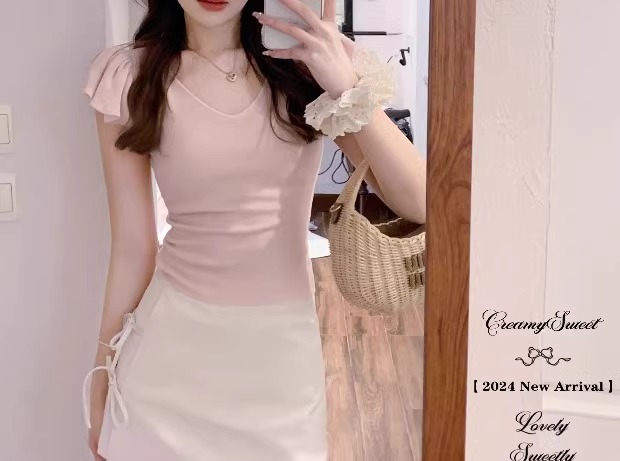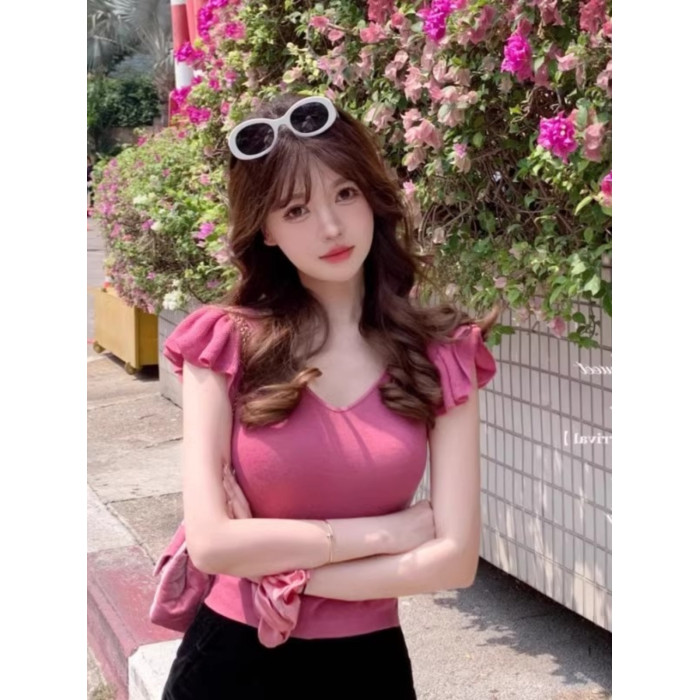 小飛袖薄款短袖針織衫T恤女2025夏季新款修身顯瘦百搭V領打底上衣