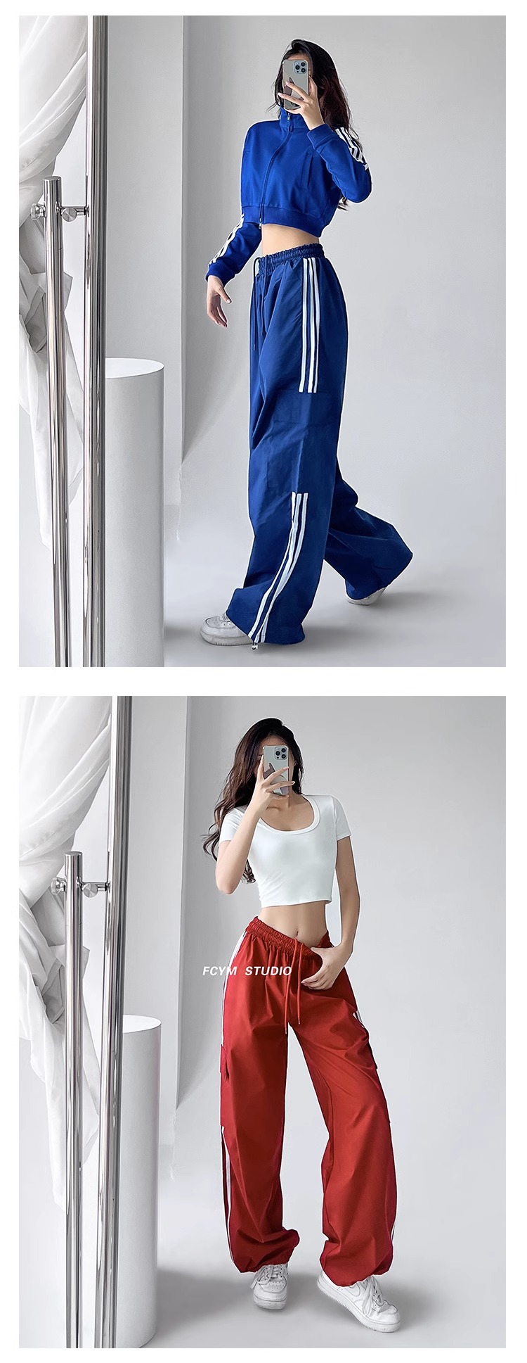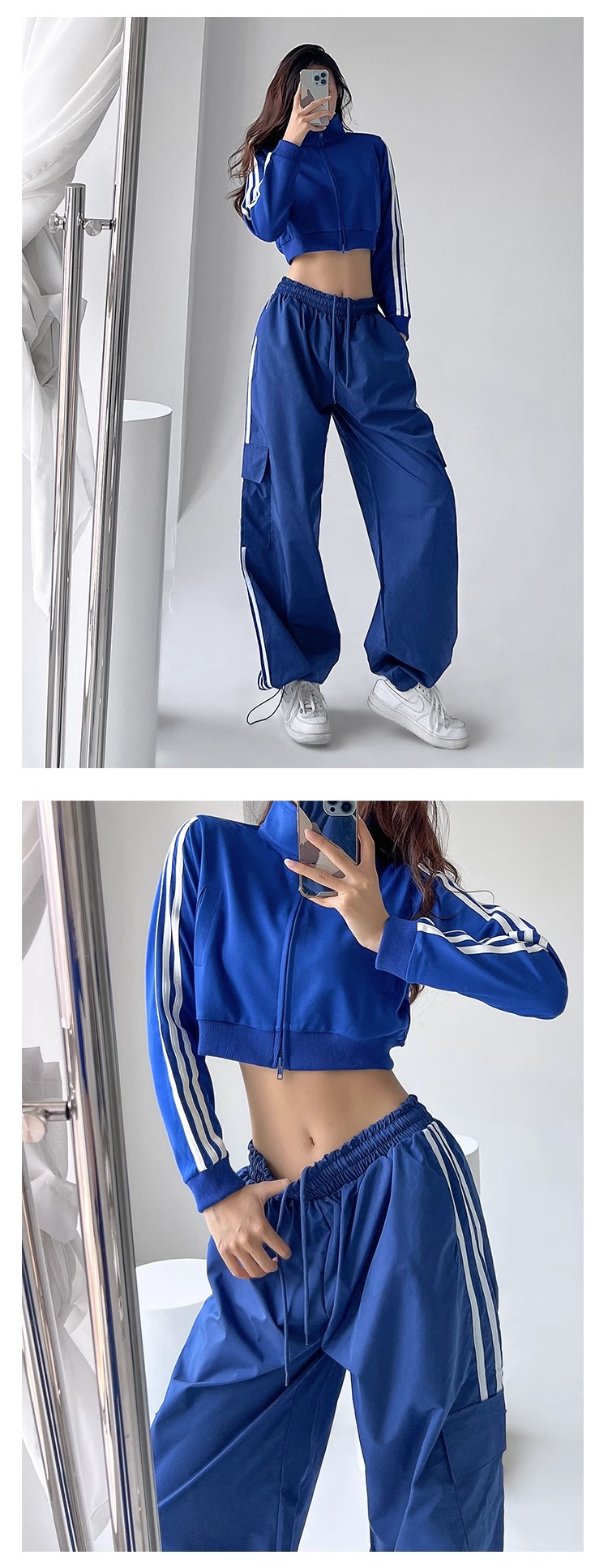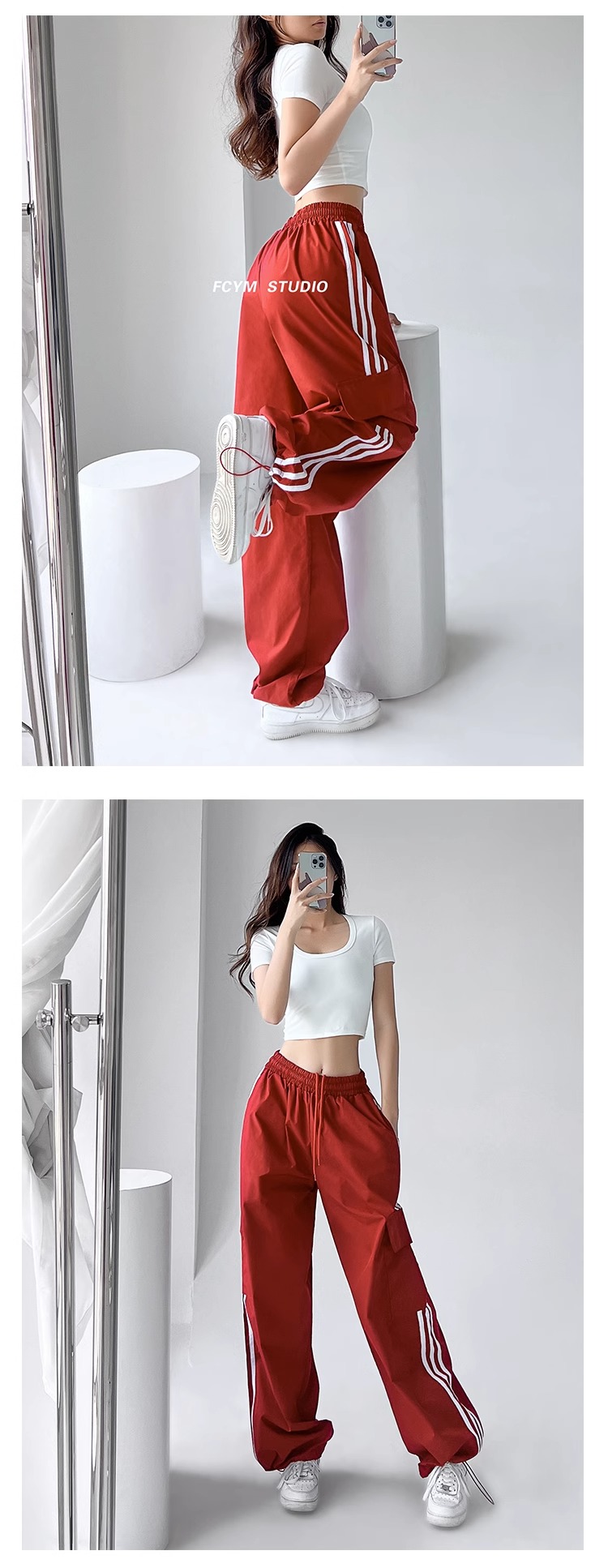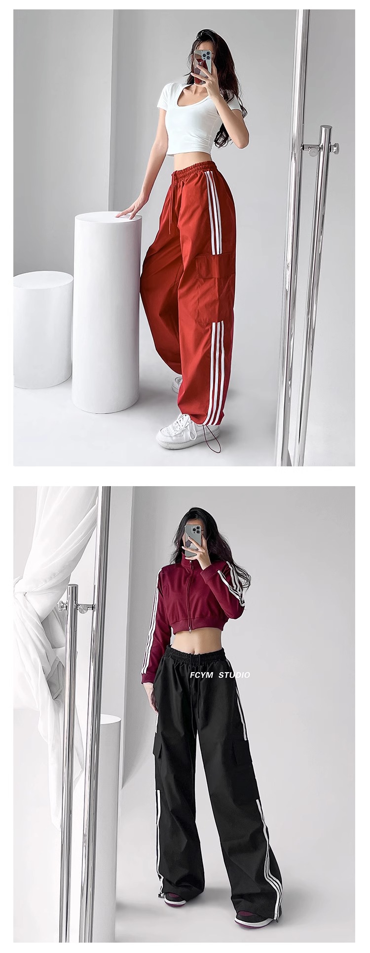 美式工裝褲女小個子jazz舞復古潮牌直筒濶腿休閒褲寬松條紋運動褲