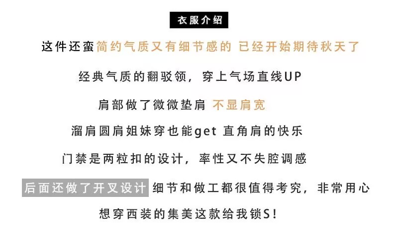 | 後開衩類型 | 單開衩 |