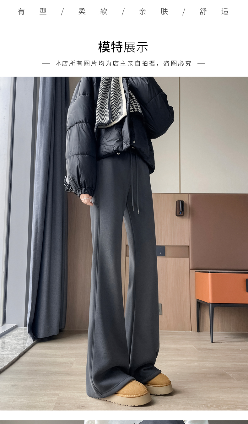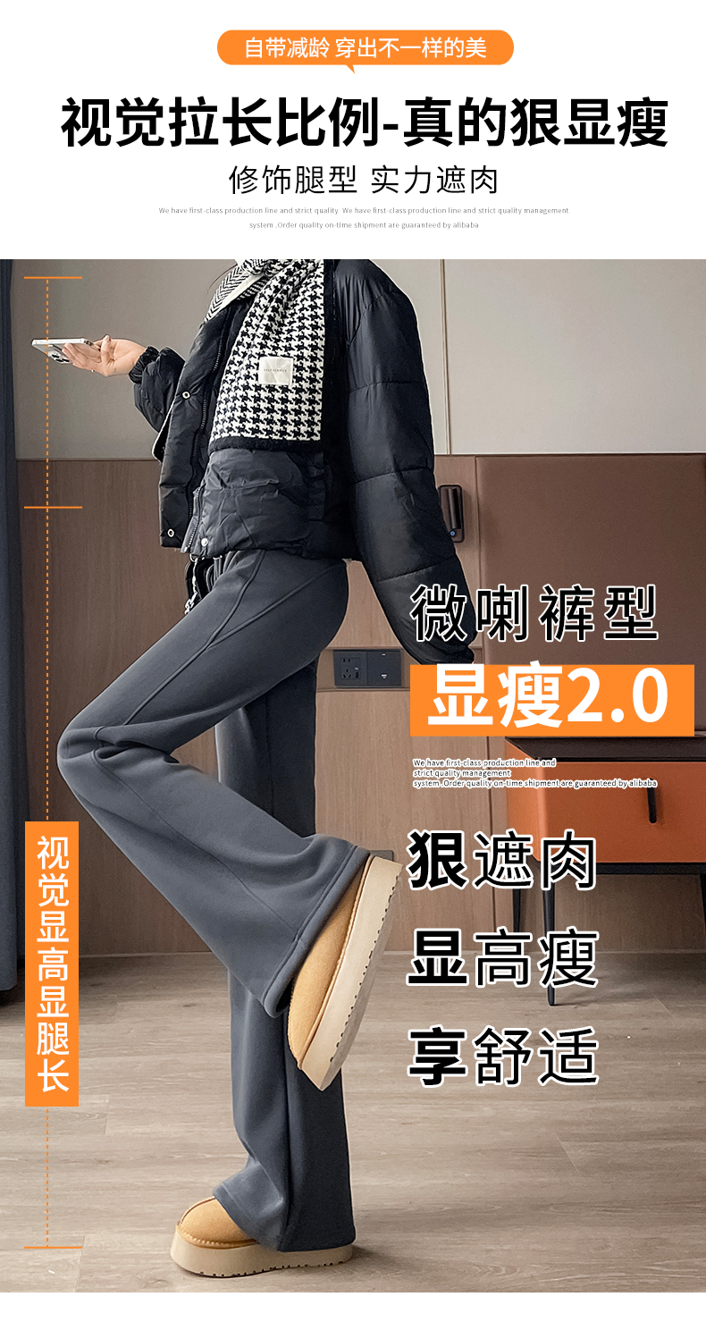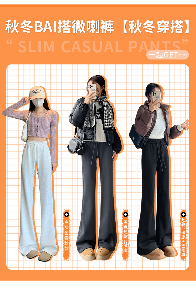 加絨微喇叭褲女2025新款秋冬季小個子運動褲春秋灰色衛褲休閒褲子