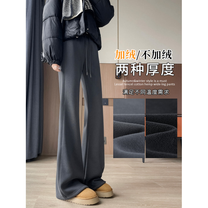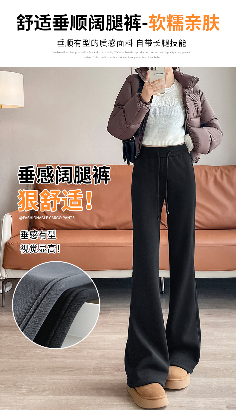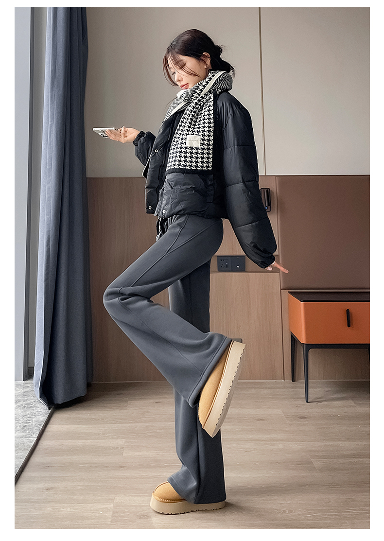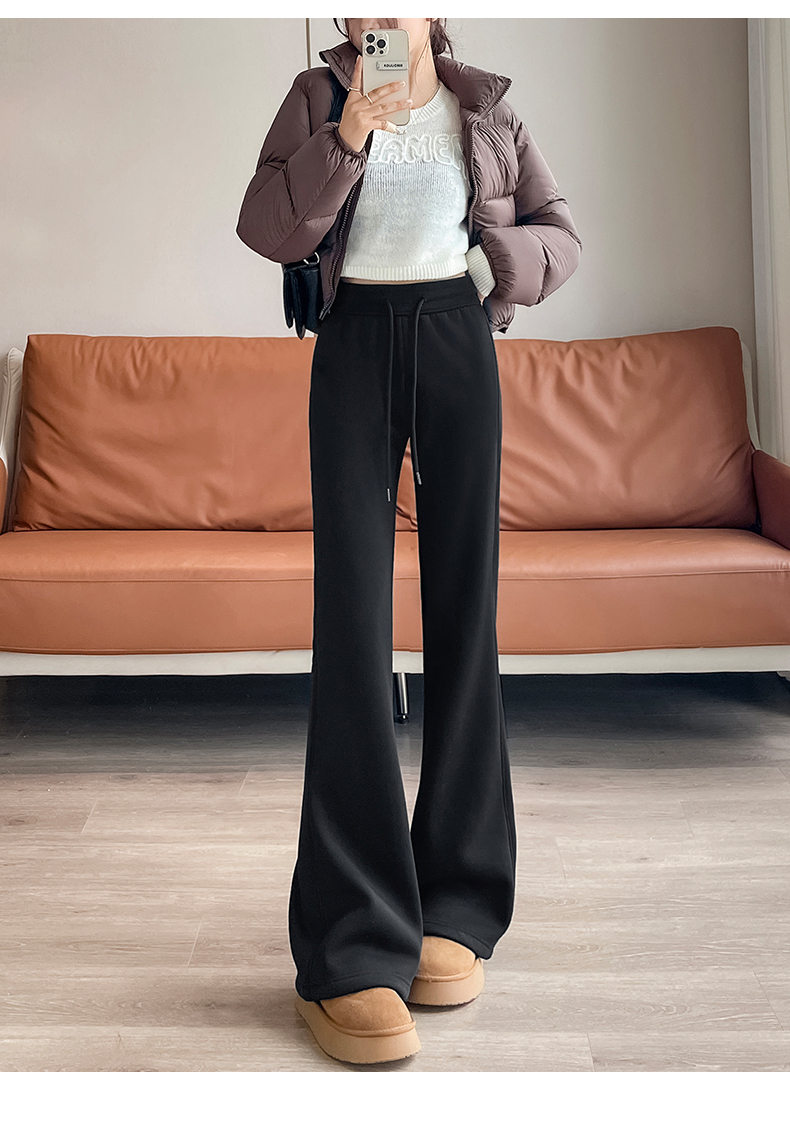 加絨微喇叭褲女2025新款秋冬季小個子運動褲春秋灰色衛褲休閒褲子