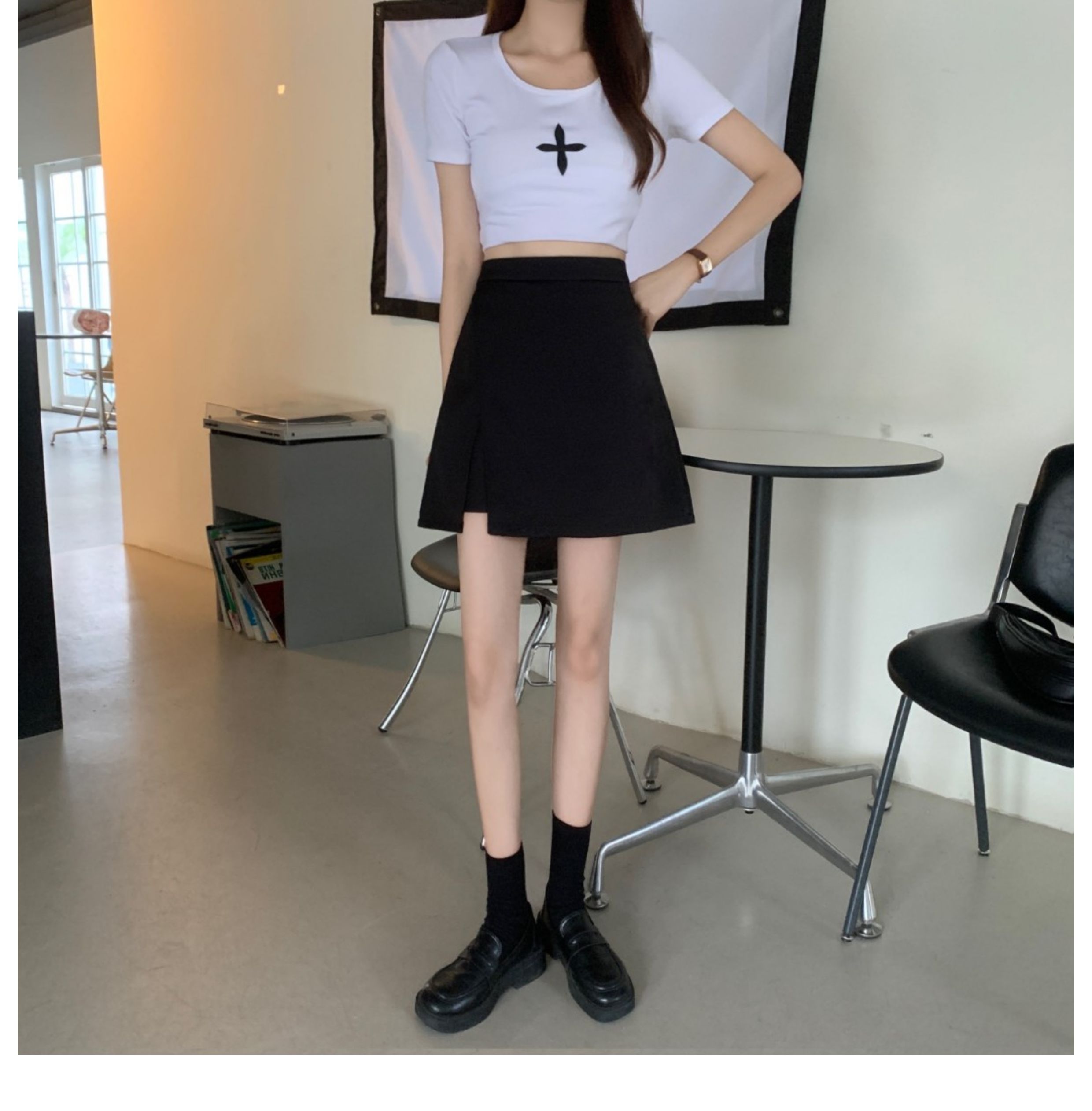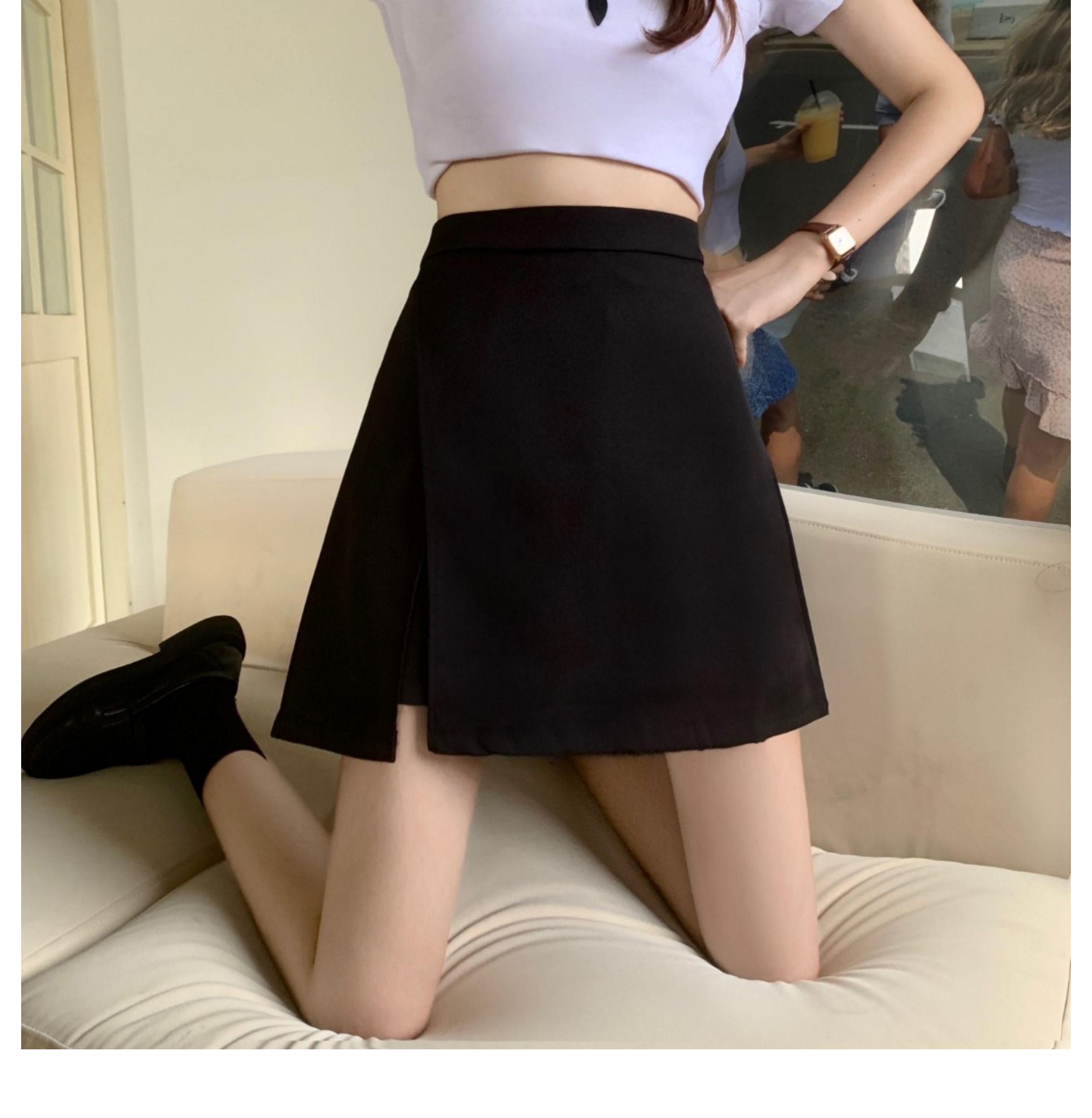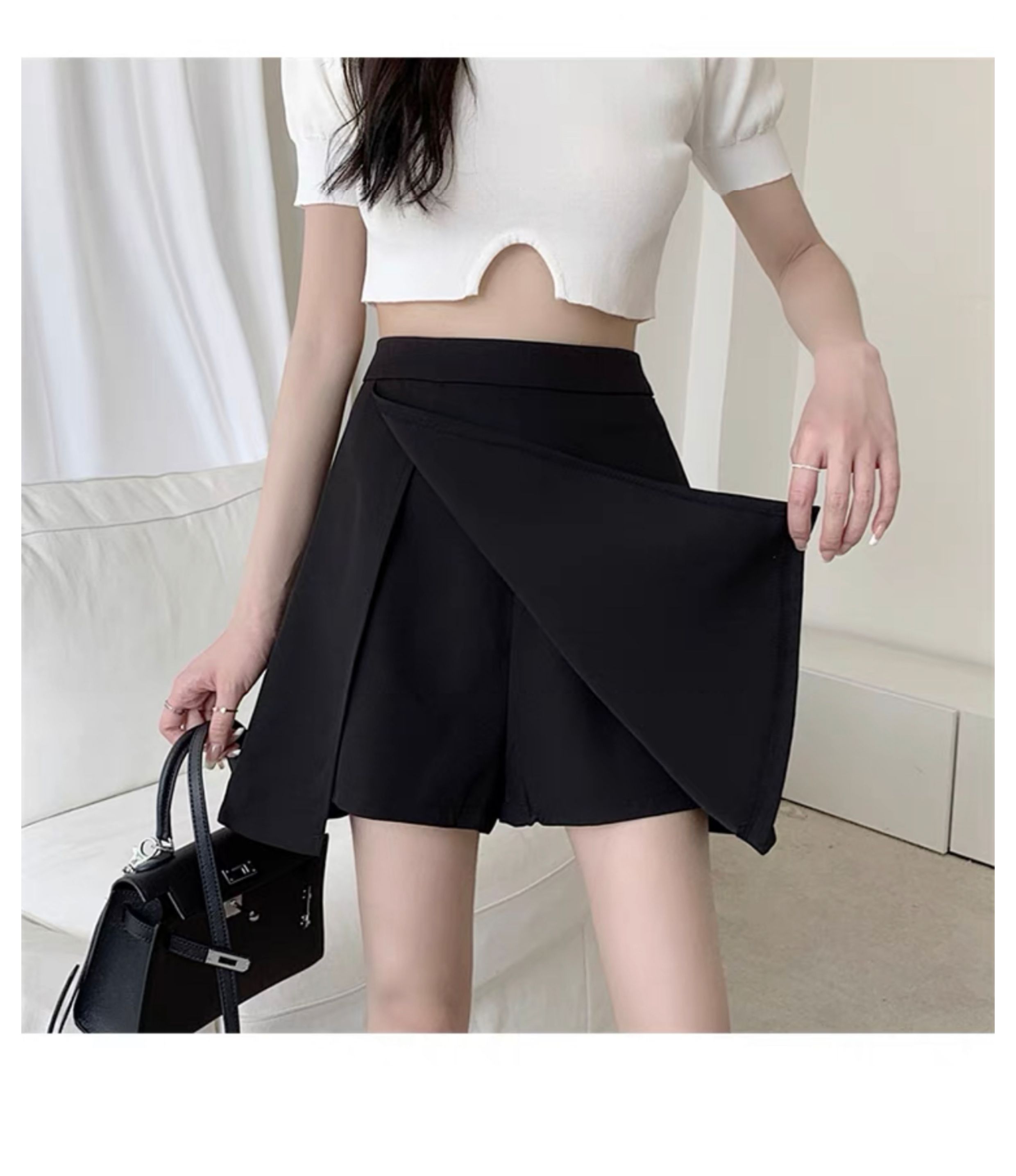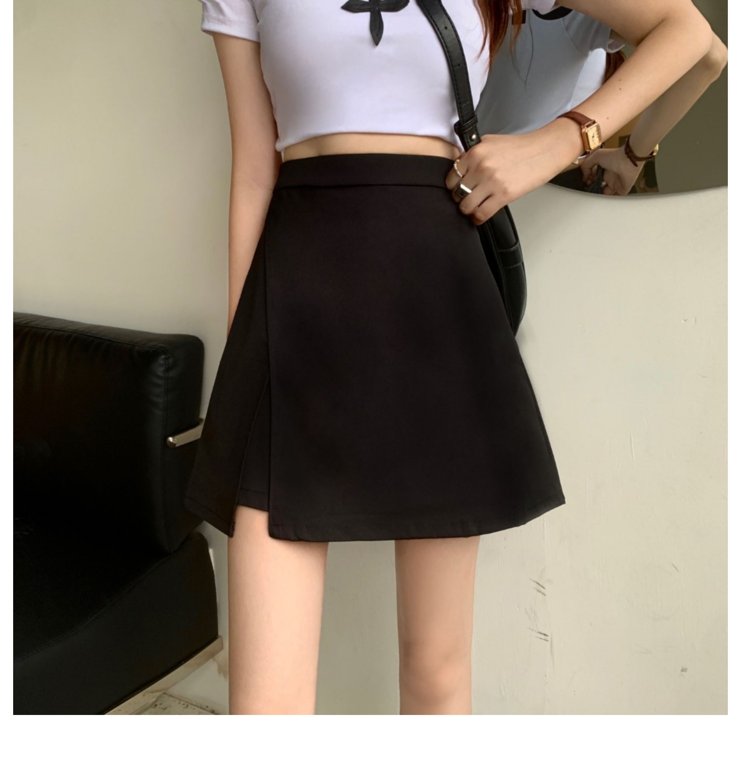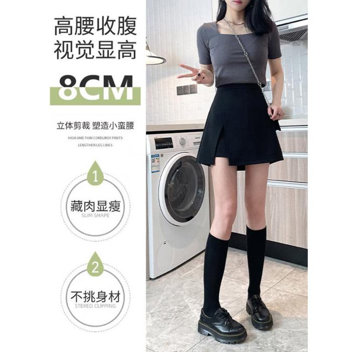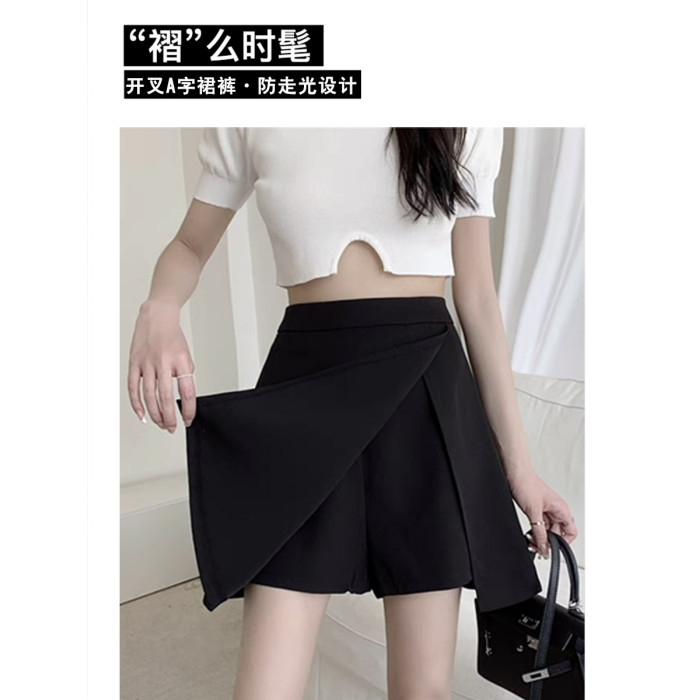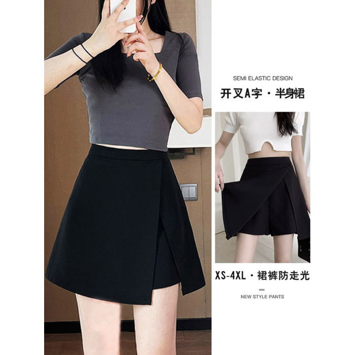 氣質大碼胖mm高腰顯瘦遮肉小個子黑色半身裙女夏開叉A字裙褲短裙