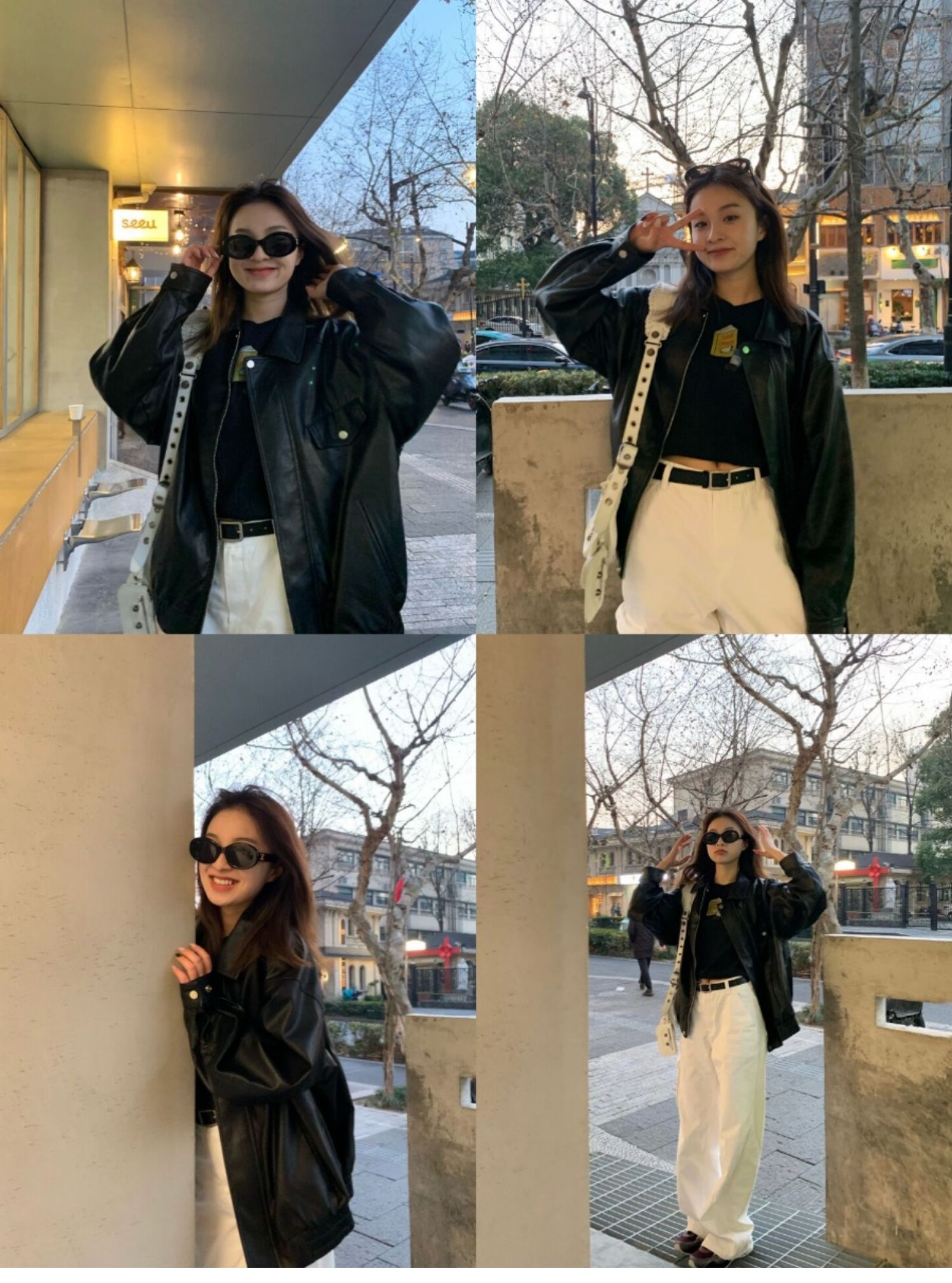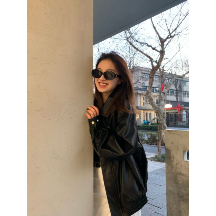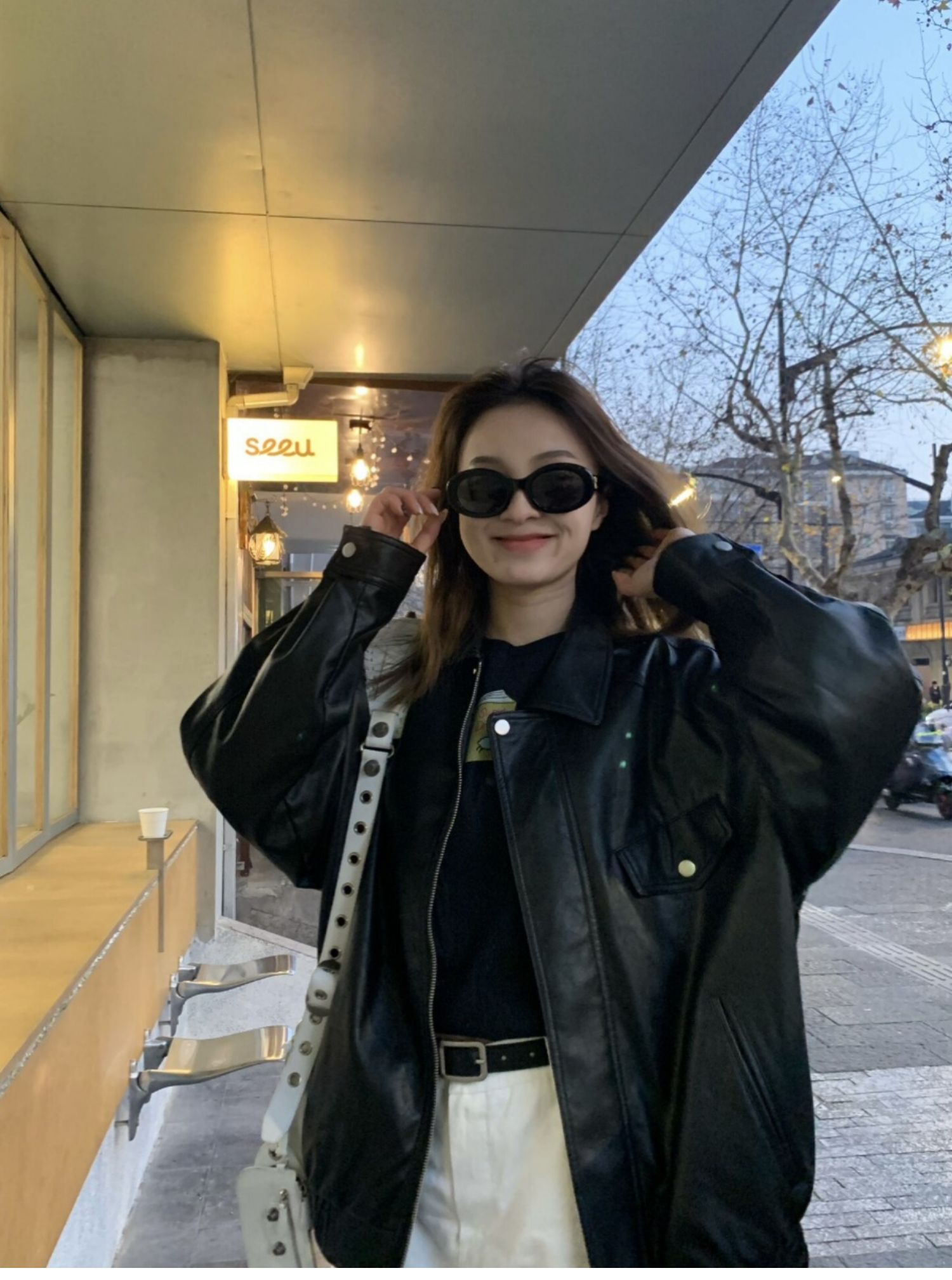2025新款春秋拉鍊超火pu皮衣外套女短款寬松酷颯風美式復古機車服