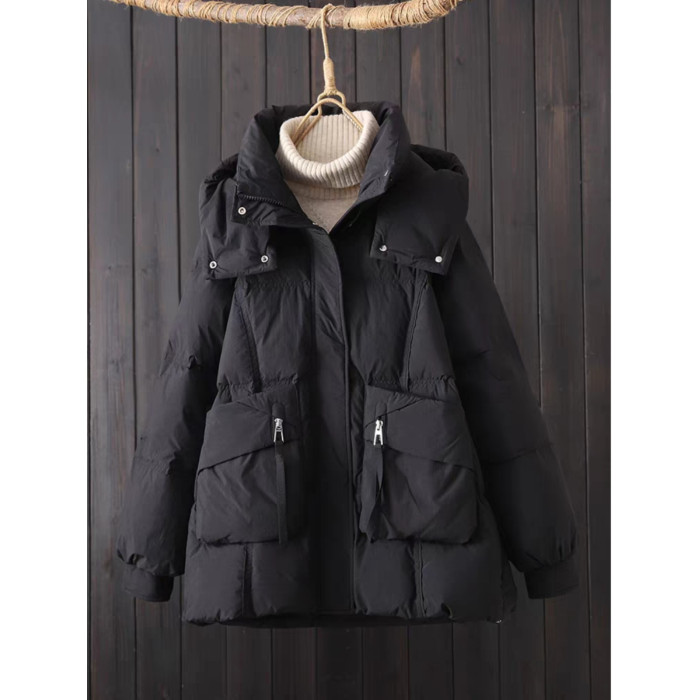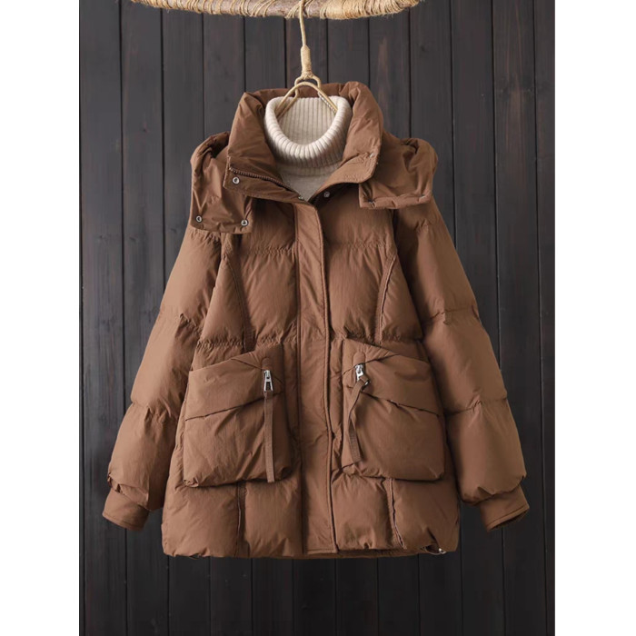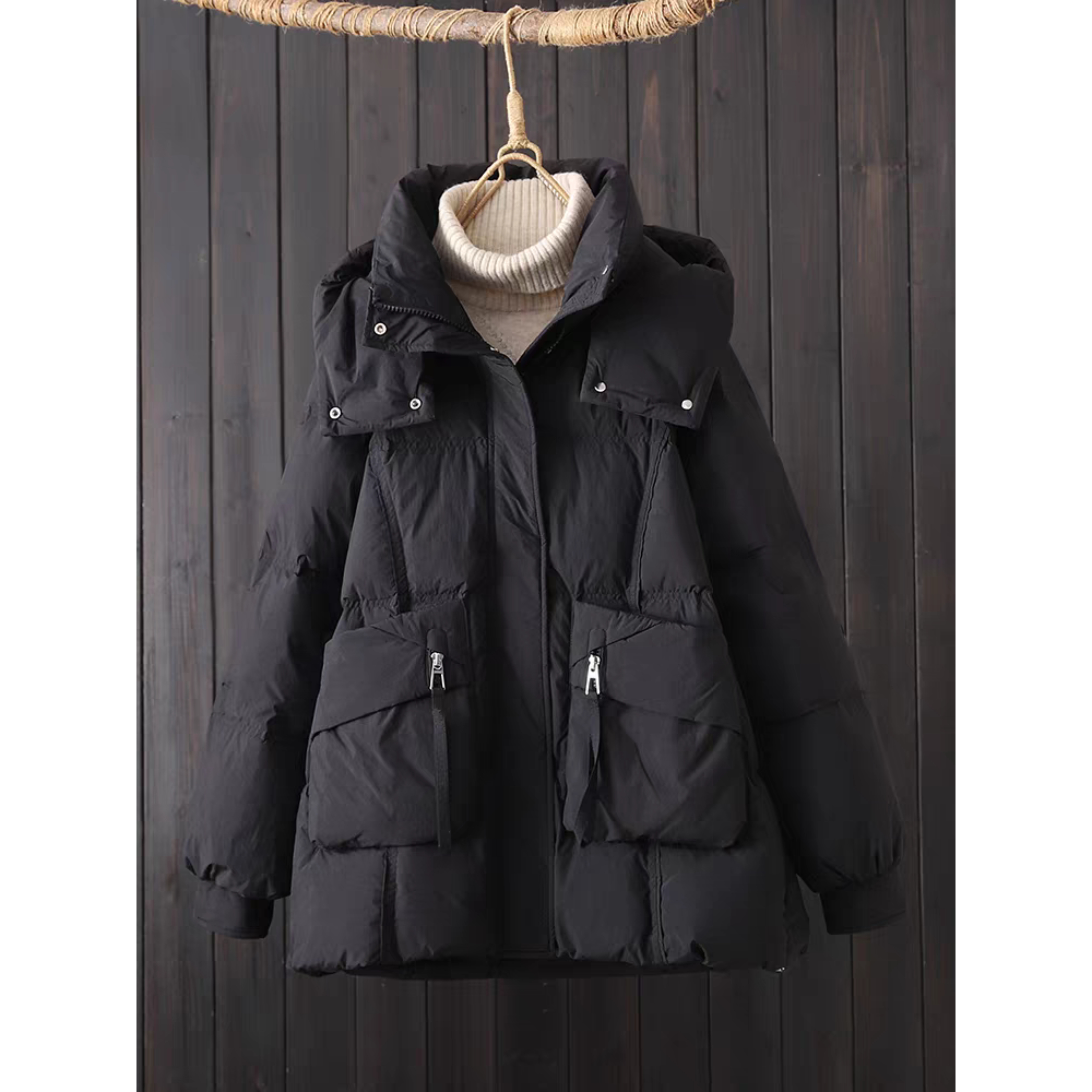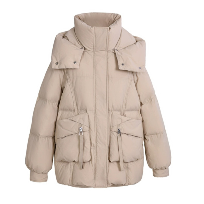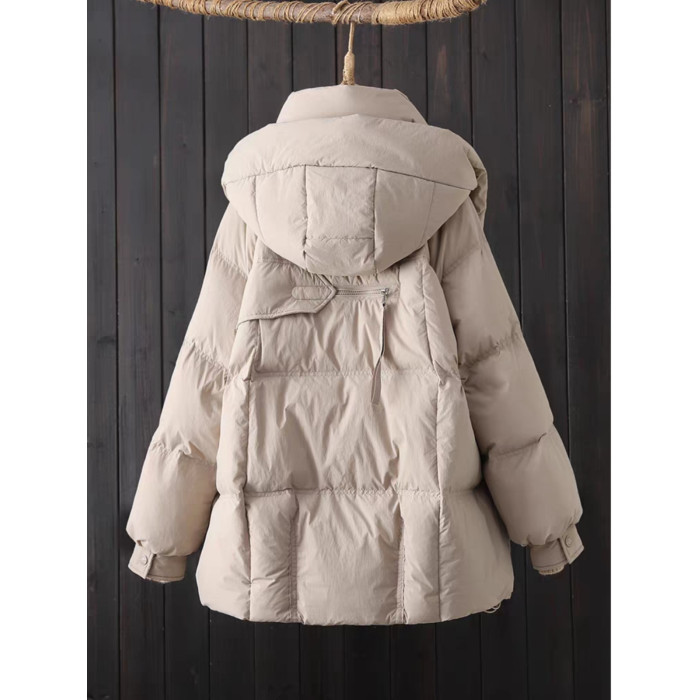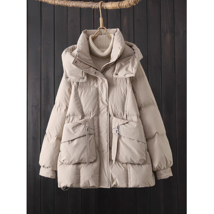 2025秋冬新款韓版寬松連帽羽絨服女中長款洋氣百搭保暖白鴨絨外套