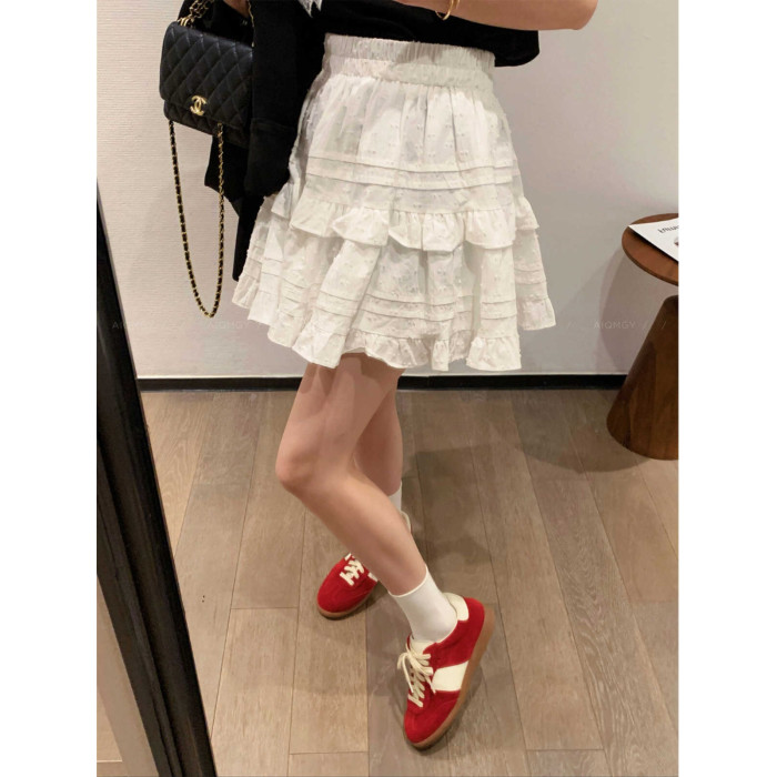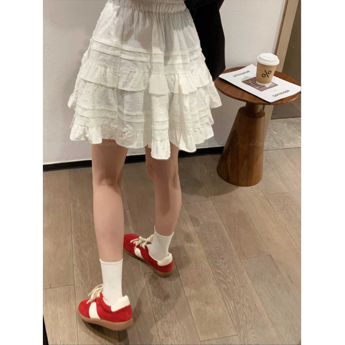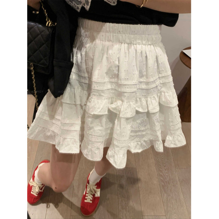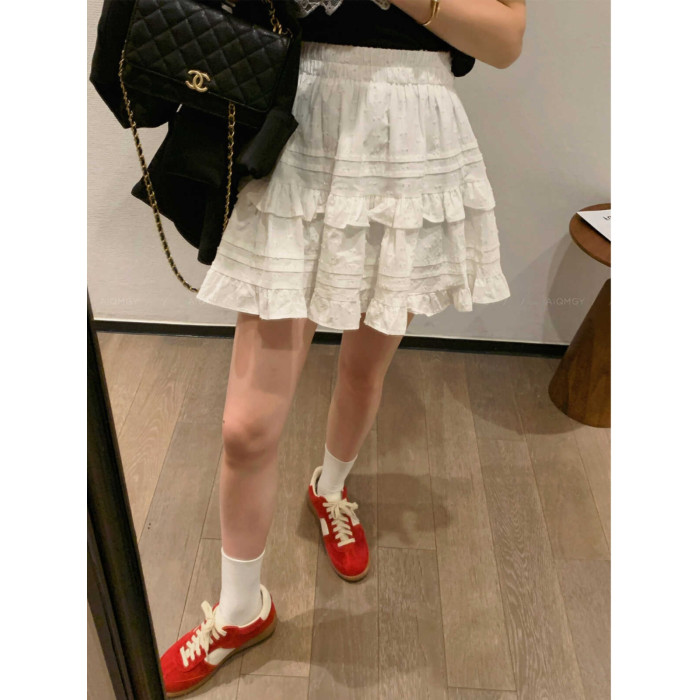 白色蛋糕裙半身裙女夏季新款大碼胖mm松緊腰高腰顯瘦A字裙短裙子