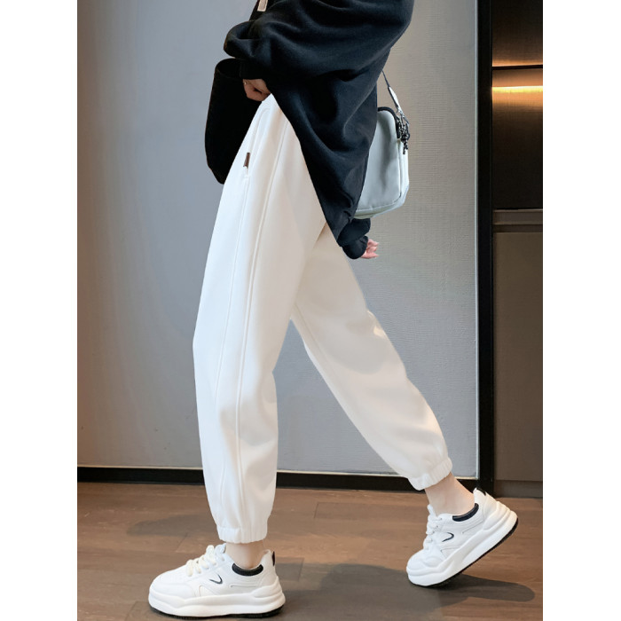 白色運動褲女春秋顯瘦150小個子休閒褲子女2025新款冬季加絨衛褲