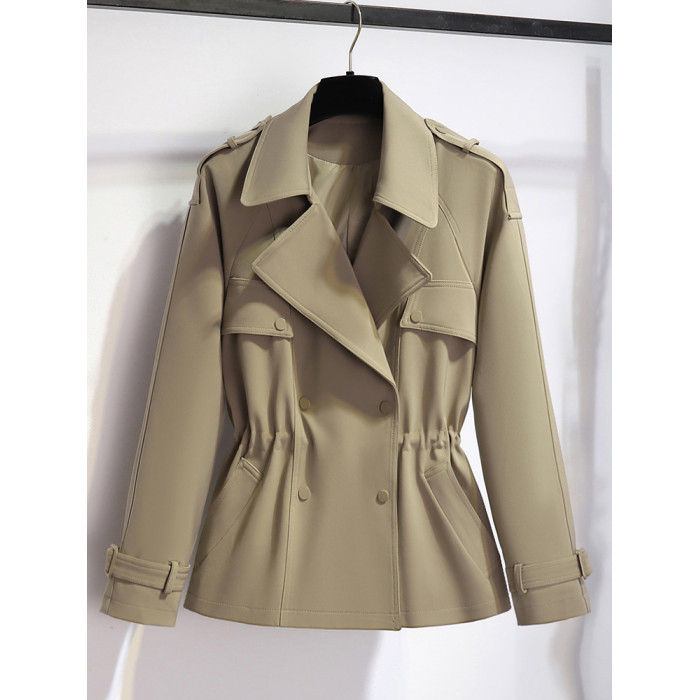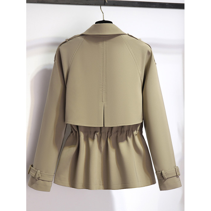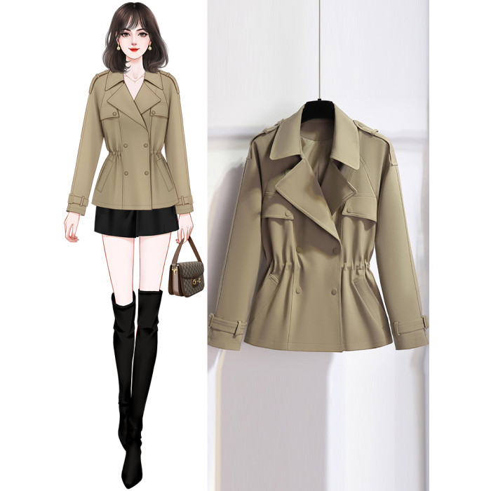 英倫風短款風衣外套女小個子2025新款春秋季高級感卡其色抽繩收腰