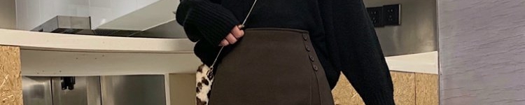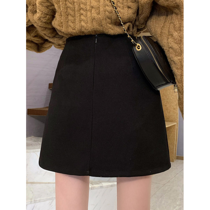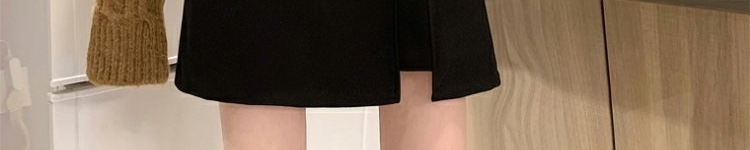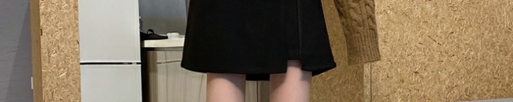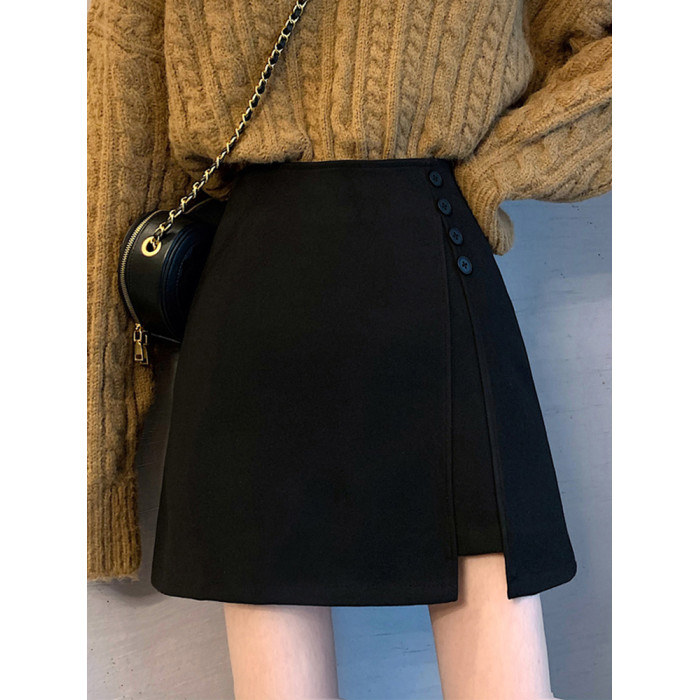 梨形身材大碼胖mm黑色毛呢半身裙女高腰a字開叉短裙顯瘦包臀裙秋