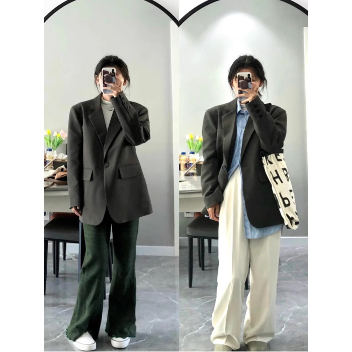 灰色高級感小西裝女2025春秋新款炸街設計感寬松休閒氣質西服外套
