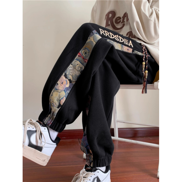 2025新款運動褲子女生大碼寬松束腳初中高中學生秋冬加絨休閒衛褲