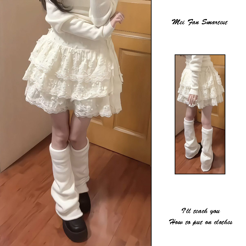 辣妹純欲蕾絲邊蛋糕裙女秋季甜美高腰設計感小個子奶油蓬蓬半身裙