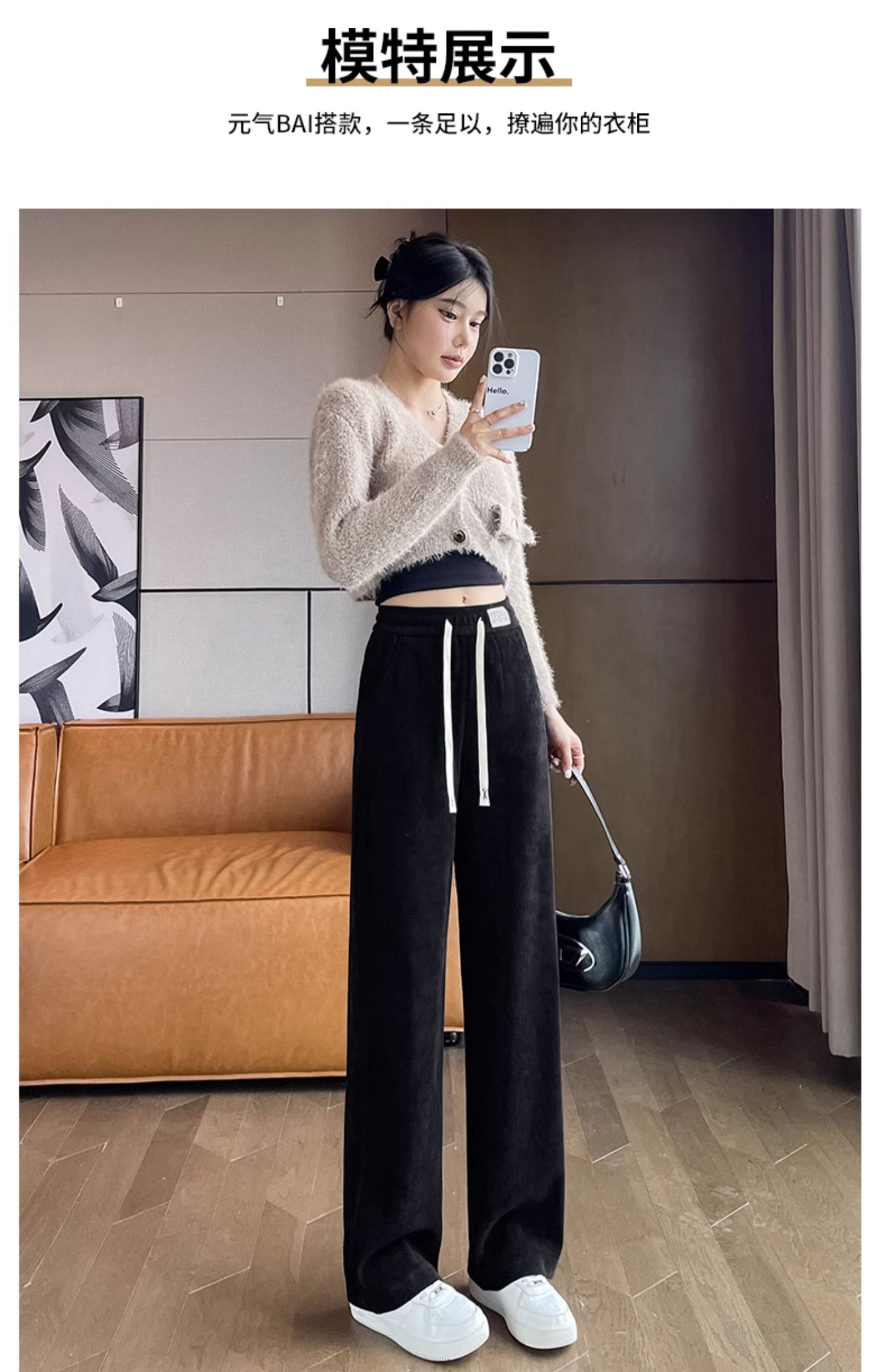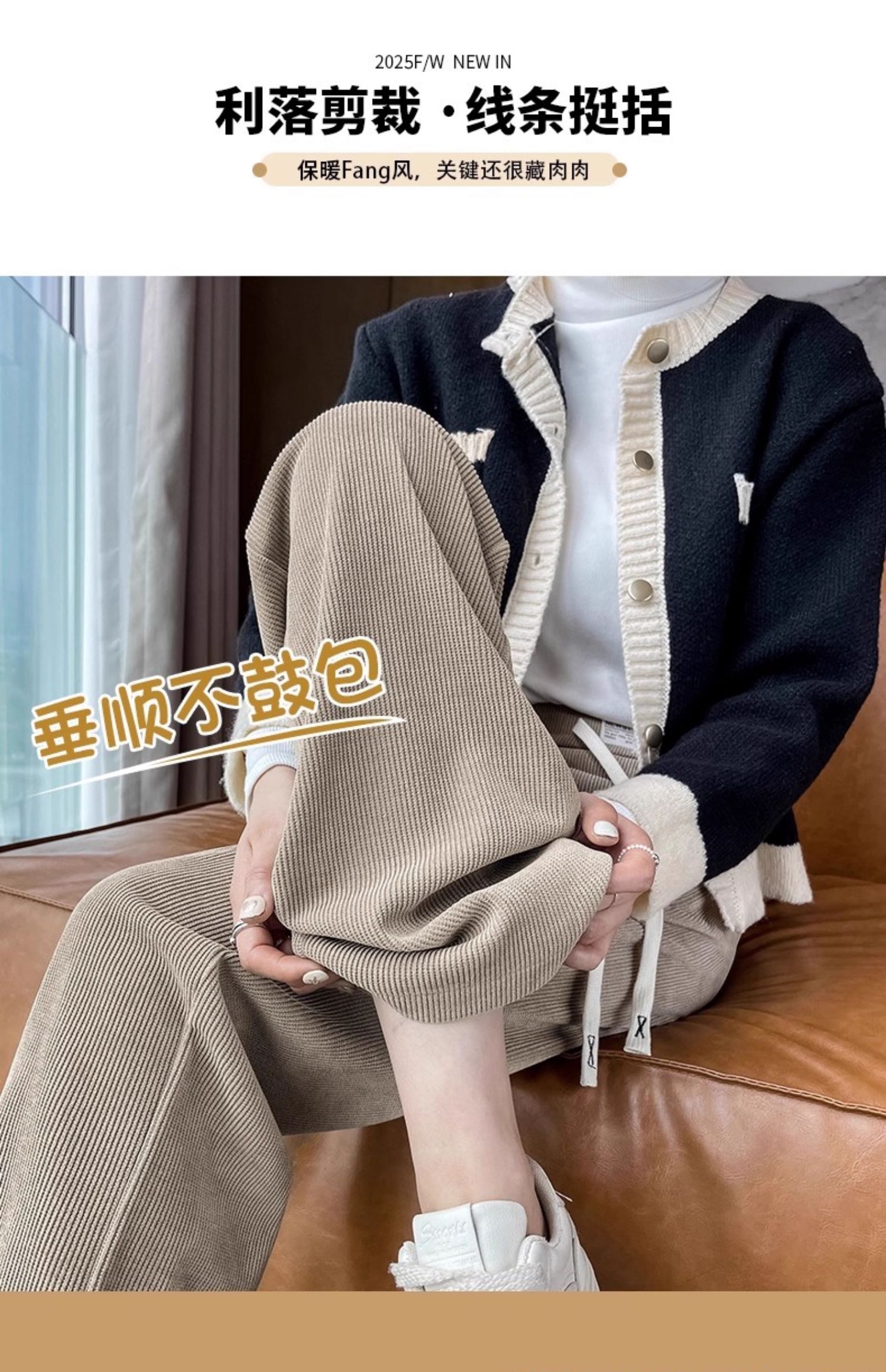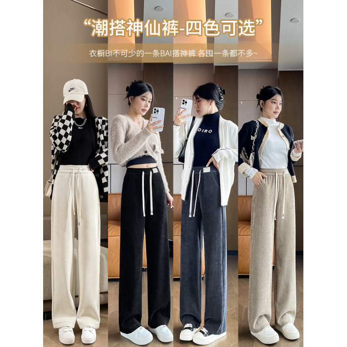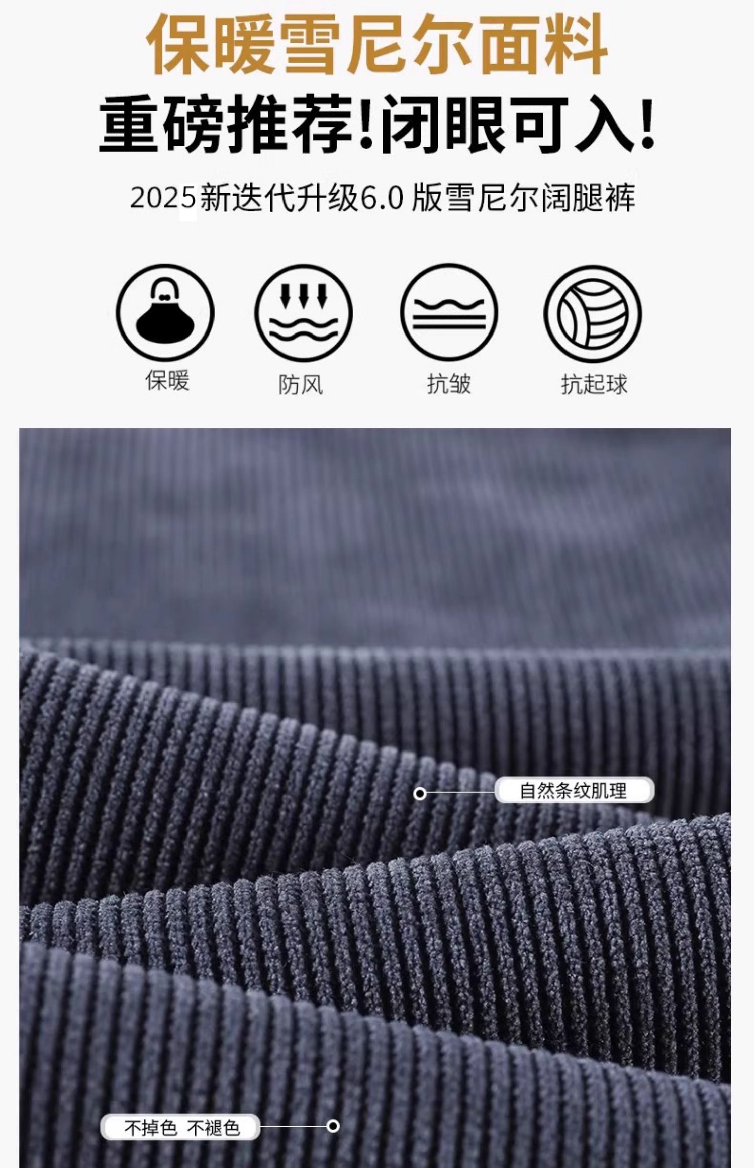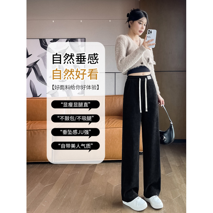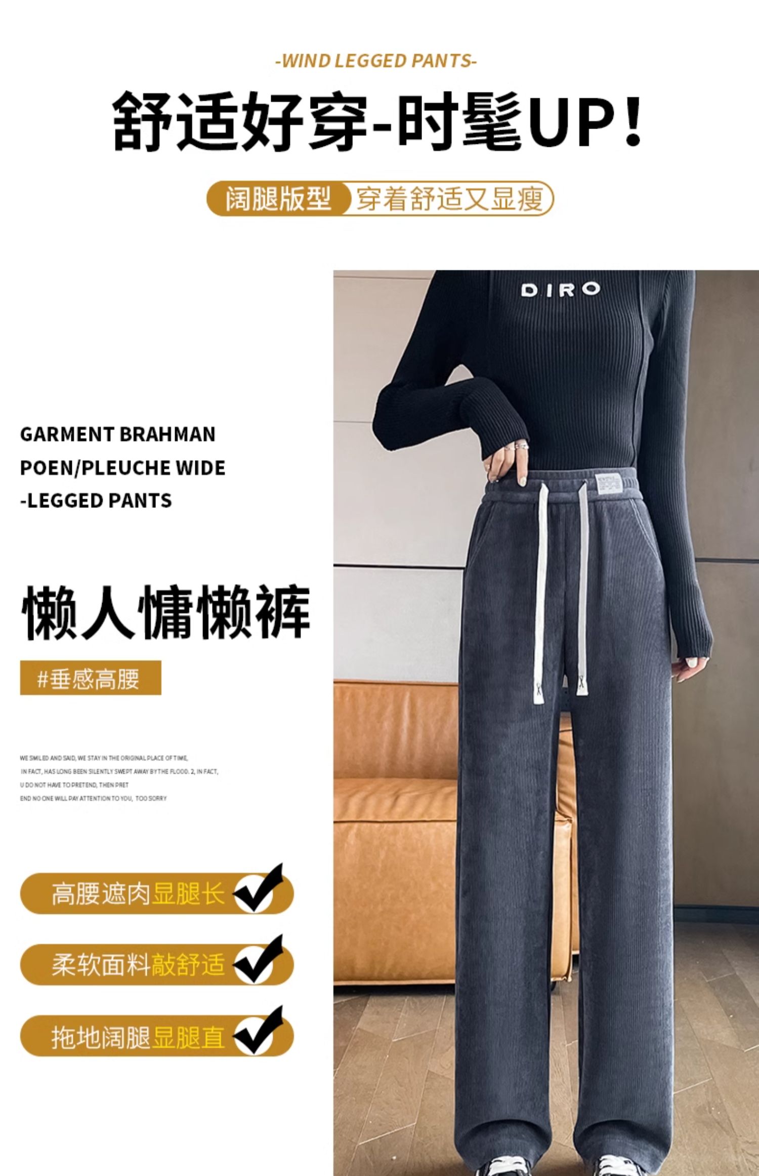 加絨雪尼爾濶腿褲女秋冬季2025新款爆款窄版直筒褲加厚燈芯絨褲子